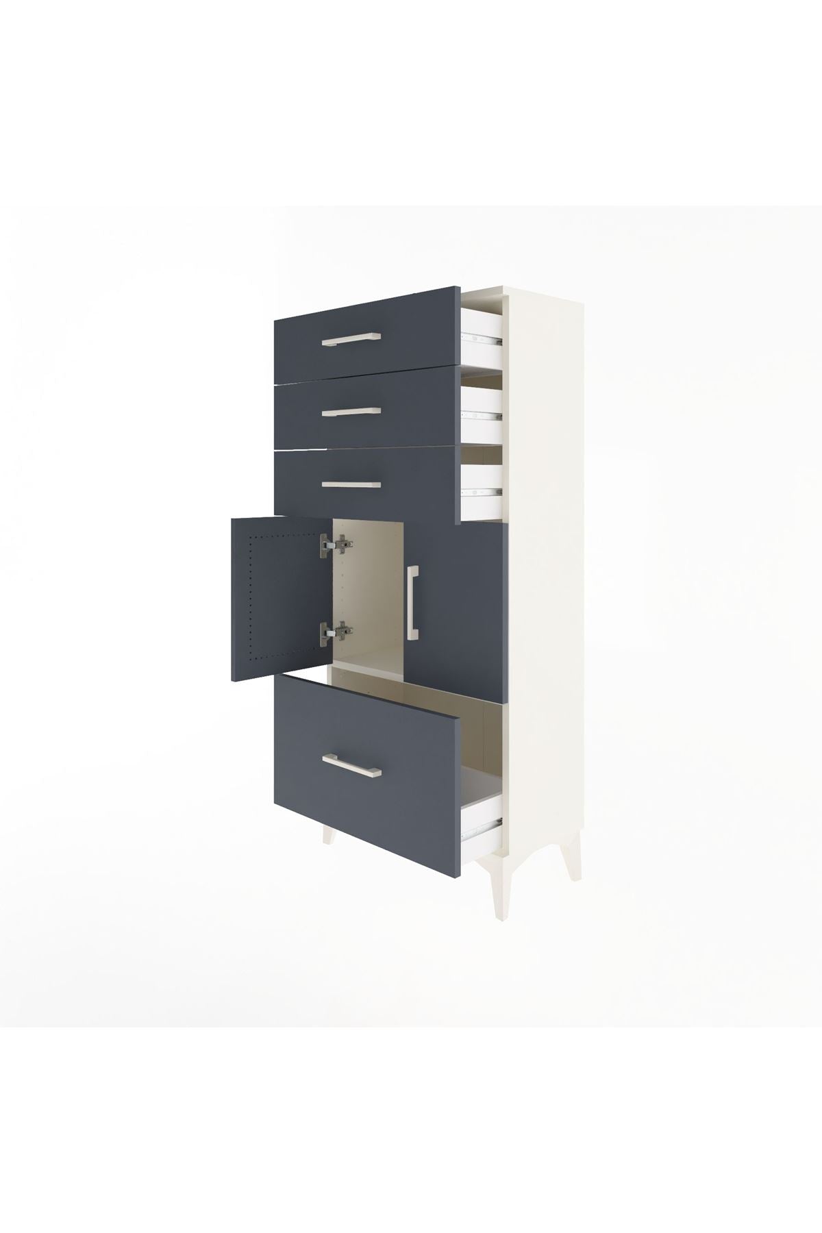 Arges Dolap Tek Raflı 4 Çekmeceli 2 Kapaklı 60x30x134 Aytaşı-Antrasit