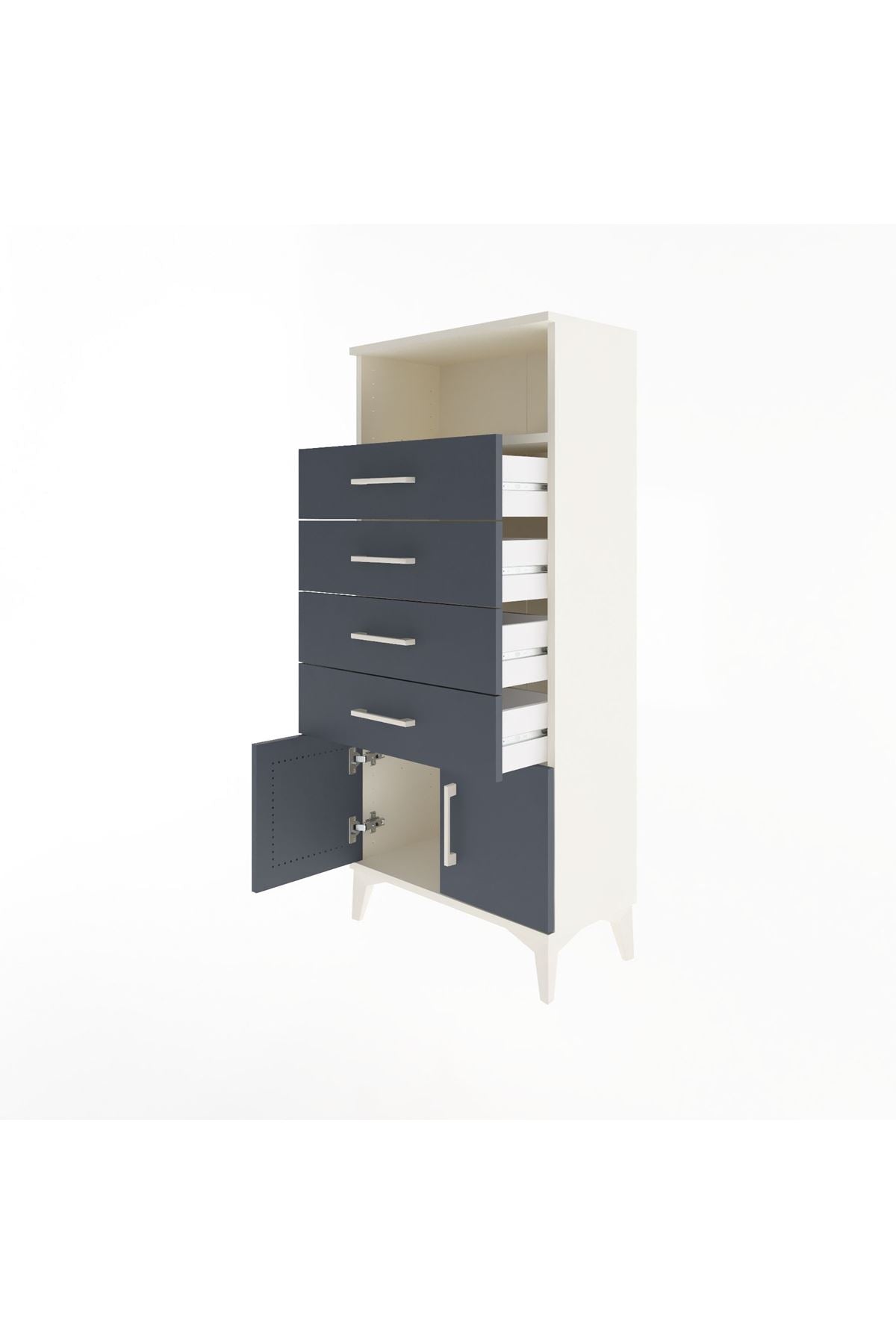Arges Dolap Tek Raflı 4 Çekmeceli 2 Kapaklı 60x30x134 Aytaşı-Antrasit