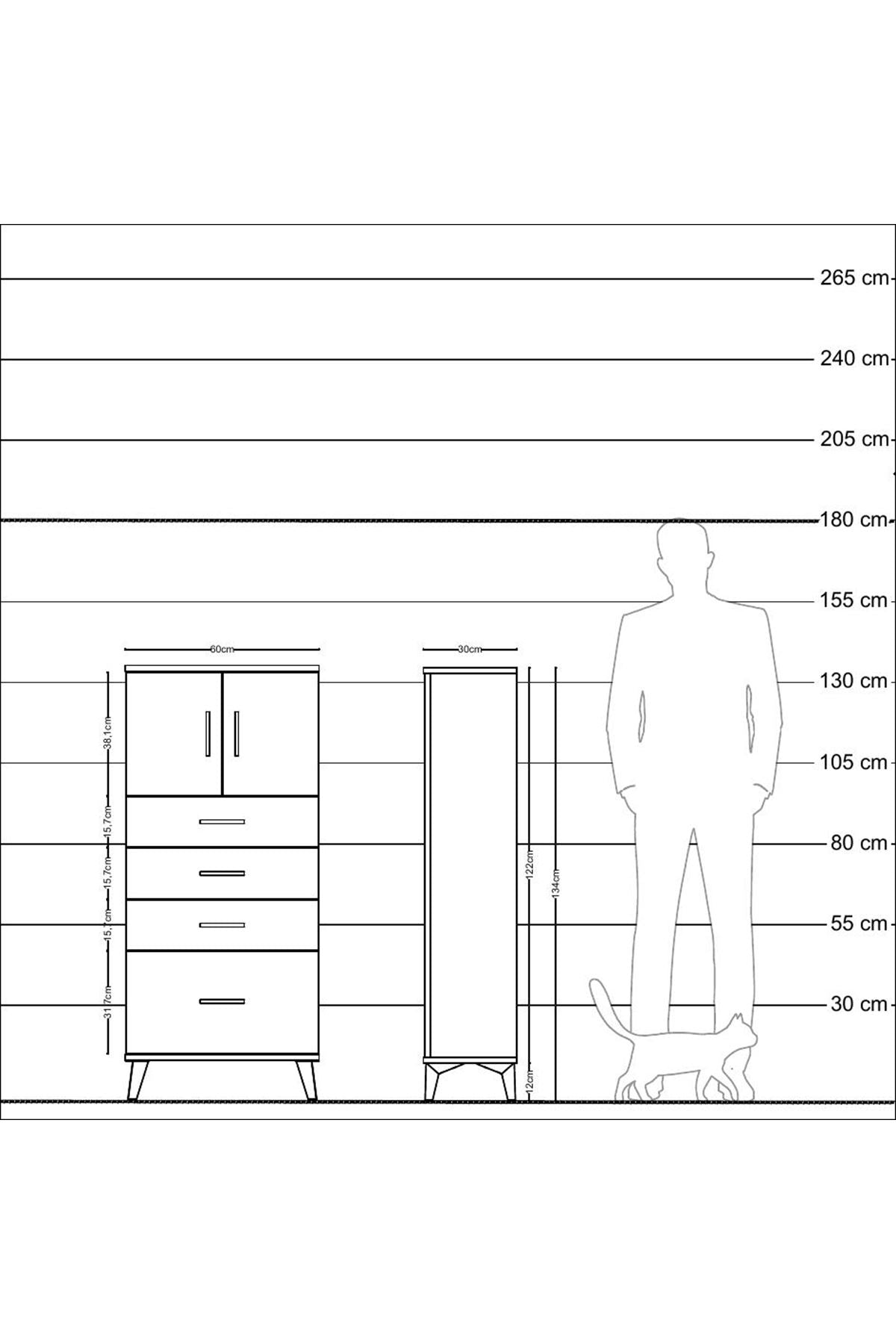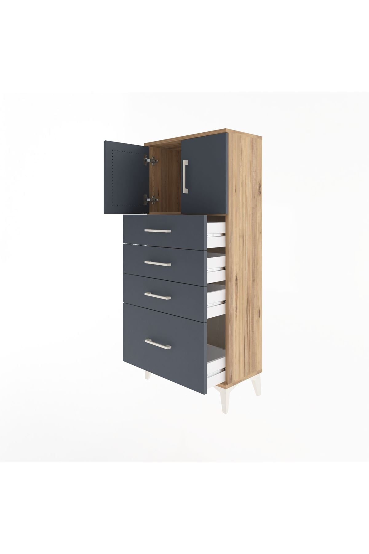 Arges Dolap Tek Raflı 4 Çekmeceli 2 Kapaklı 60x30x134 Çam-Antrasit