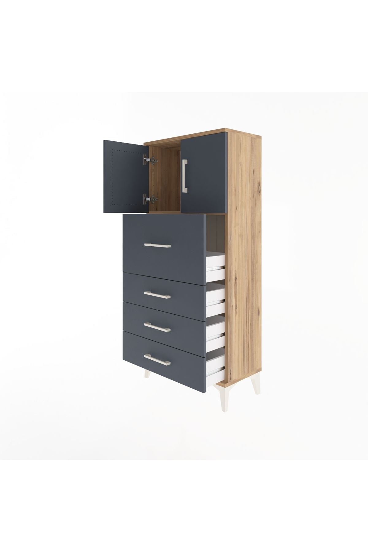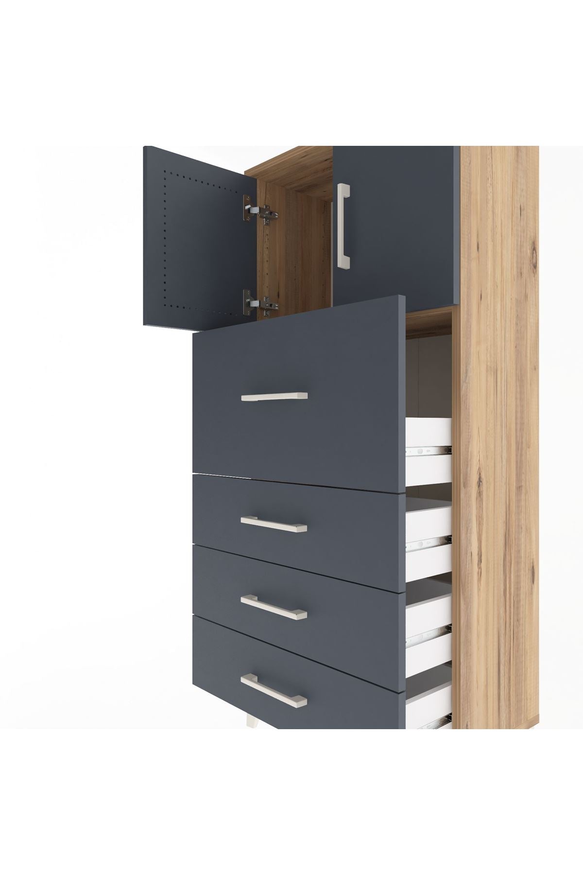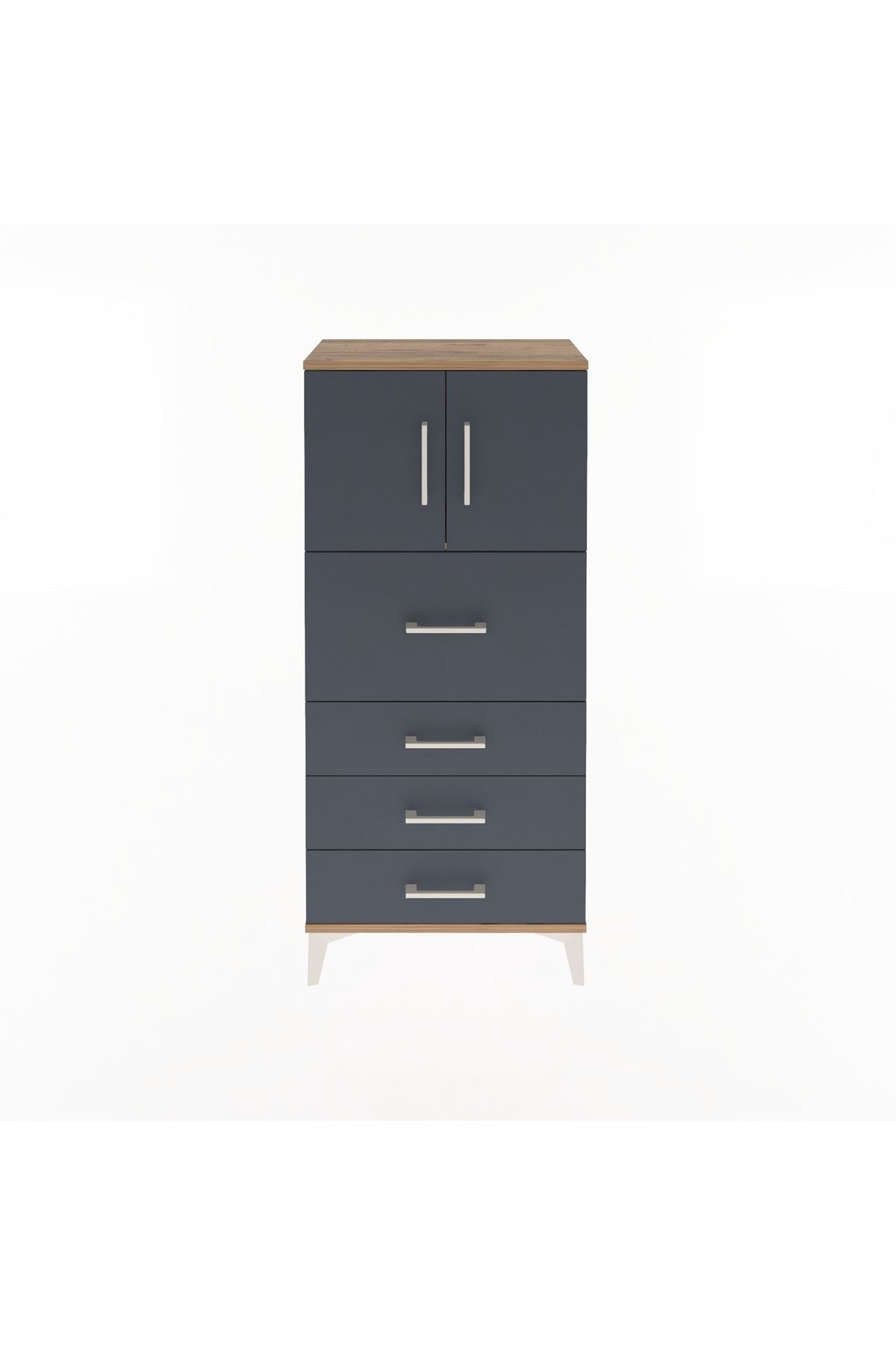 Arges Dolap Tek Raflı 4 Çekmeceli 2 Kapaklı 60x30x134 Çam-Antrasit