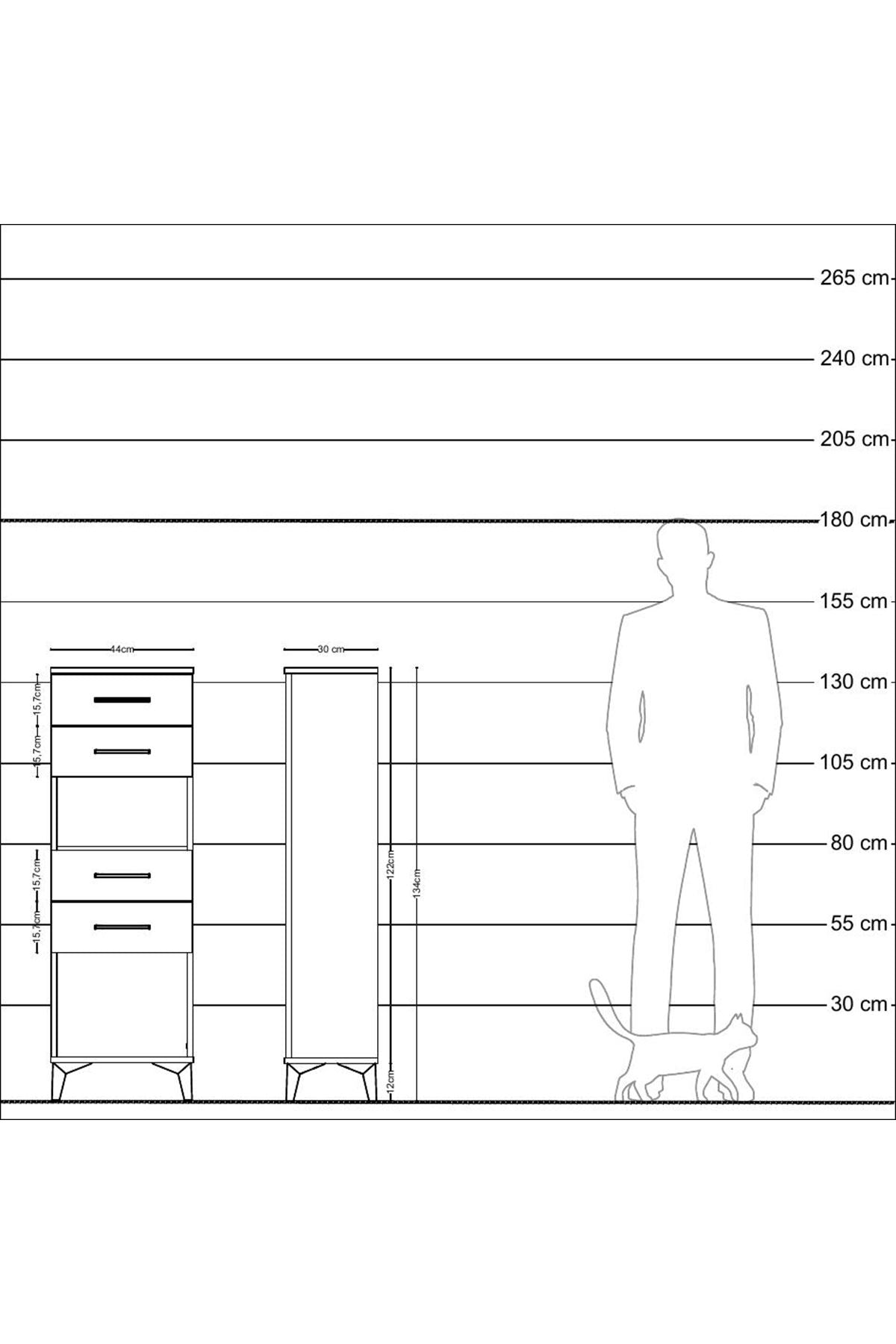 Arges Dolap Tek Raflı 4 Çekmeceli 44x30x134 Antrasit-Antrasit