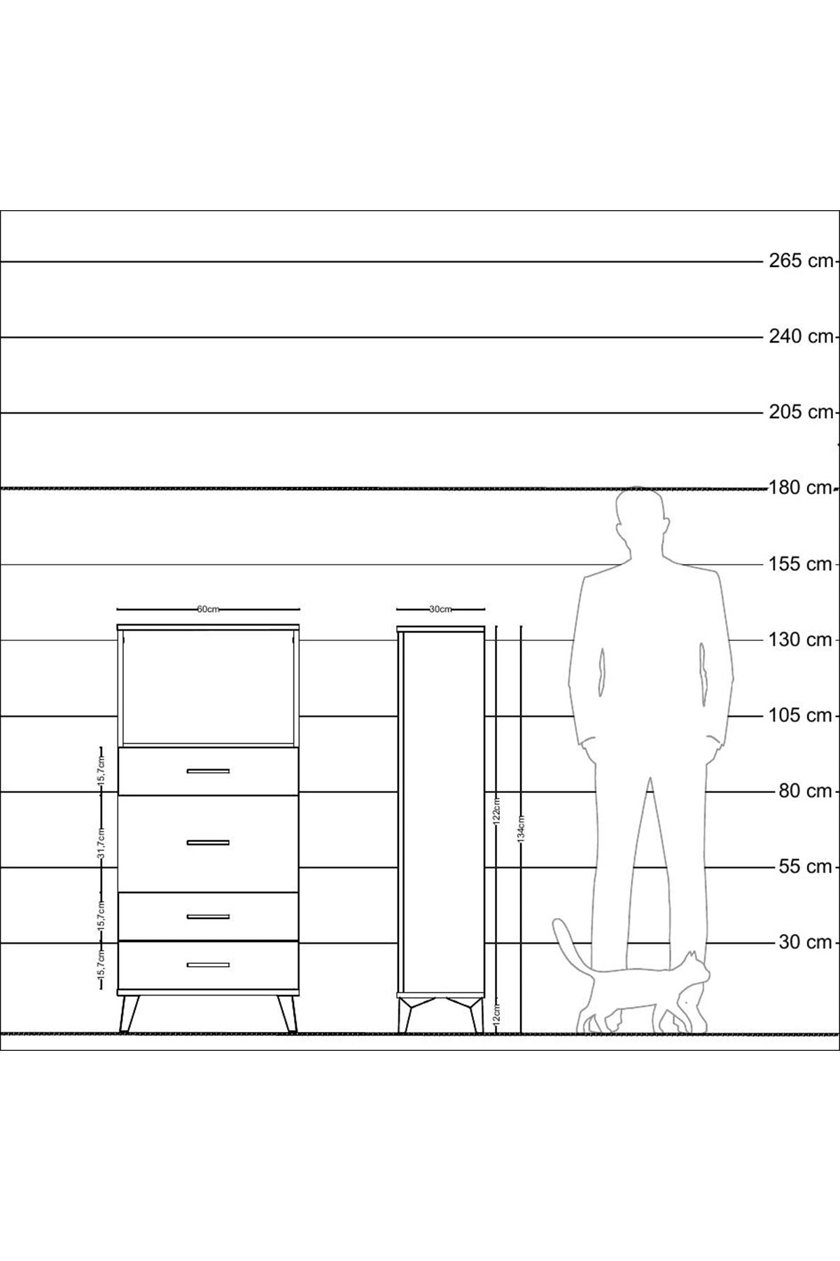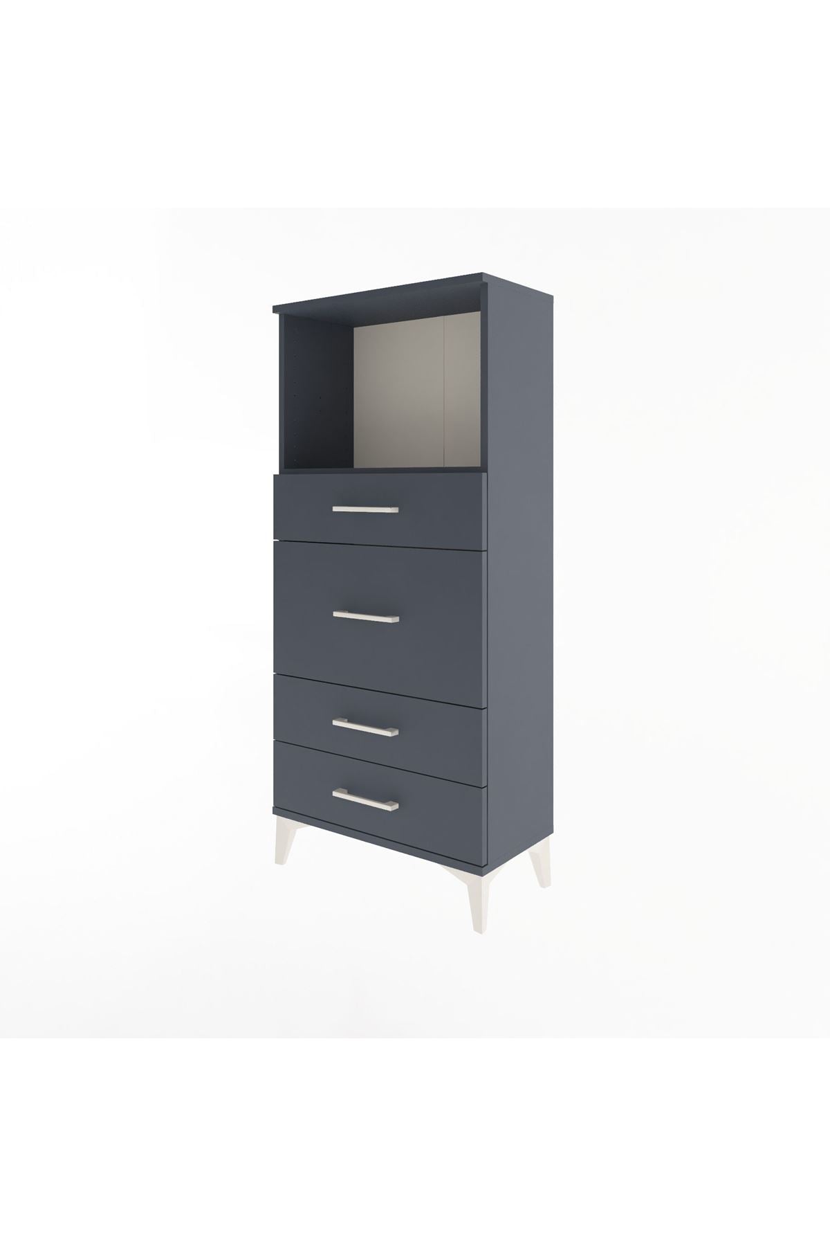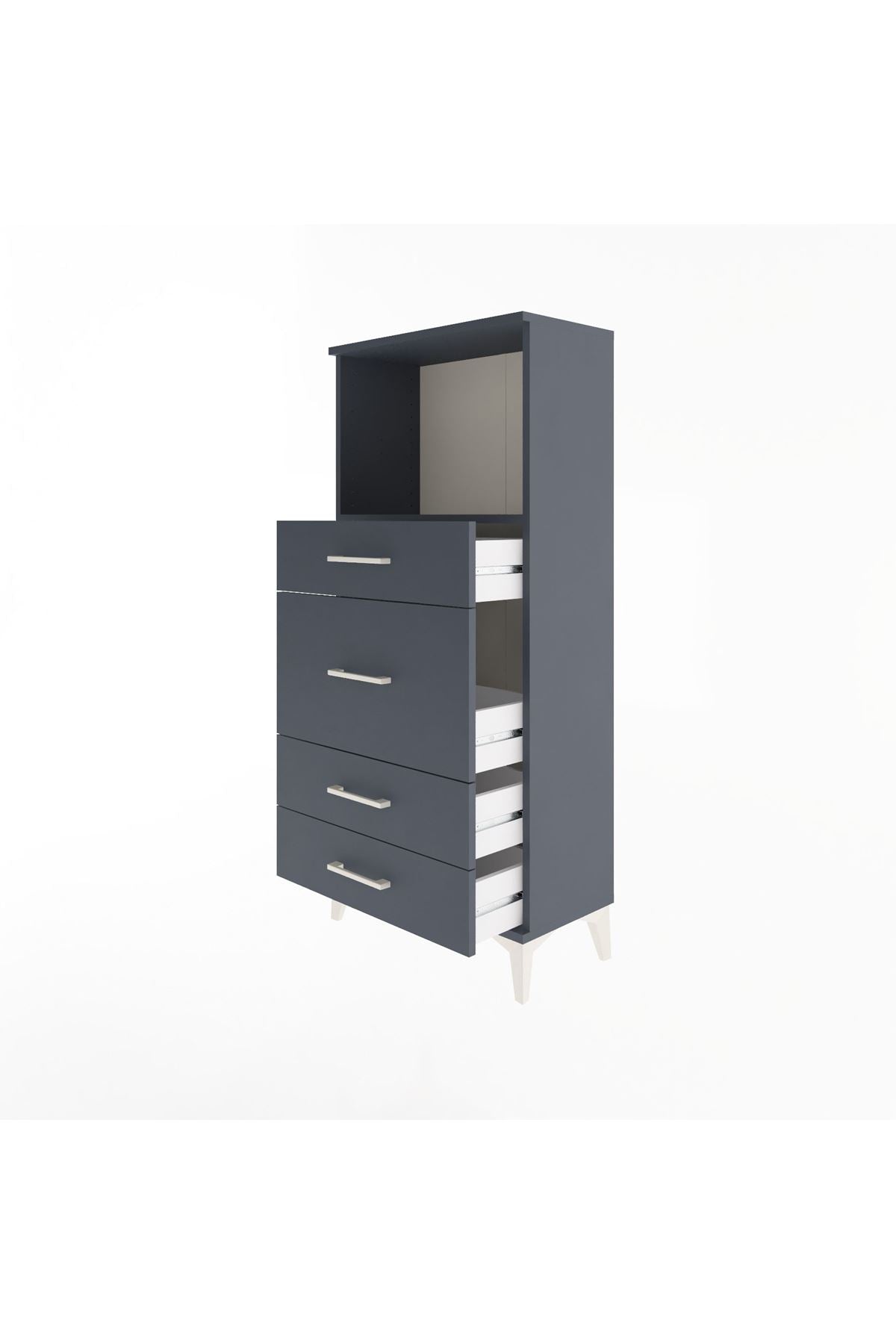 Arges Dolap Tek Raflı 4 Çekmeceli 60x30x134 Antrasit-Antrasit