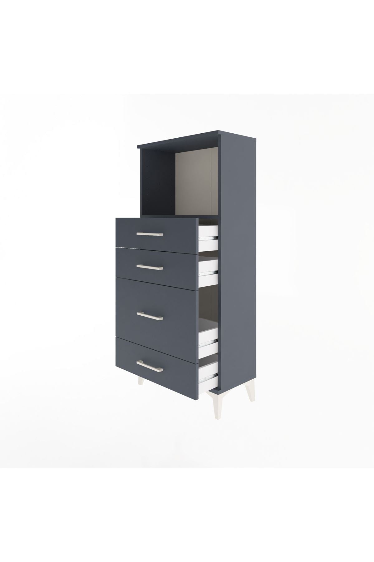 Arges Dolap Tek Raflı 4 Çekmeceli 60x30x134 Antrasit-Antrasit