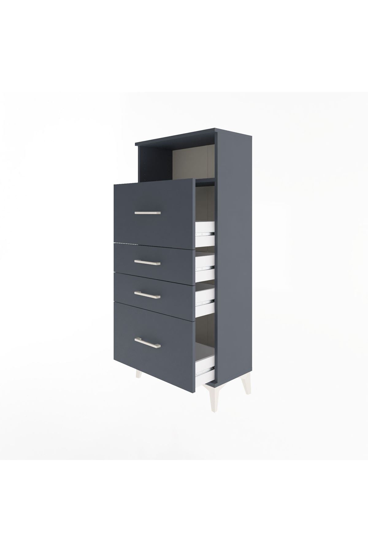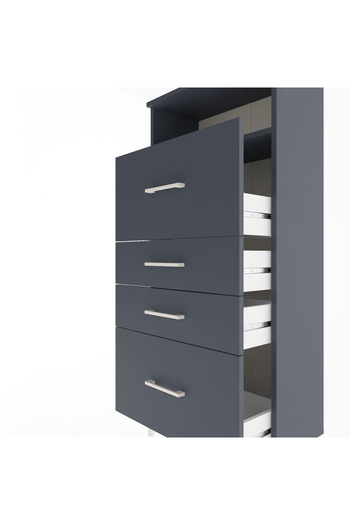 Arges Dolap Tek Raflı 4 Çekmeceli 60x30x134 Antrasit-Antrasit