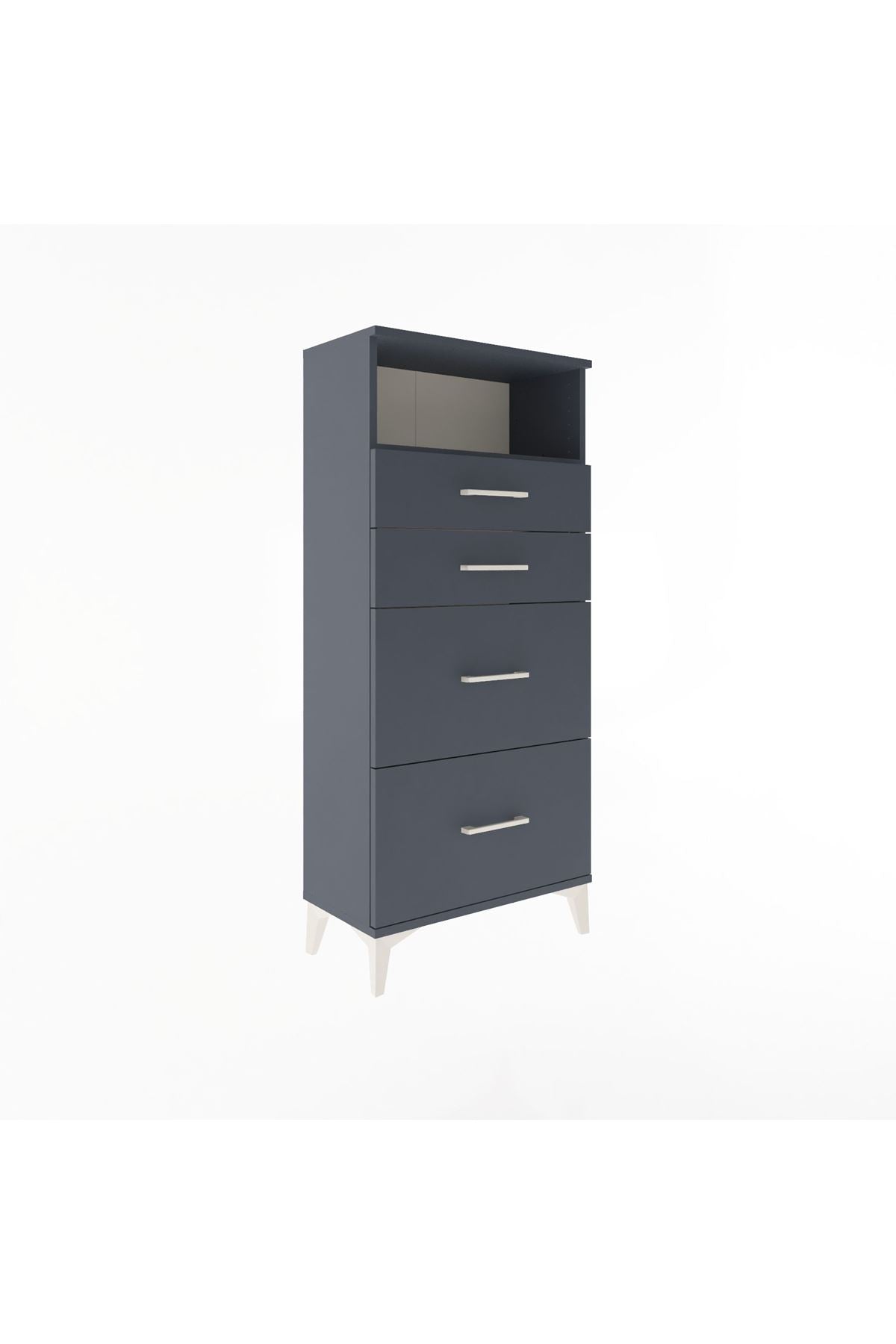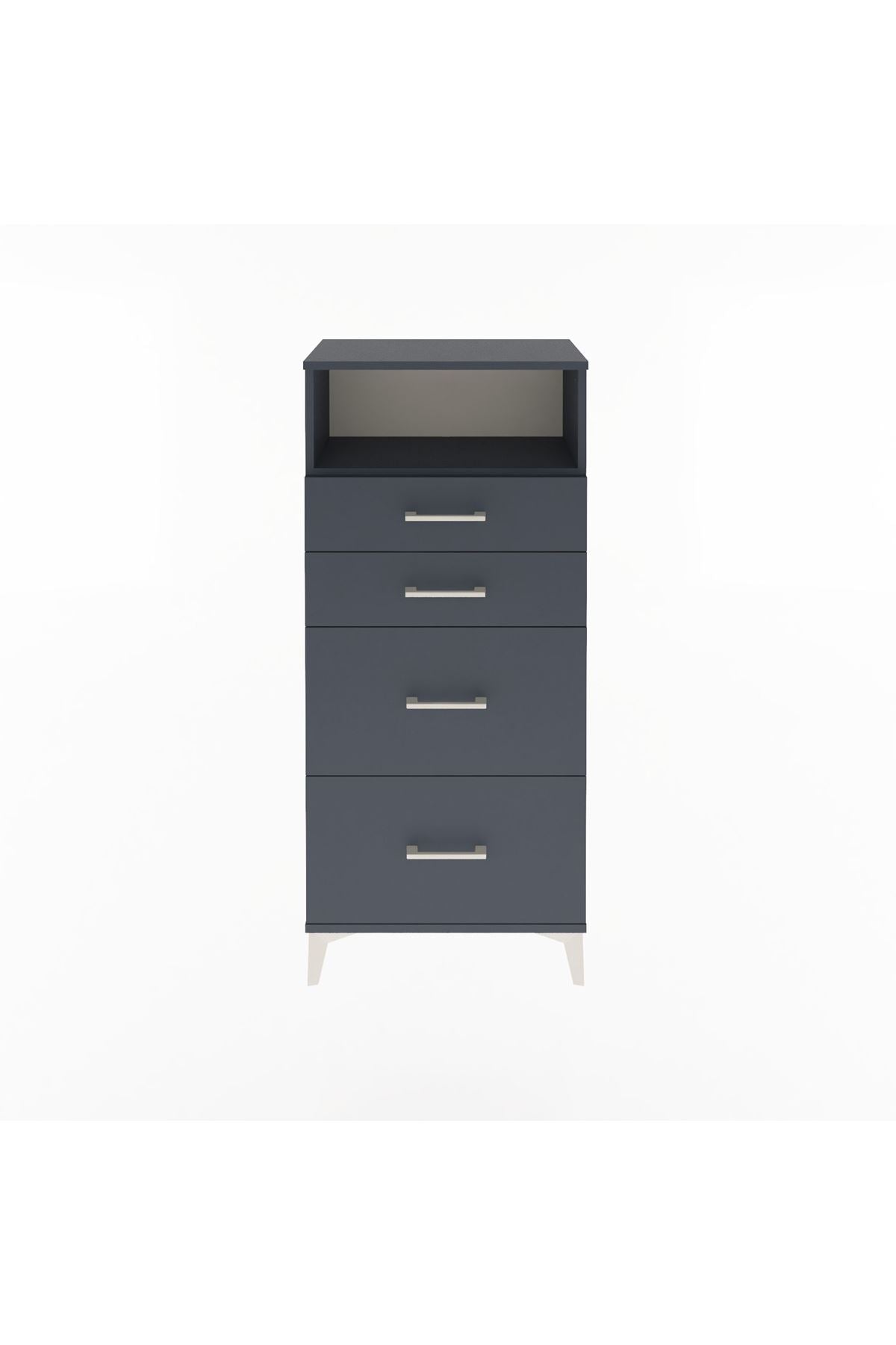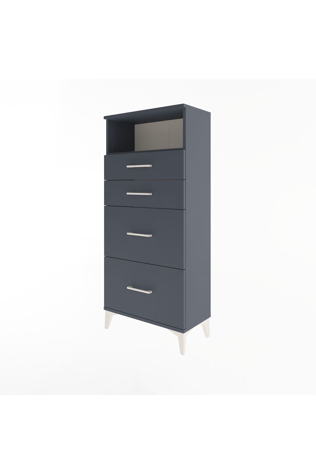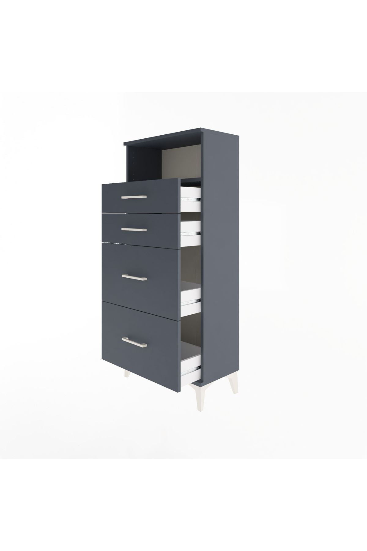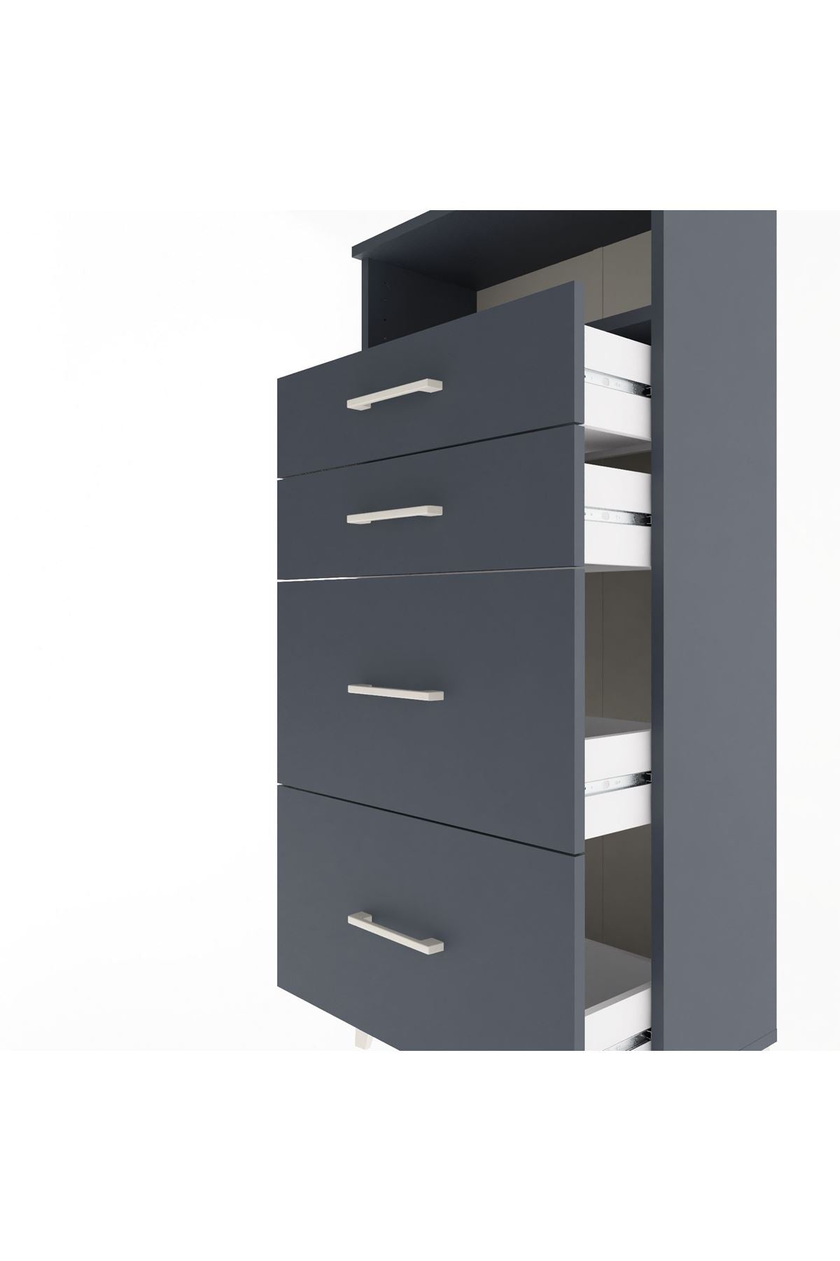 Arges Dolap Tek Raflı 4 Çekmeceli 60x30x134 Antrasit-Antrasit