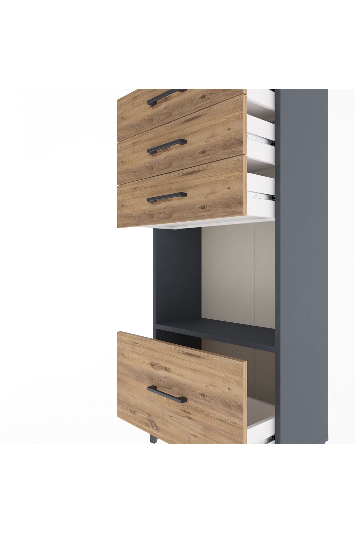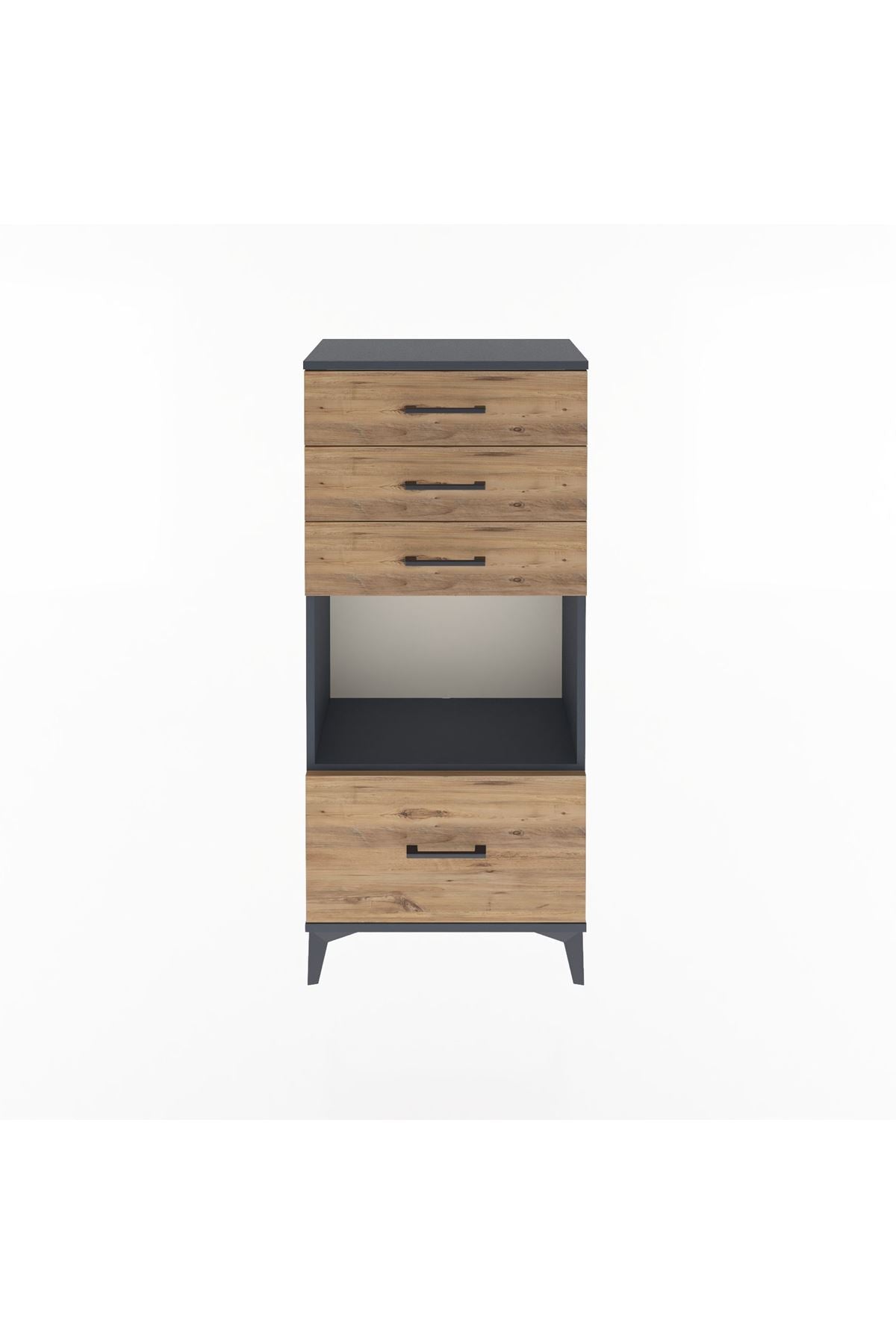 Arges Dolap Tek Raflı 4 Çekmeceli 60x30x134 Antrasit-Çam