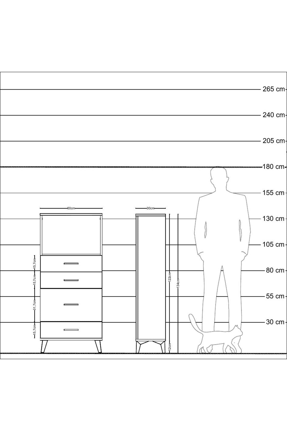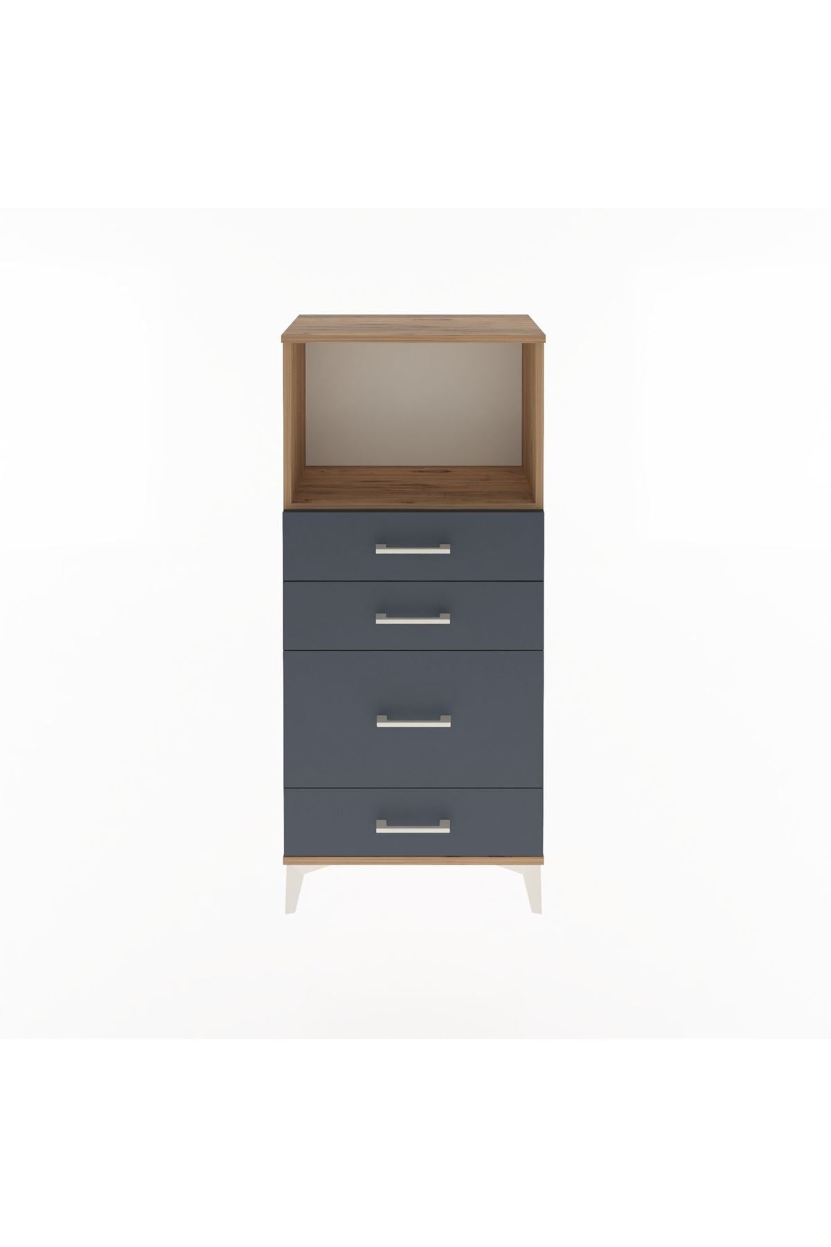 Arges Dolap Tek Raflı 4 Çekmeceli 60x30x134 Çam-Antrasit