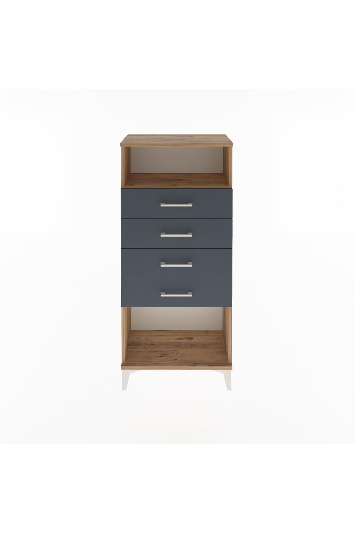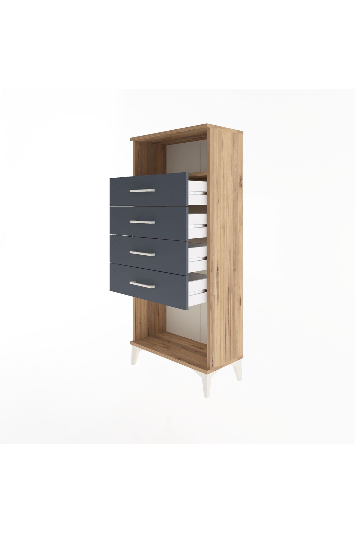Arges Dolap Tek Raflı 4 Çekmeceli 60x30x134 Çam-Antrasit