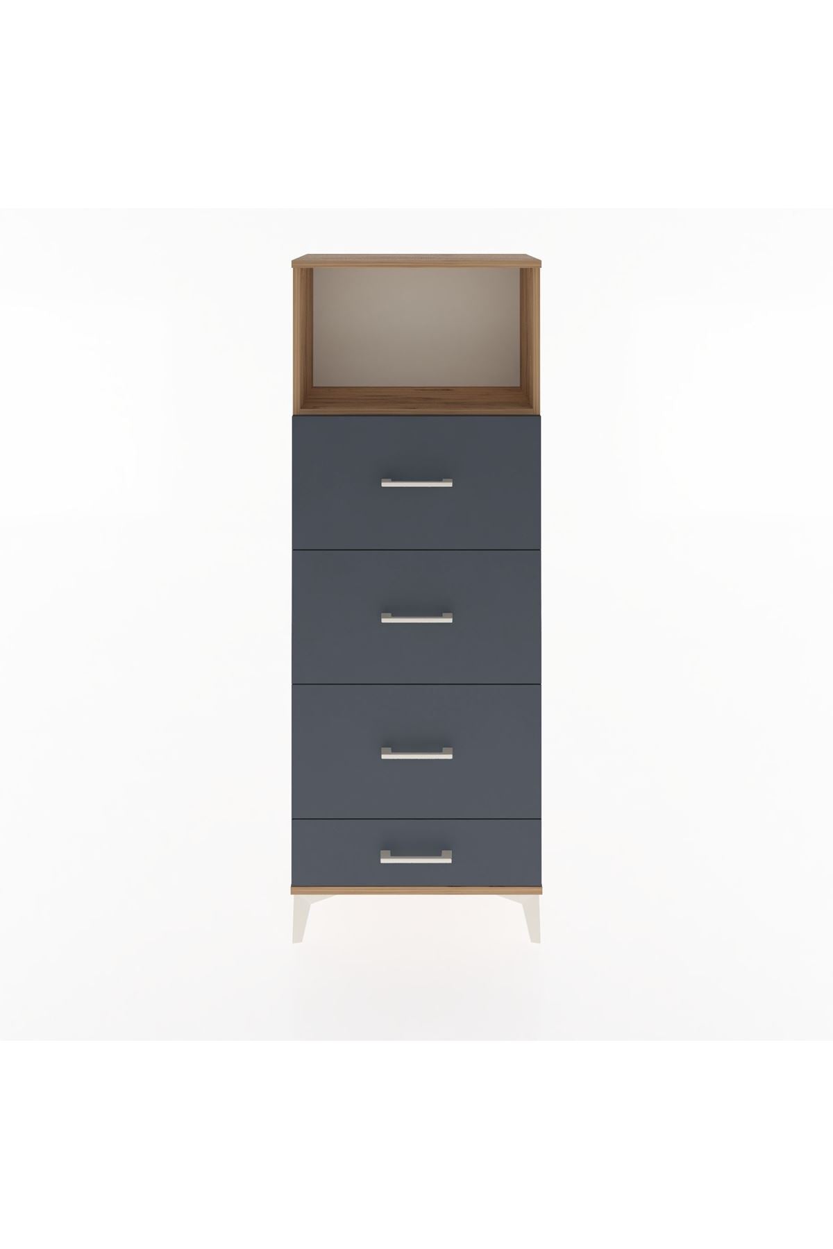 Arges Dolap Tek Raflı 4 Çekmeceli 60x30x163 Çam-Antrasit