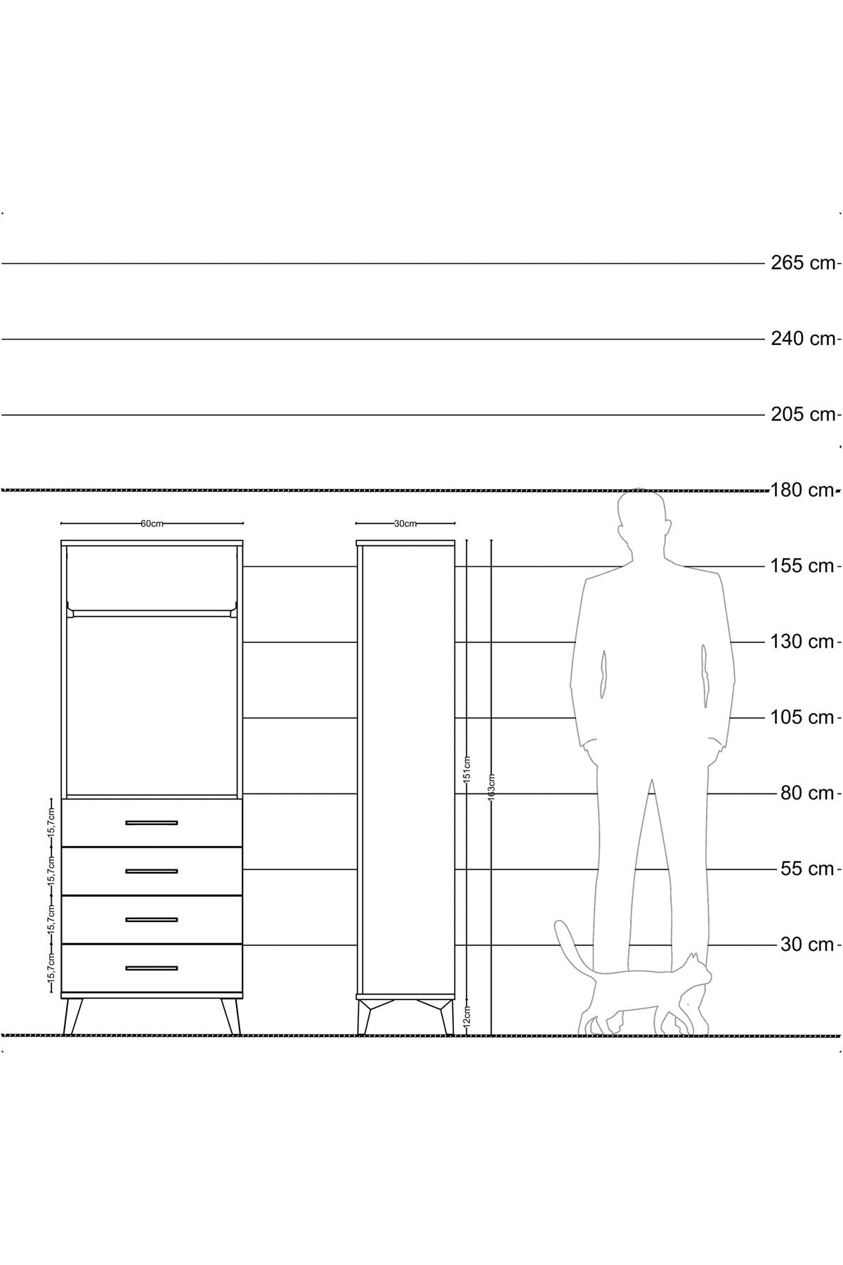 Arges Dolap Tek Raflı 4 Çekmeceli Tek Askılı 60x30x163 Aytaşı-Aytaşı