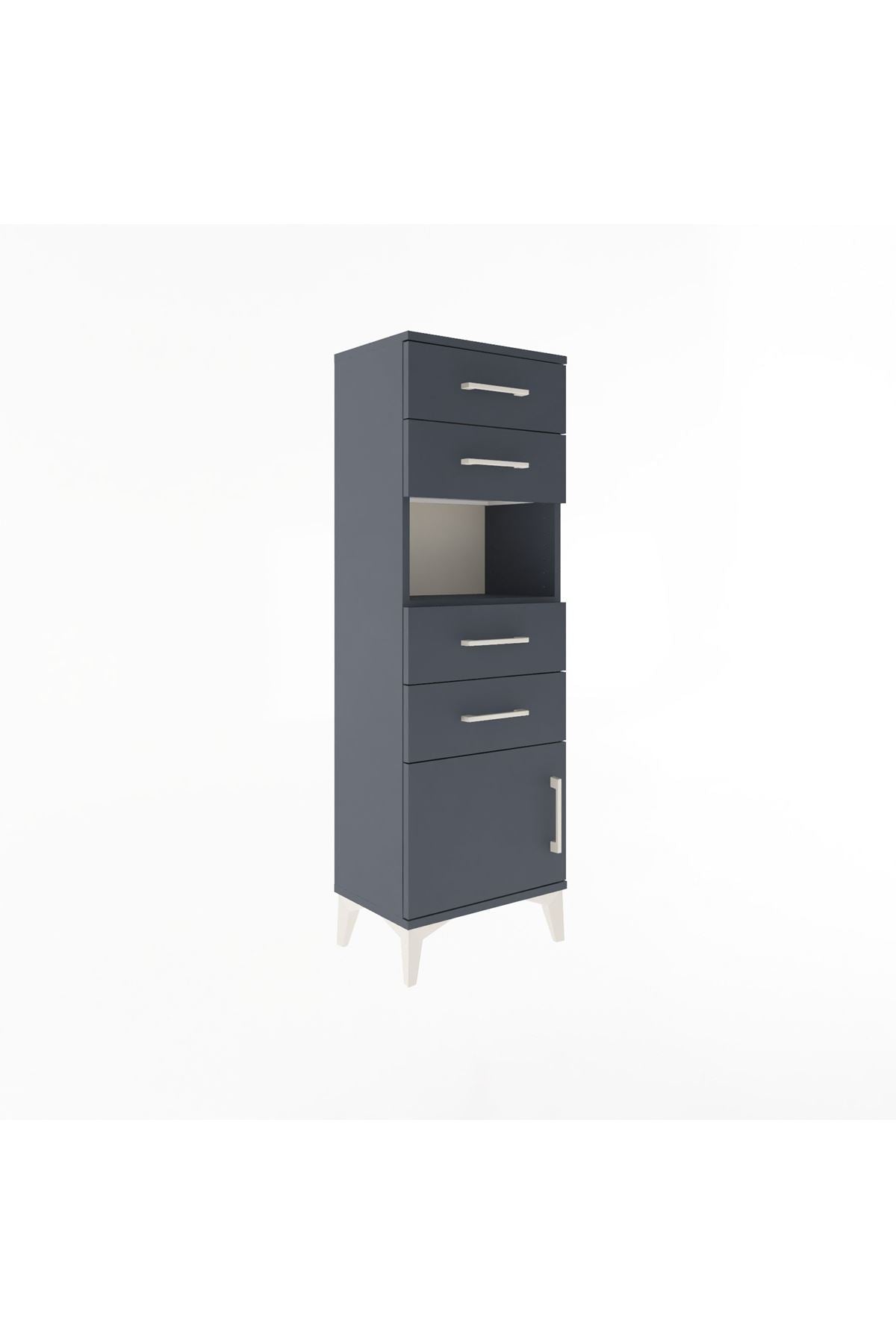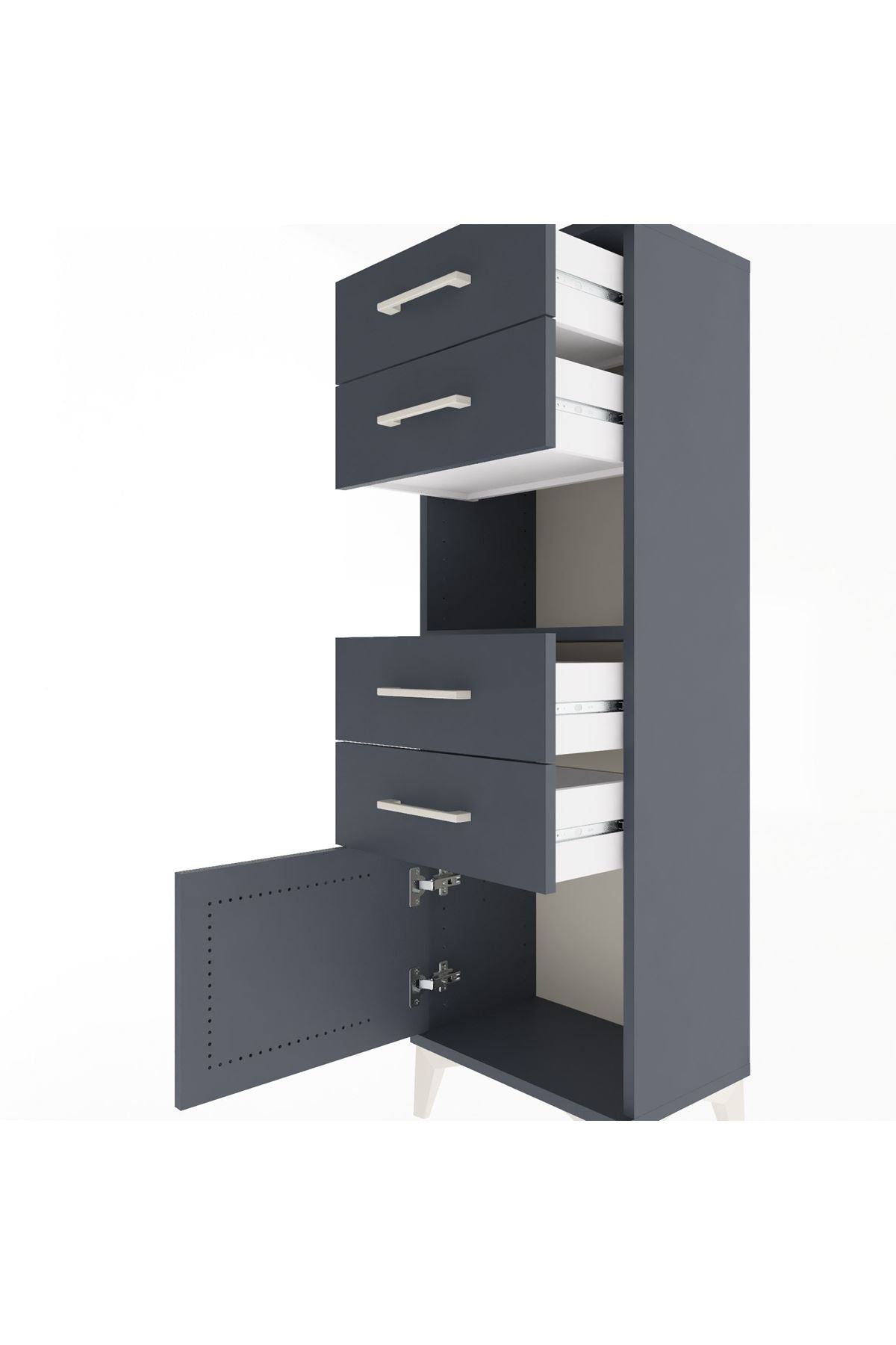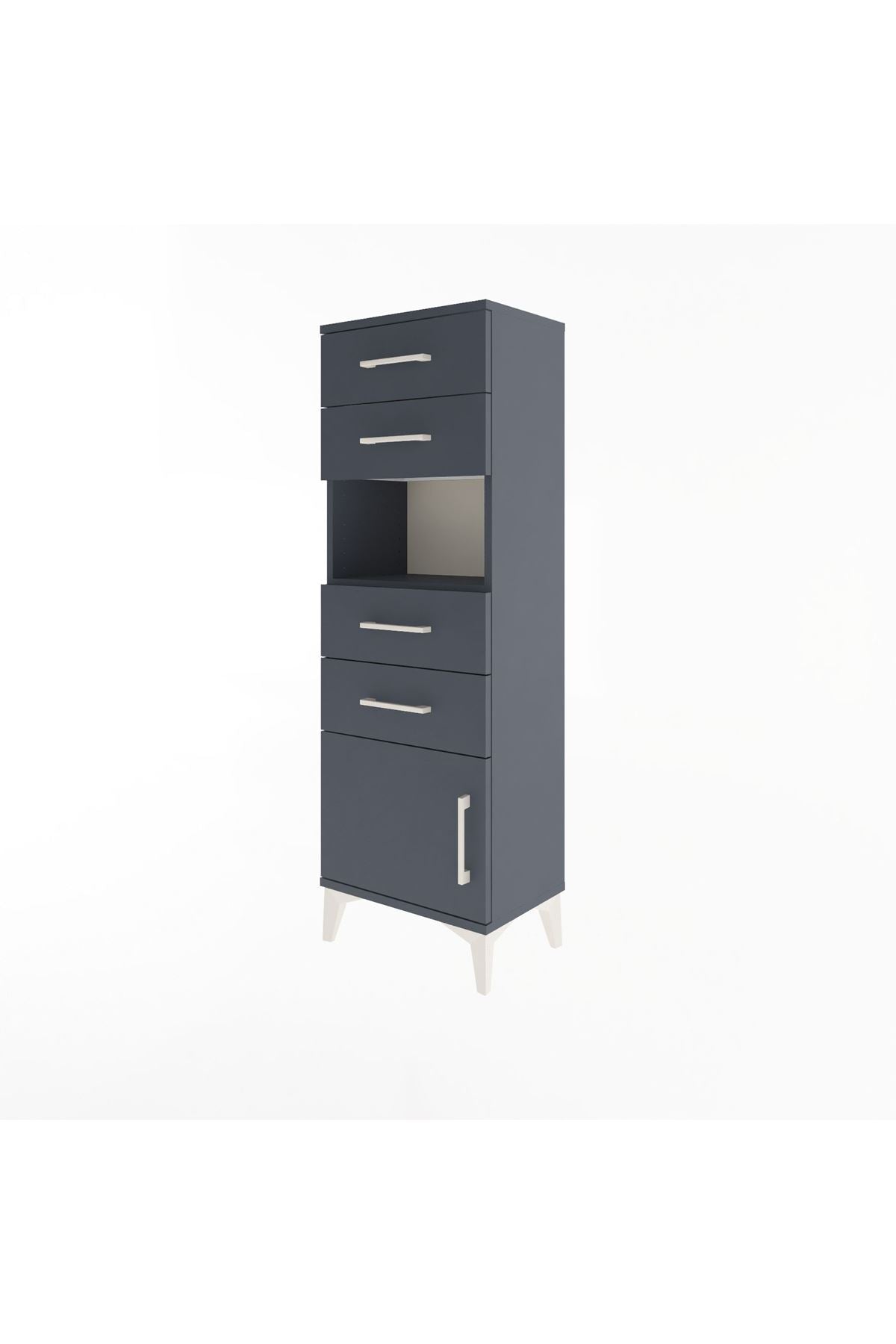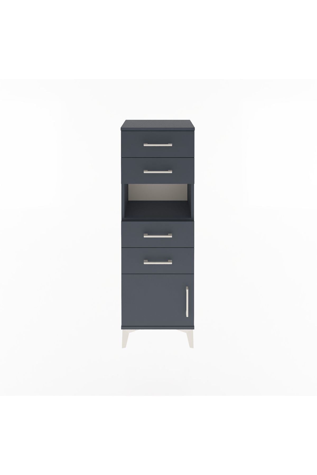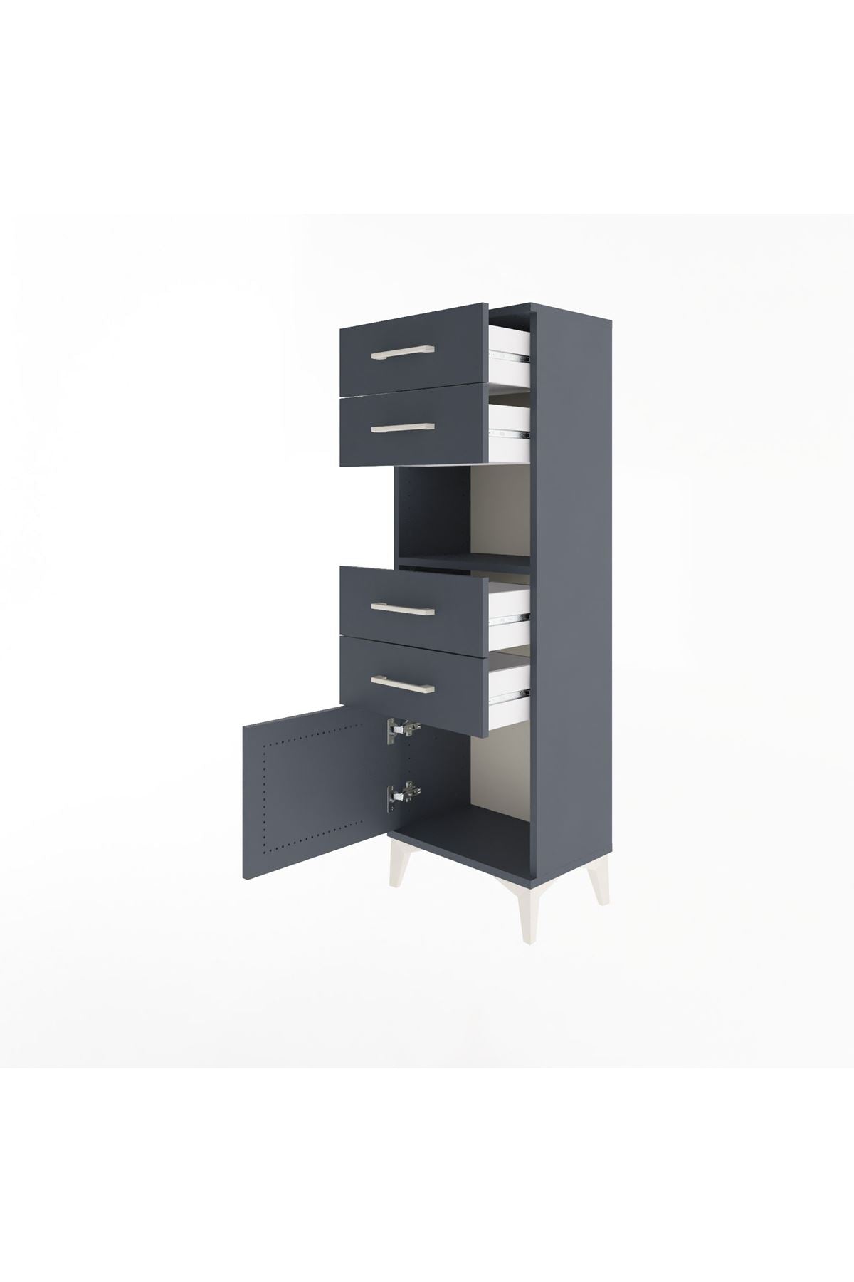 Arges Dolap Tek Raflı 4 Çekmeceli Tek Kapaklı 44x30x134 Antrasit-Antrasit