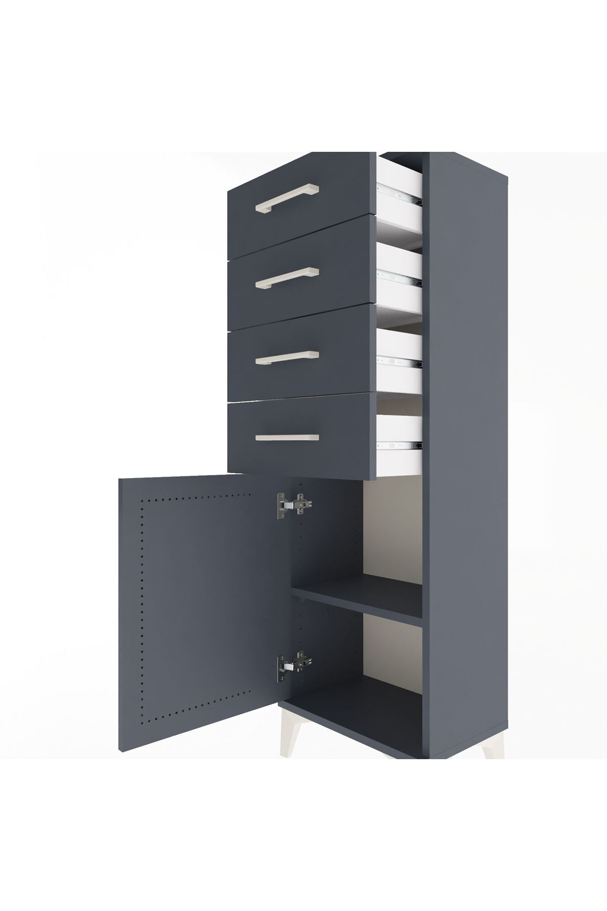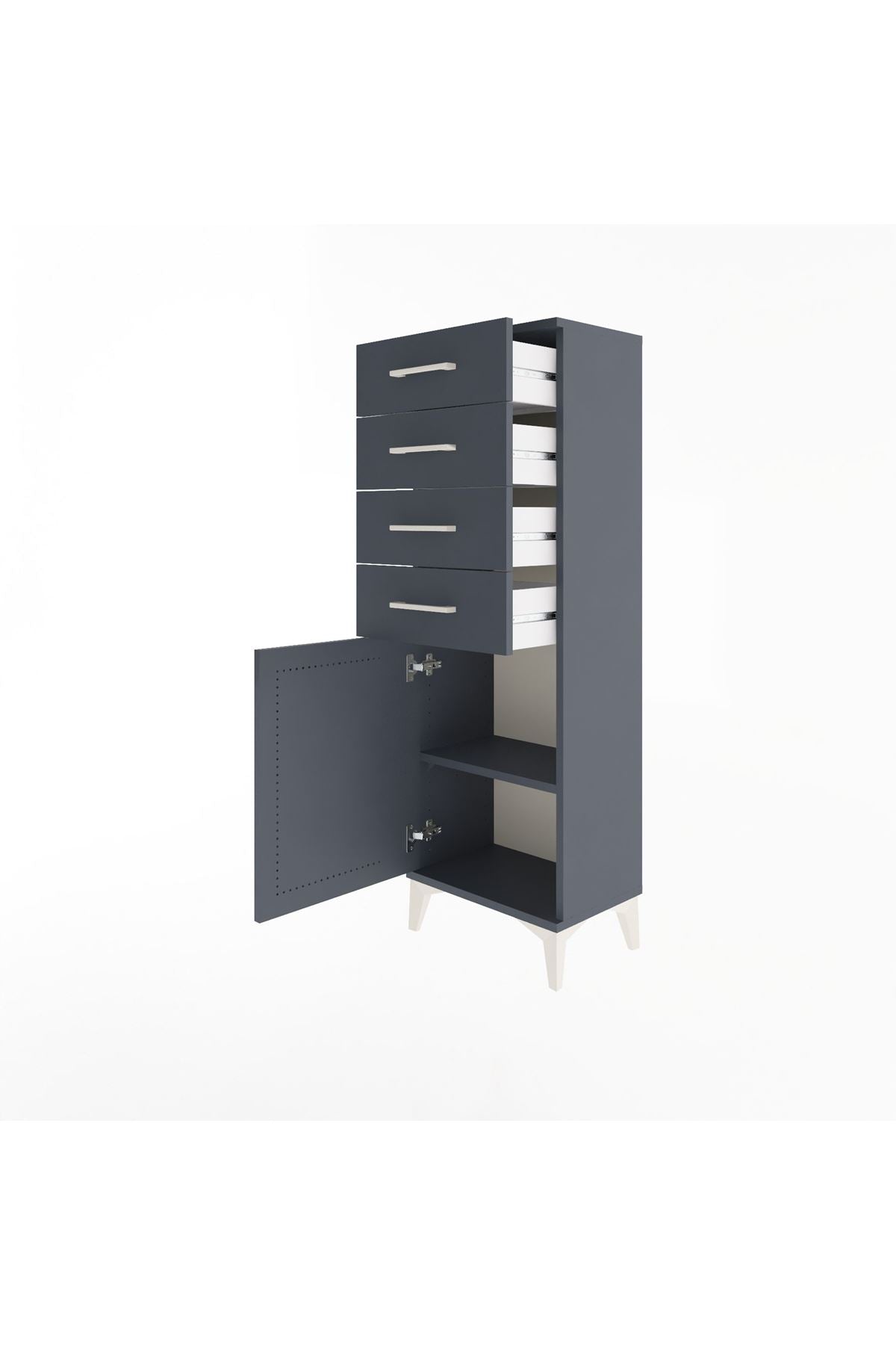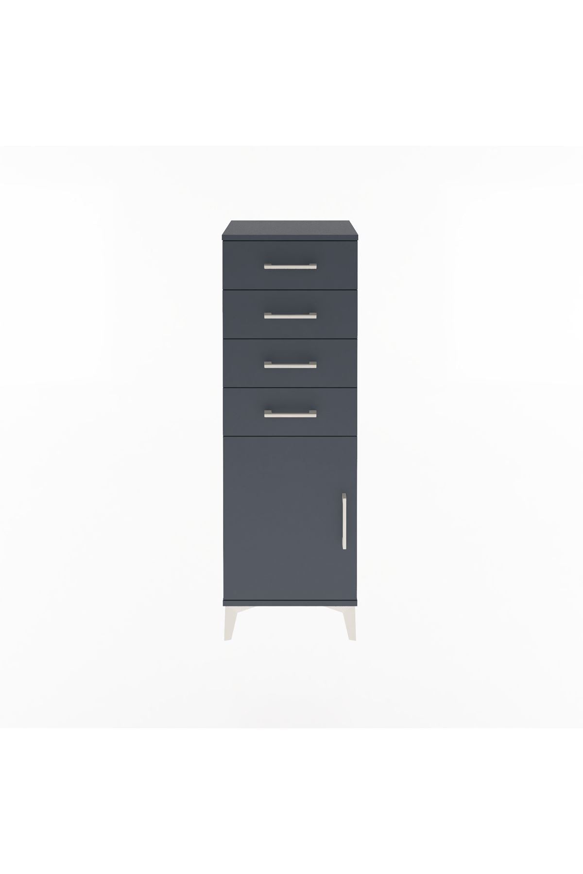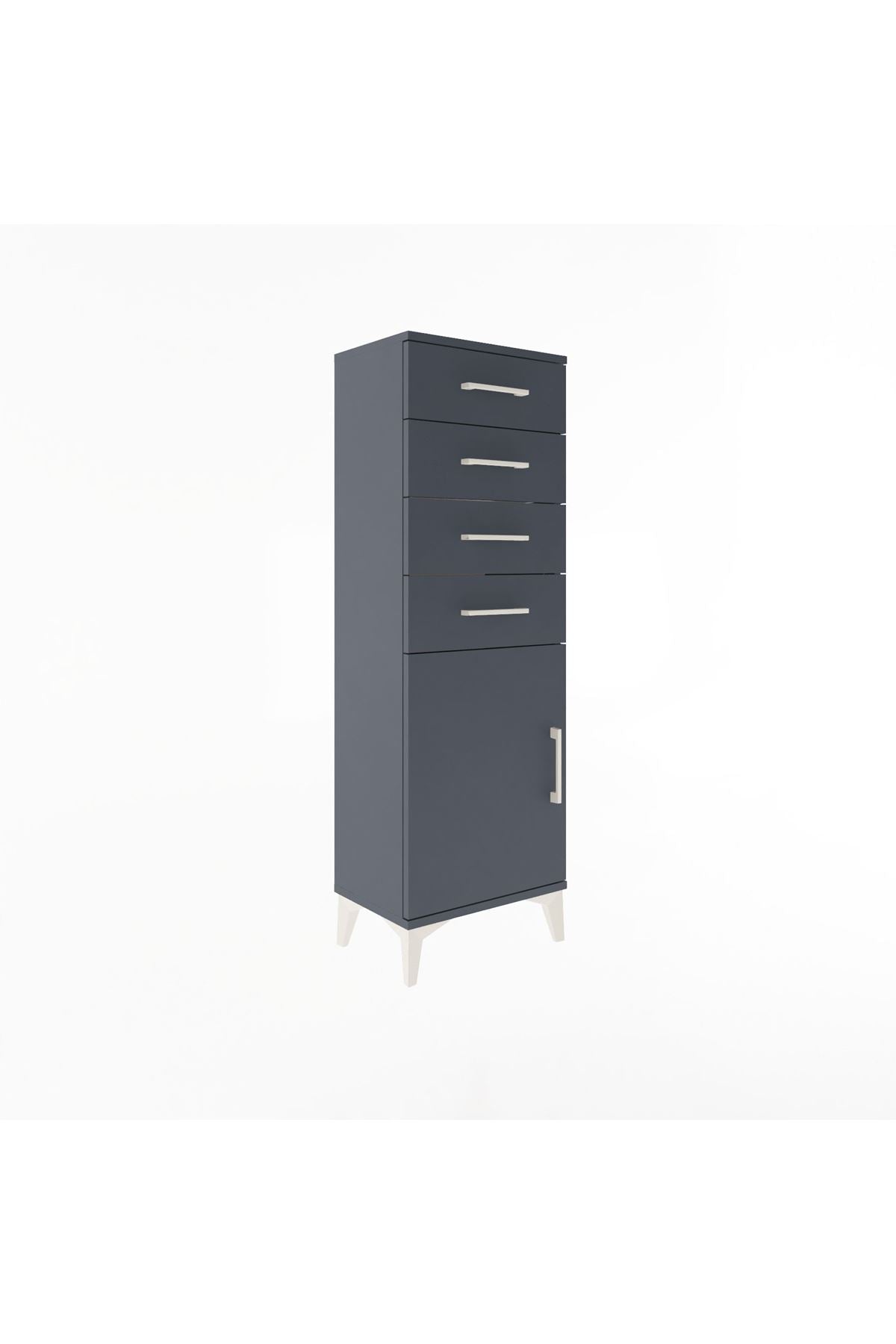 Arges Dolap Tek Raflı 4 Çekmeceli Tek Kapaklı 44x30x134 Antrasit-Antrasit