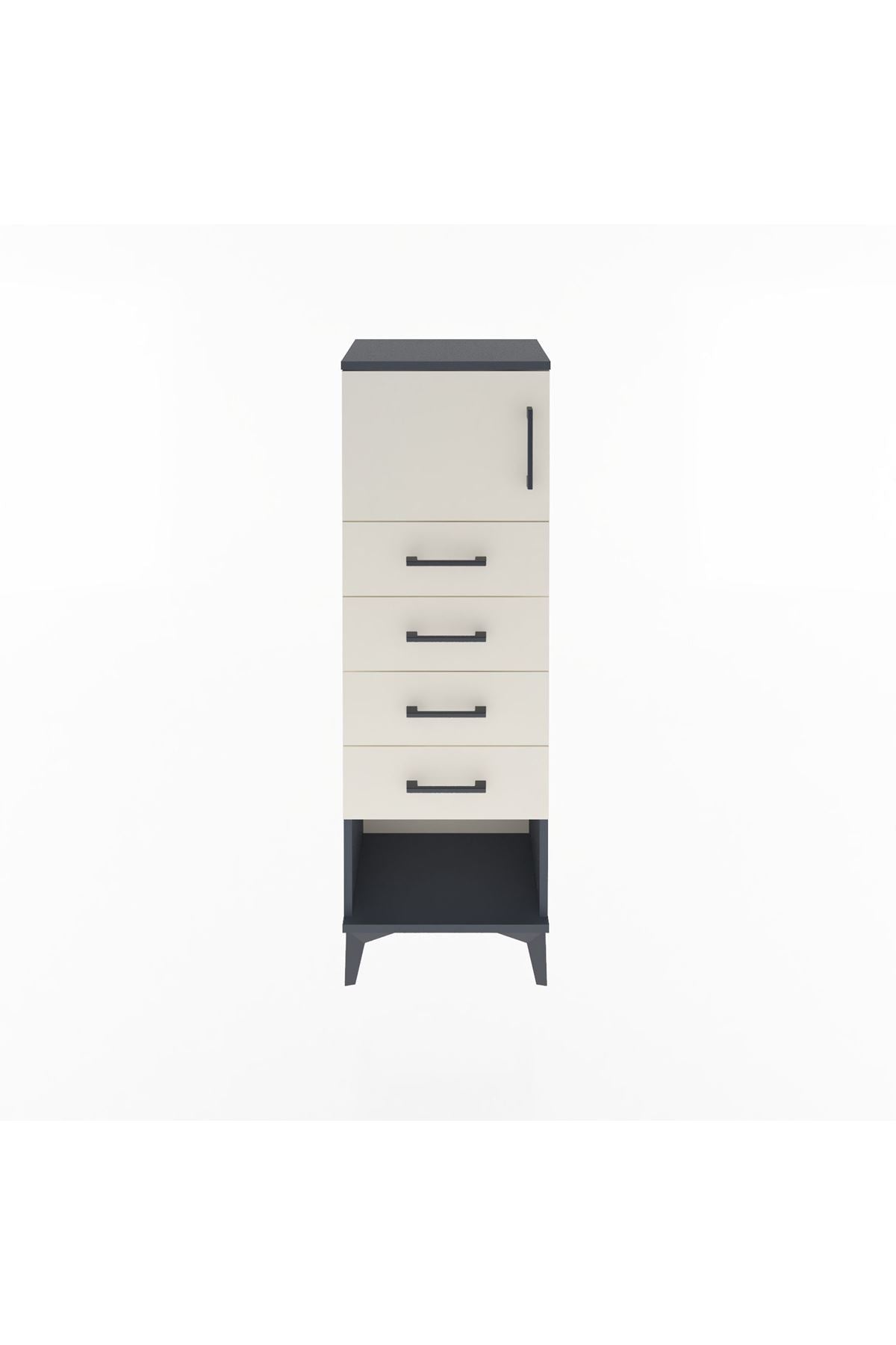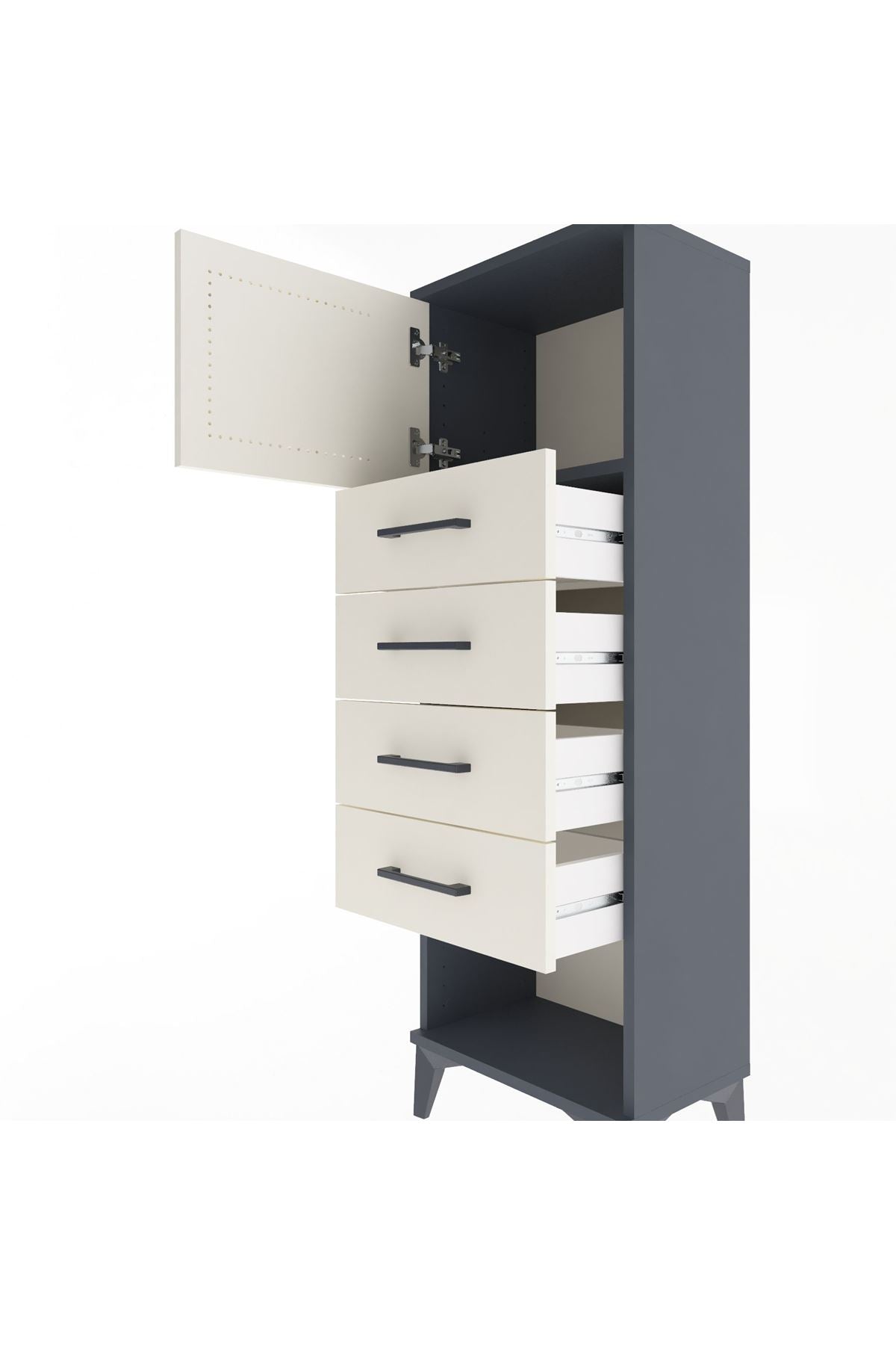Arges Dolap Tek Raflı 4 Çekmeceli Tek Kapaklı 44x30x134 Antrasit-Aytaşı