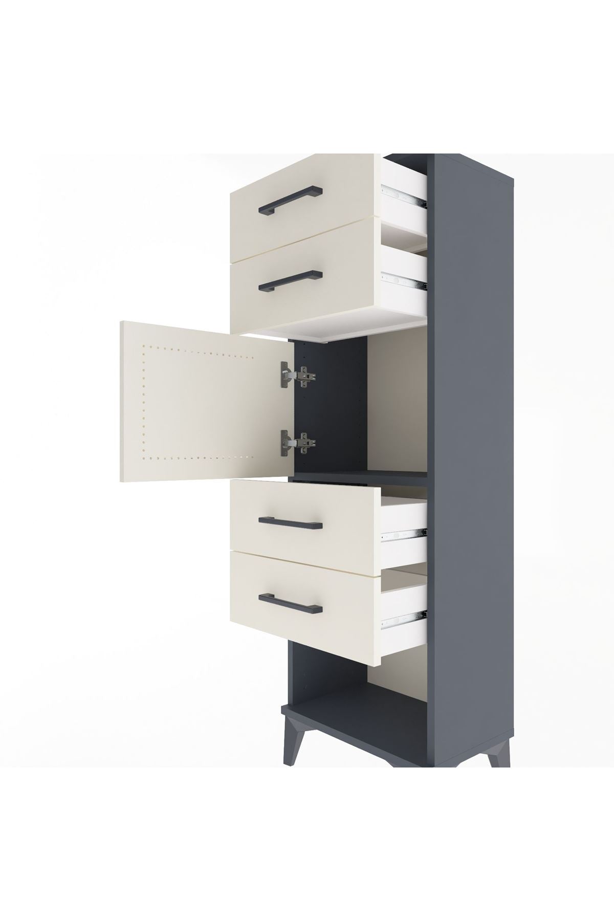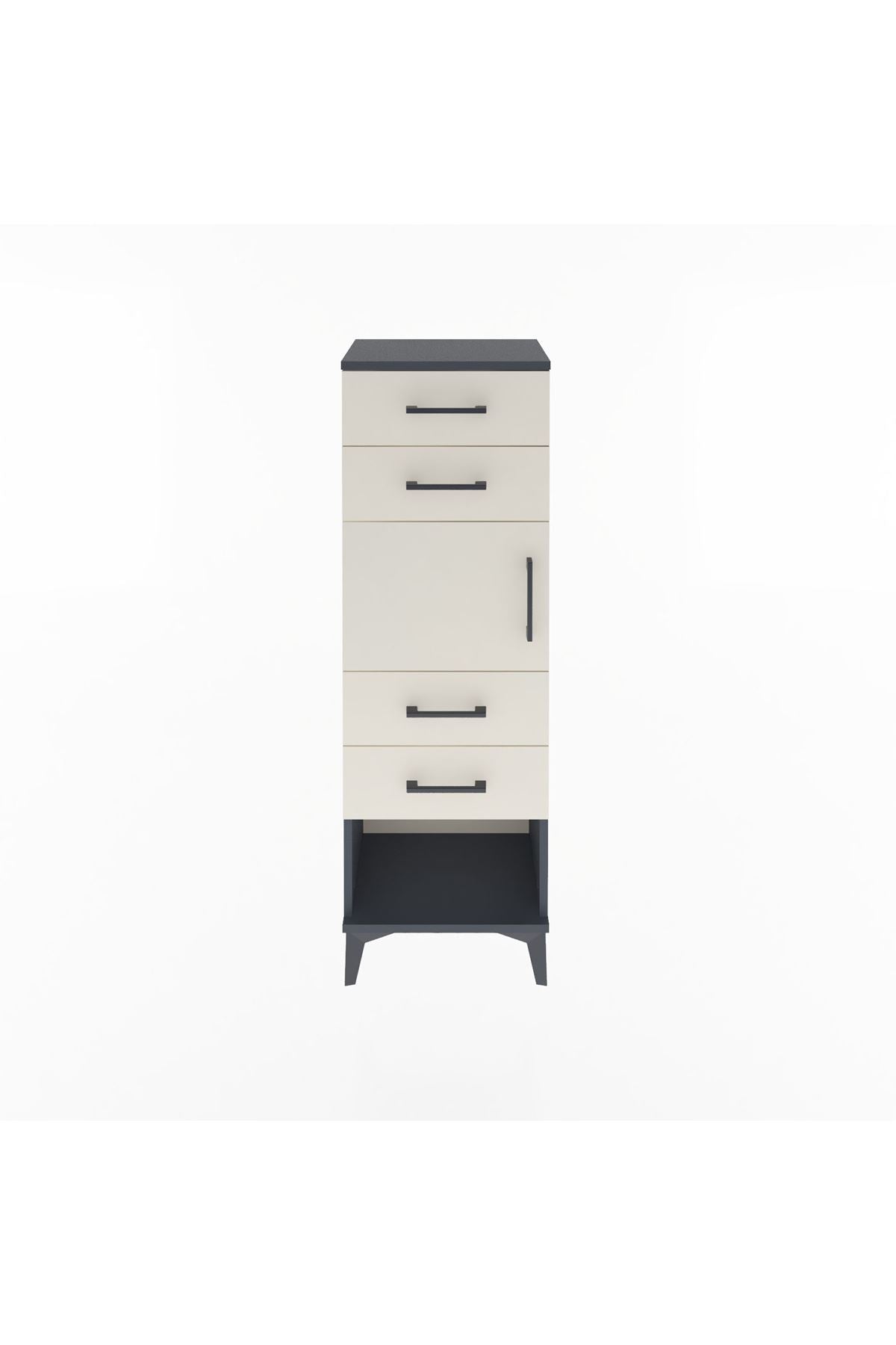 Arges Dolap Tek Raflı 4 Çekmeceli Tek Kapaklı 44x30x134 Antrasit-Aytaşı