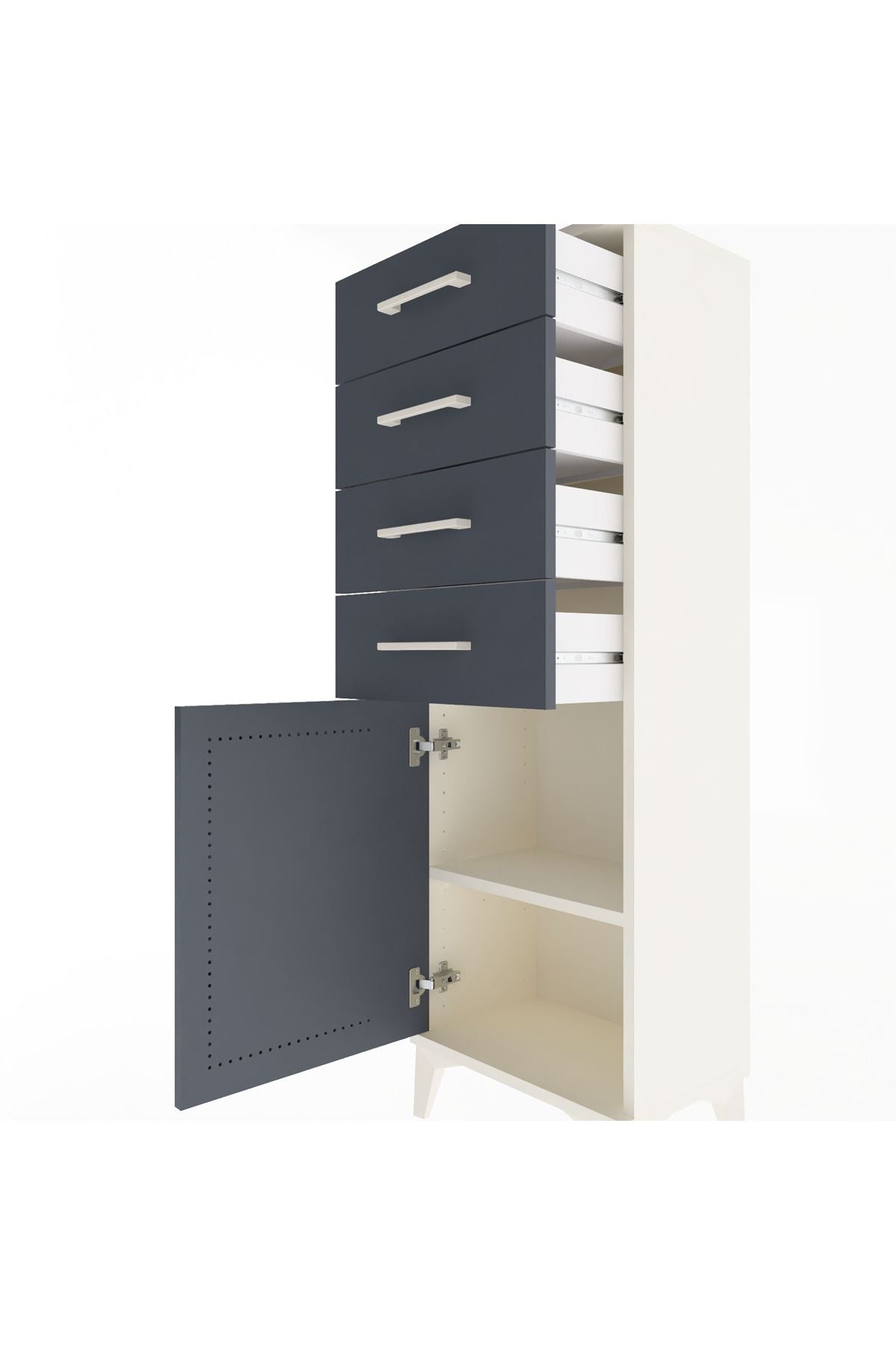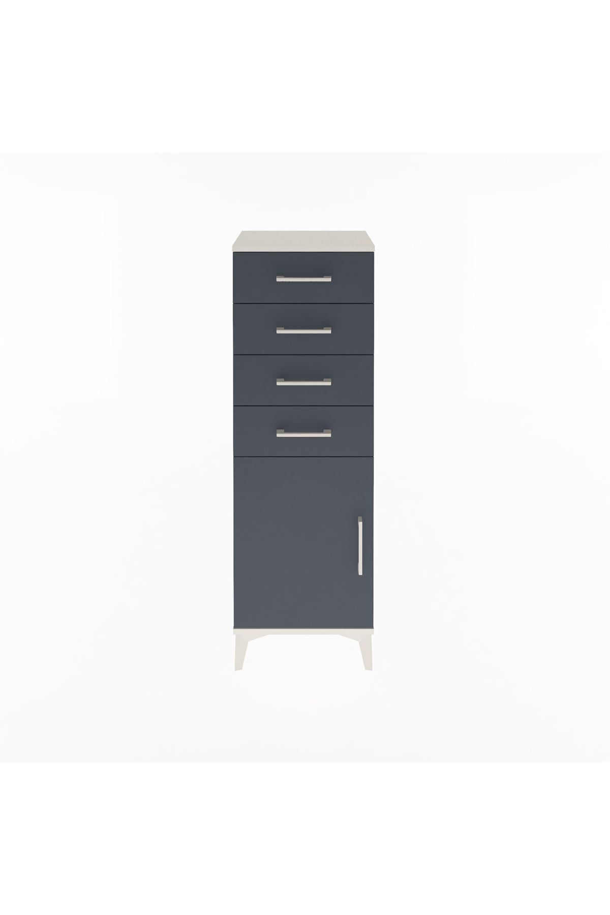 Arges Dolap Tek Raflı 4 Çekmeceli Tek Kapaklı 44x30x134 Aytaşı-Antrasit