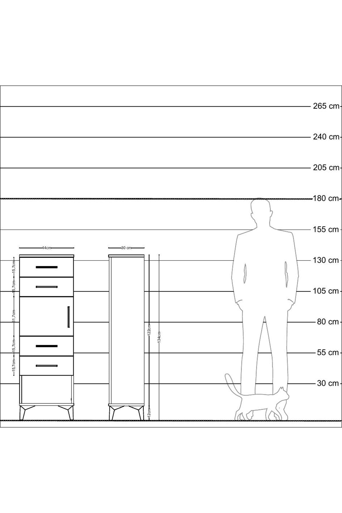 Arges Dolap Tek Raflı 4 Çekmeceli Tek Kapaklı 44x30x134 Aytaşı-Çam