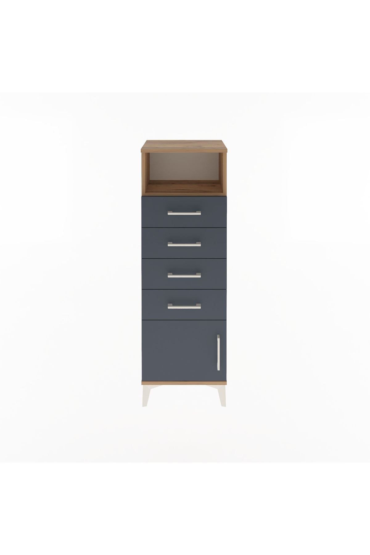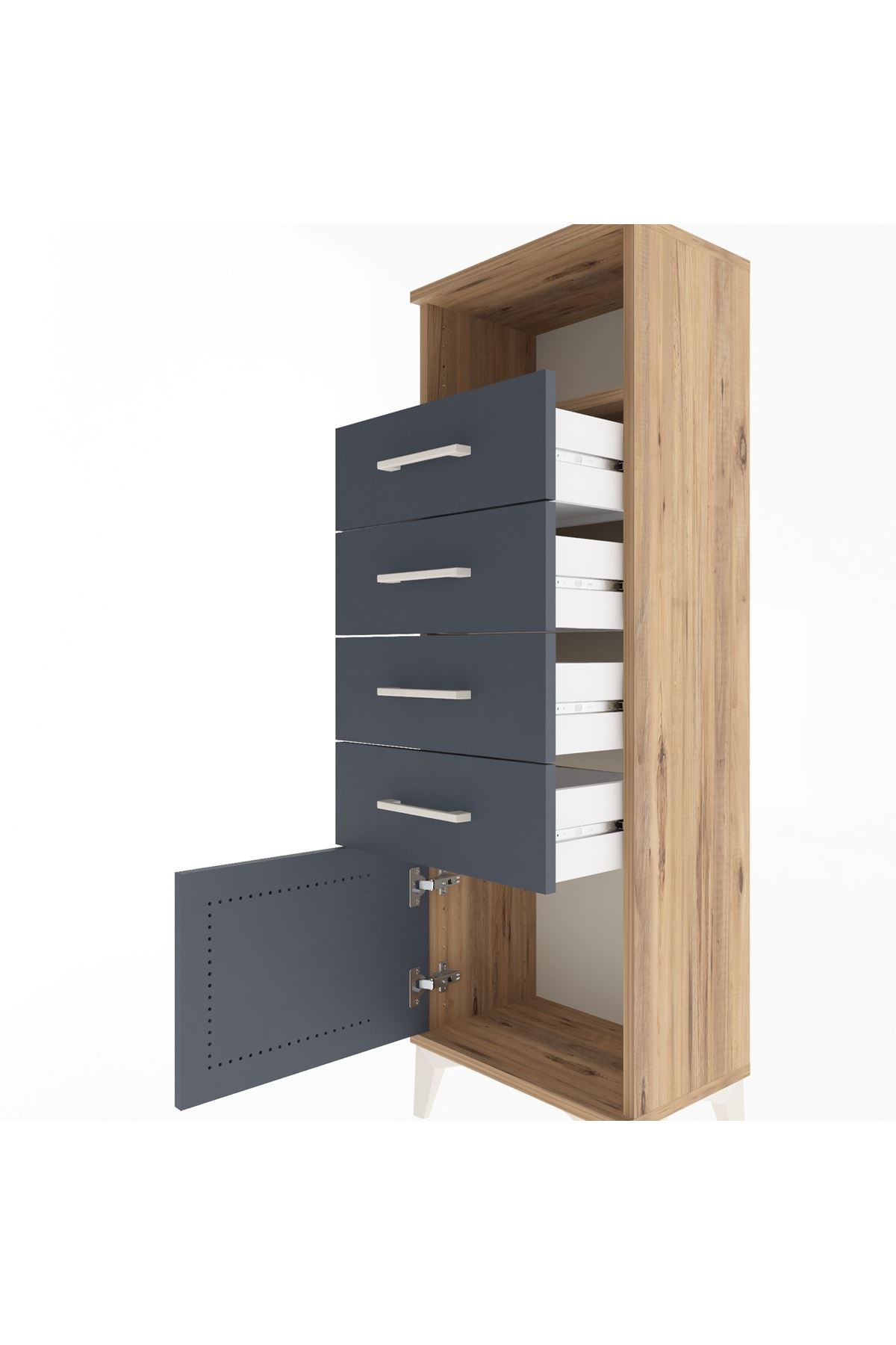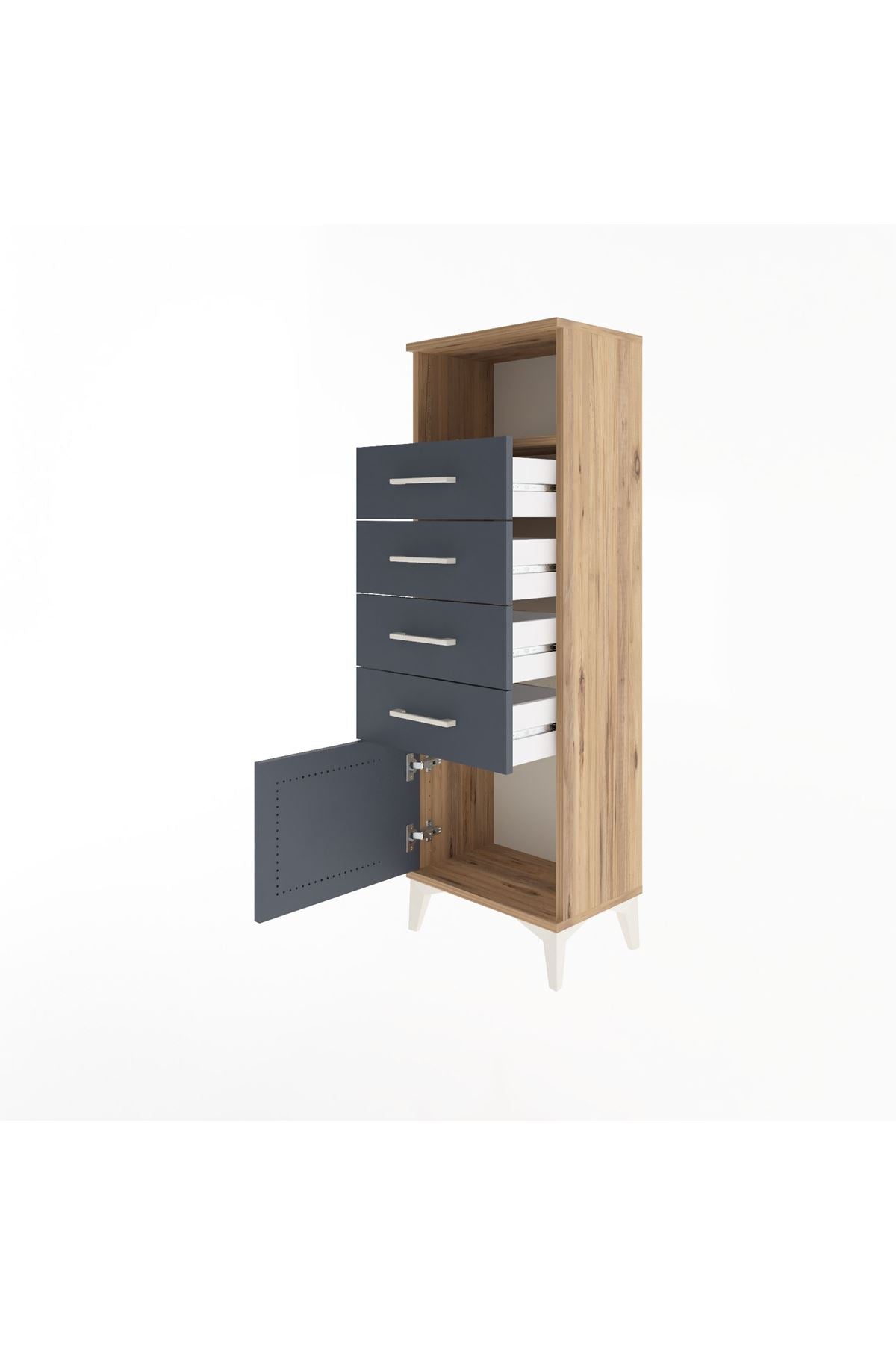 Arges Dolap Tek Raflı 4 Çekmeceli Tek Kapaklı 44x30x134 Çam-Antrasit