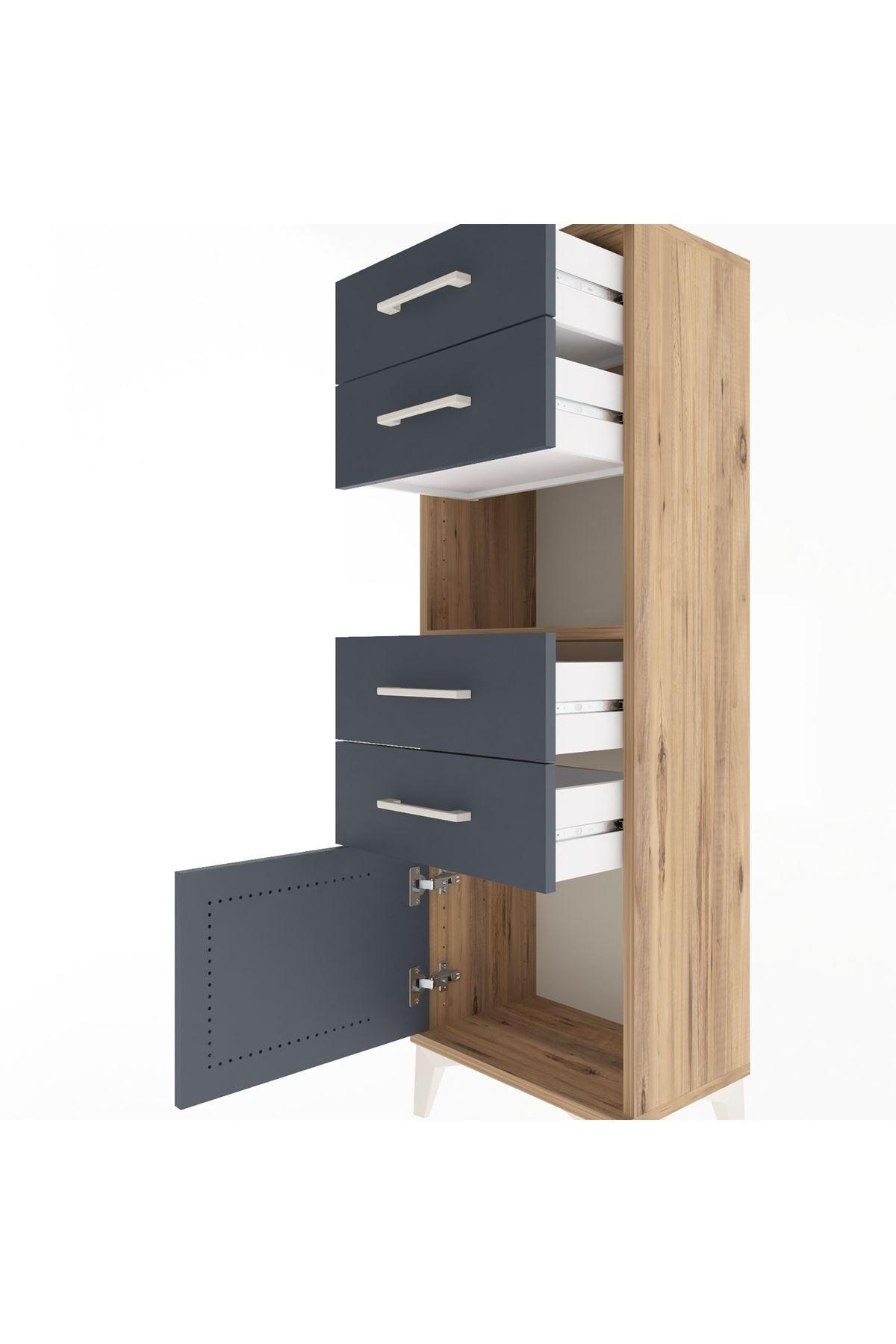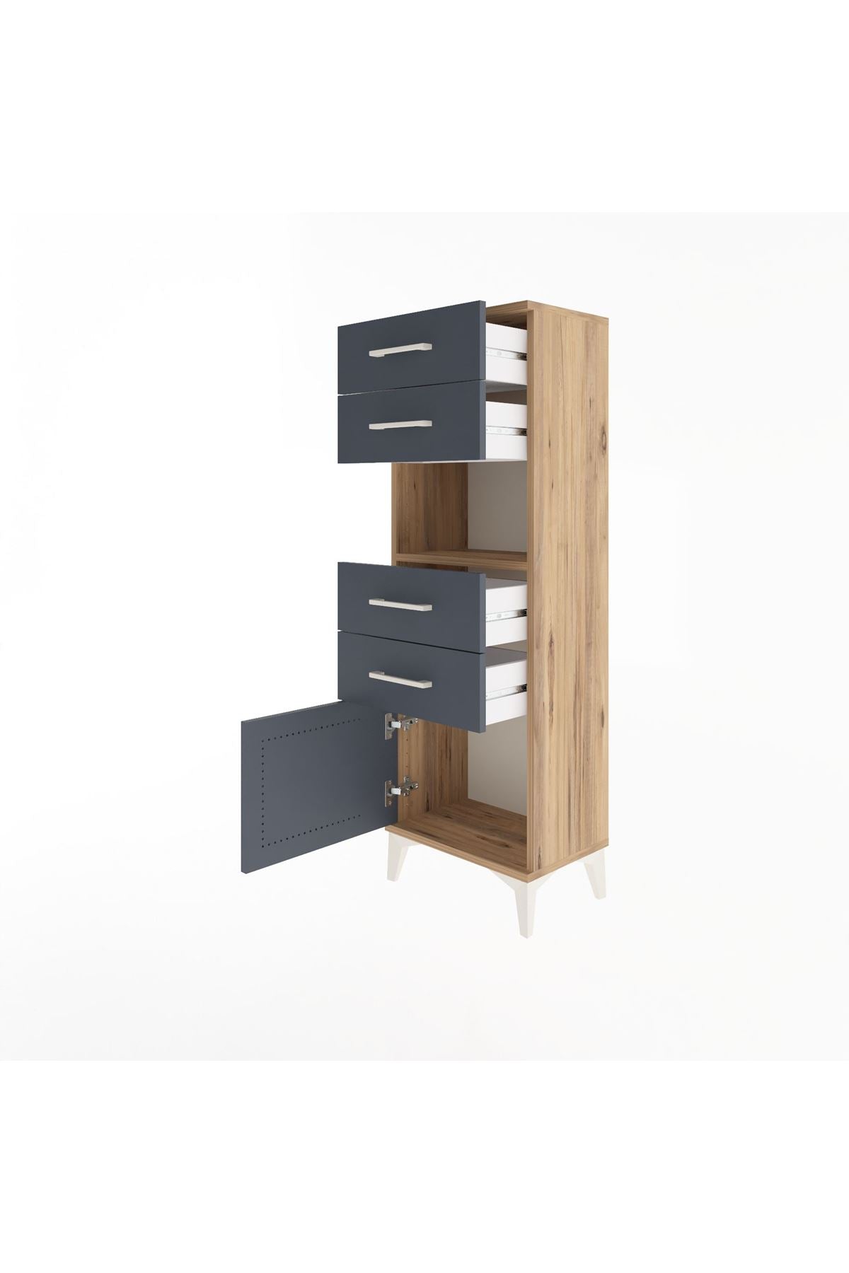 Arges Dolap Tek Raflı 4 Çekmeceli Tek Kapaklı 44x30x134 Çam-Antrasit