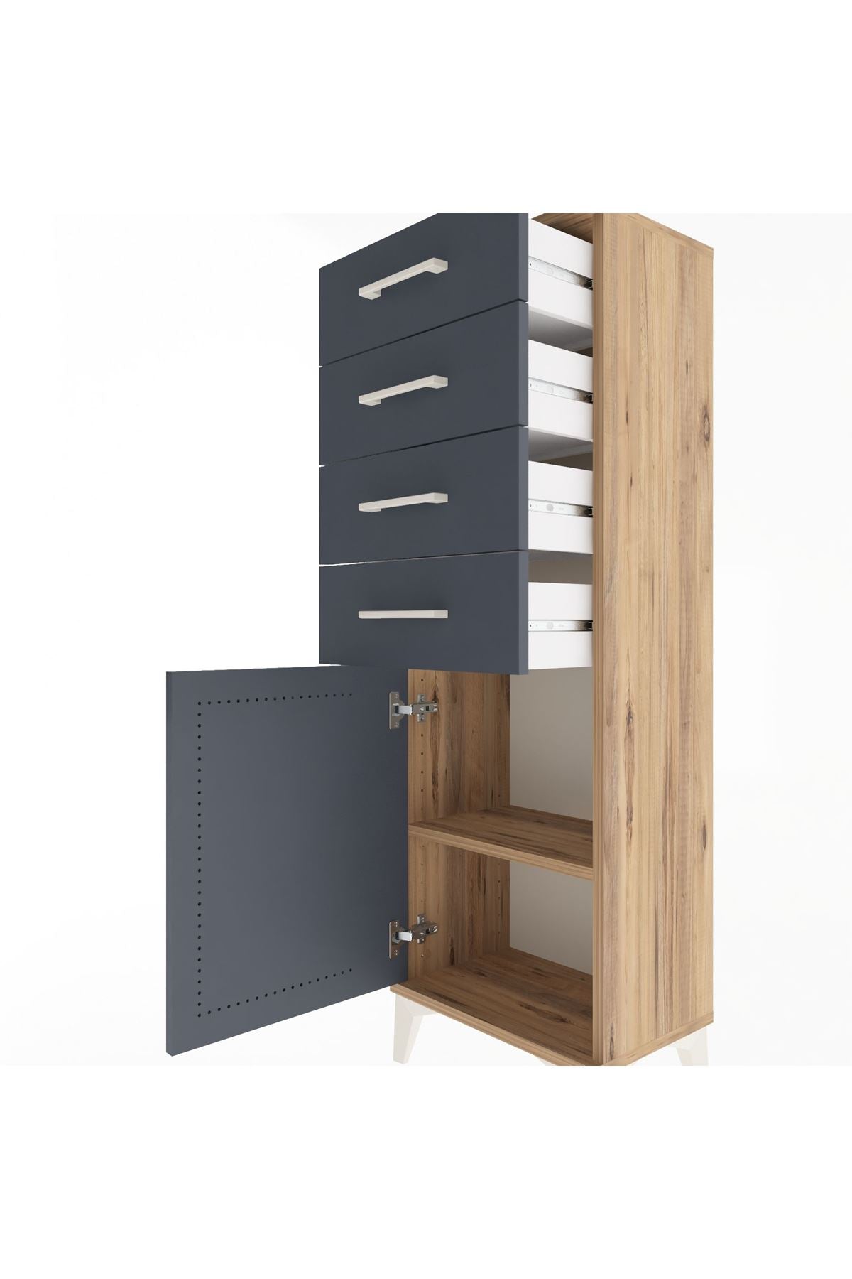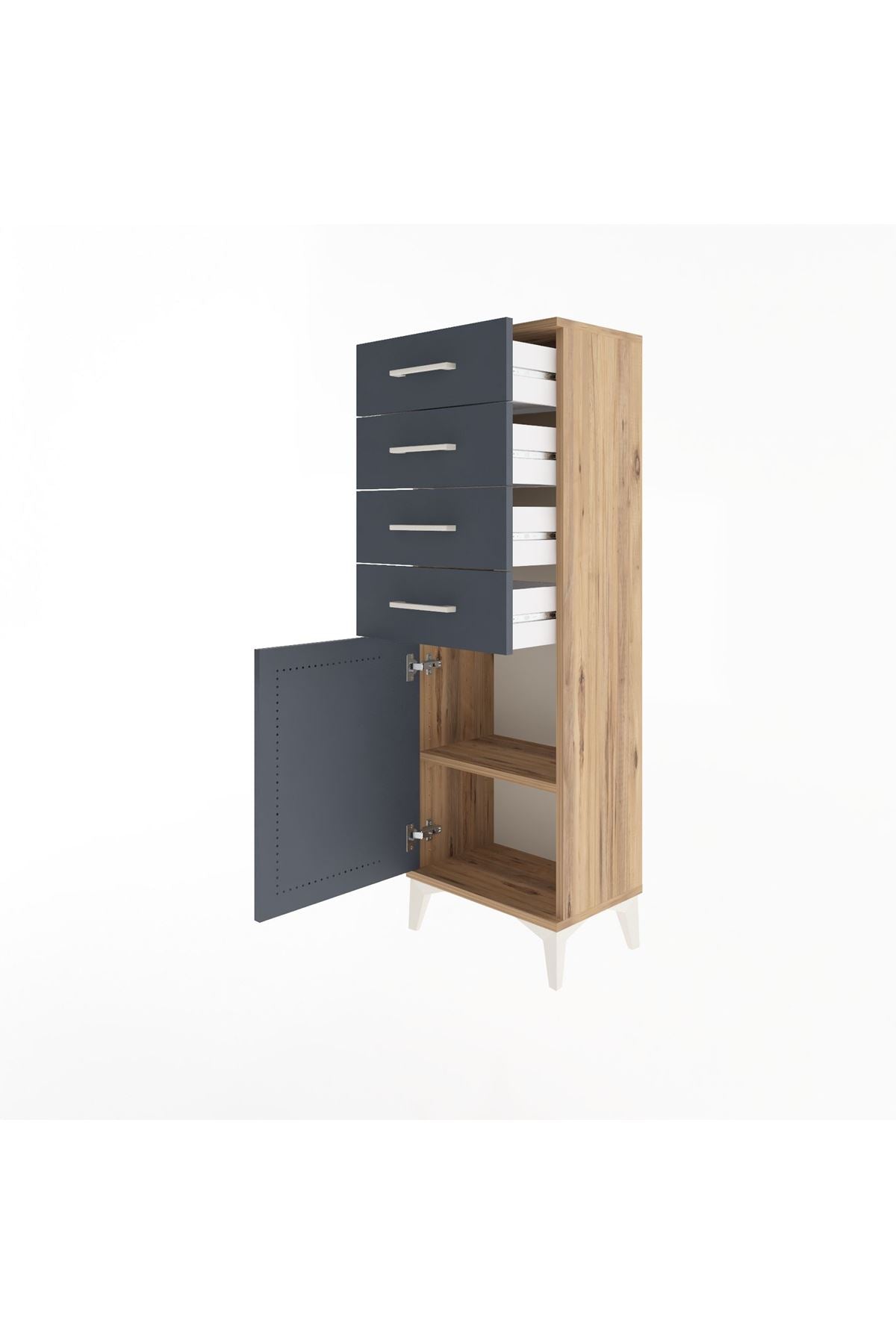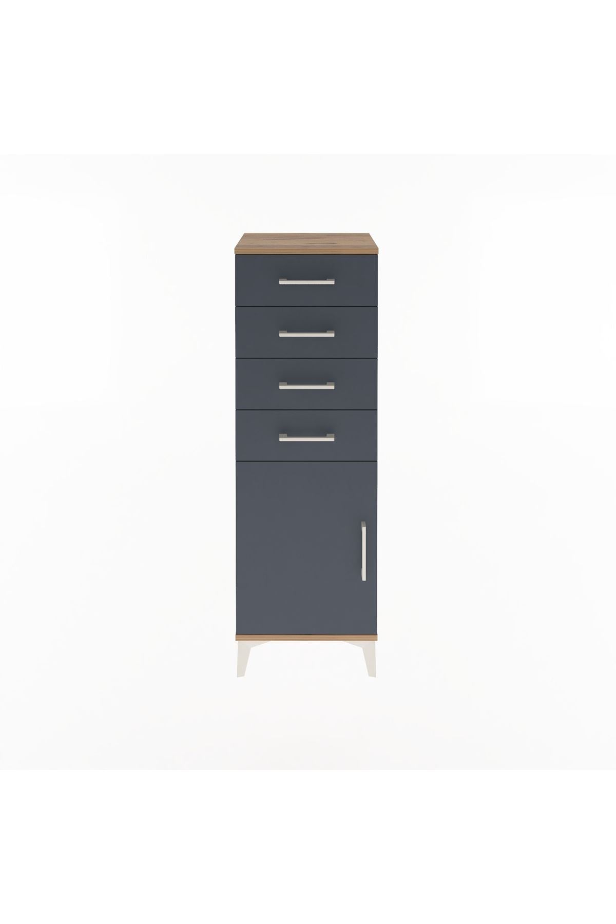 Arges Dolap Tek Raflı 4 Çekmeceli Tek Kapaklı 44x30x134 Çam-Antrasit