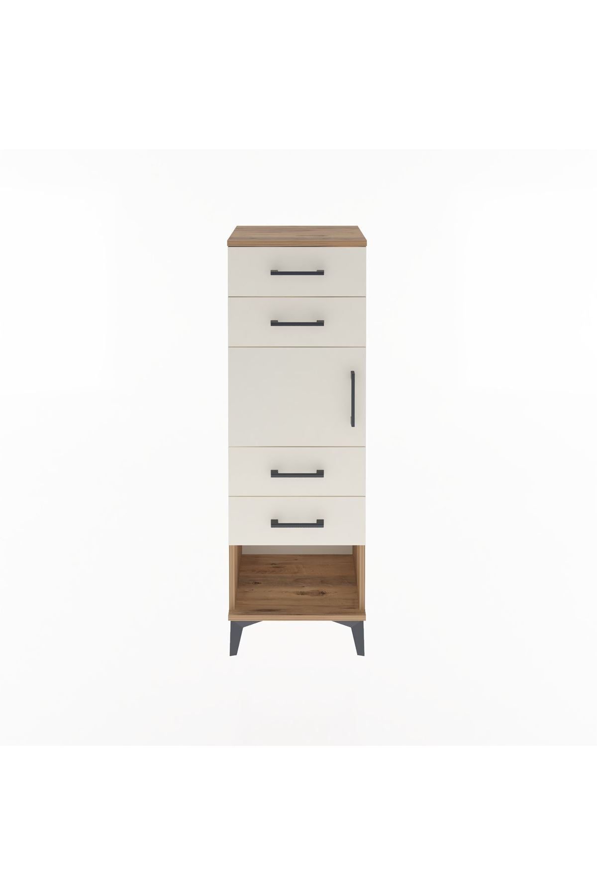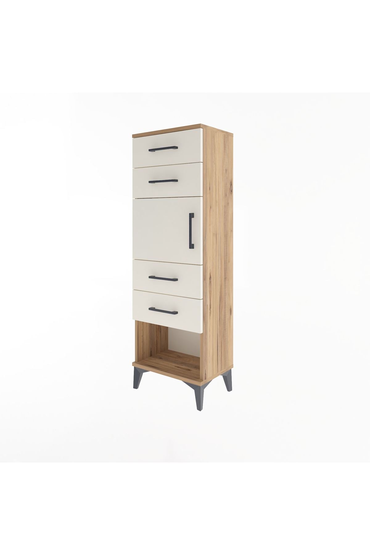 Arges Dolap Tek Raflı 4 Çekmeceli Tek Kapaklı 44x30x134 Çam-Aytaşı