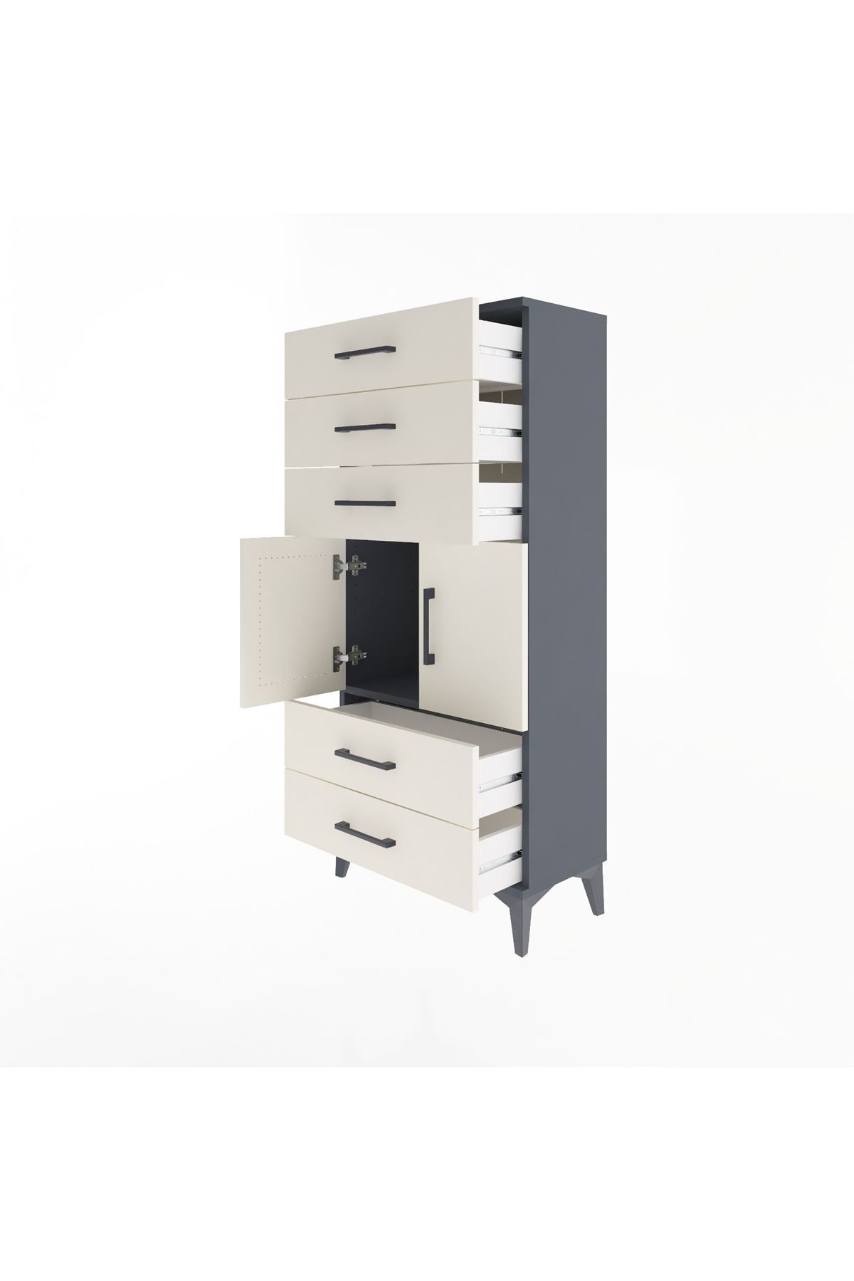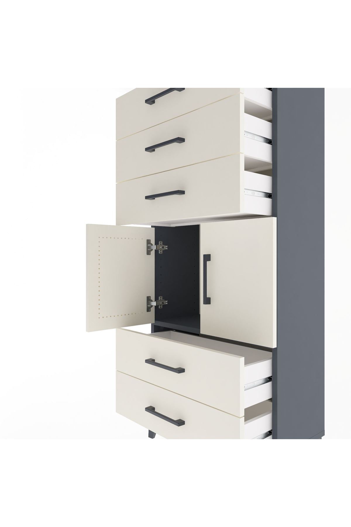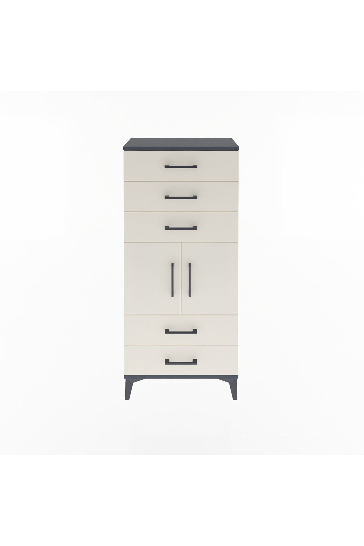 Arges Dolap Tek Raflı 5 Çekmeceli 2 Kapaklı 60x30x134 Antrasit-Aytaşı