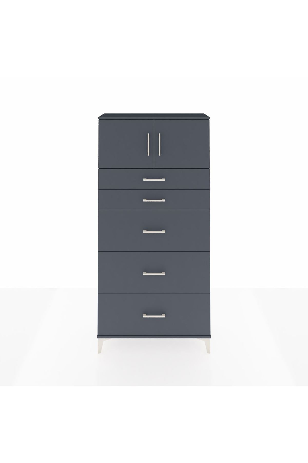 Arges Dolap Tek Raflı 5 Çekmeceli 2 Kapaklı 88x30x182 Antrasit-Antrasit