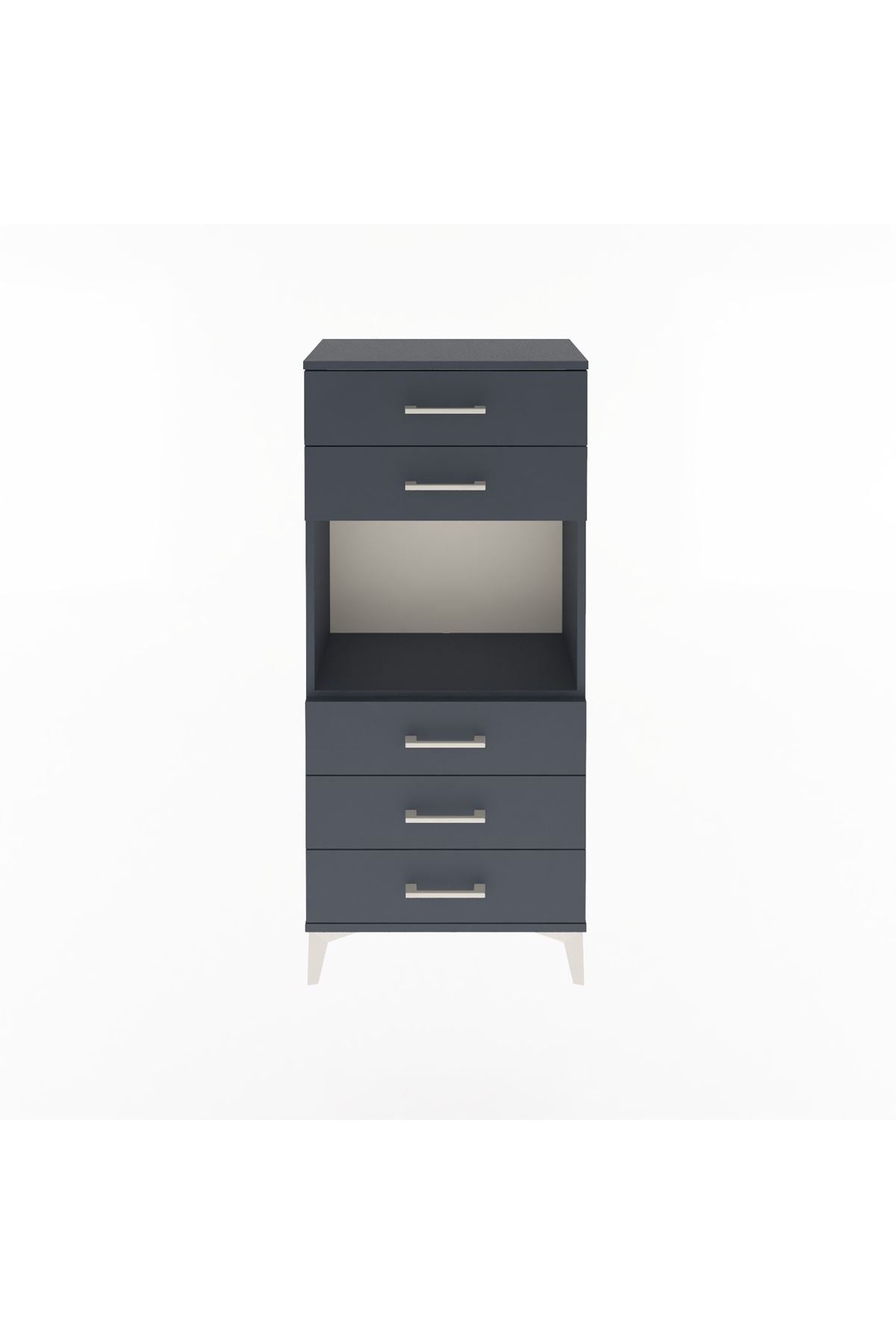 Arges Dolap Tek Raflı 5 Çekmeceli 60x30x134 Antrasit-Antrasit