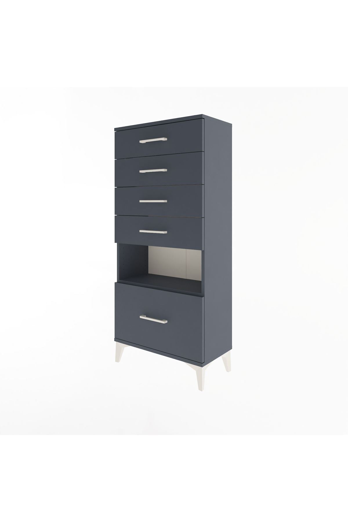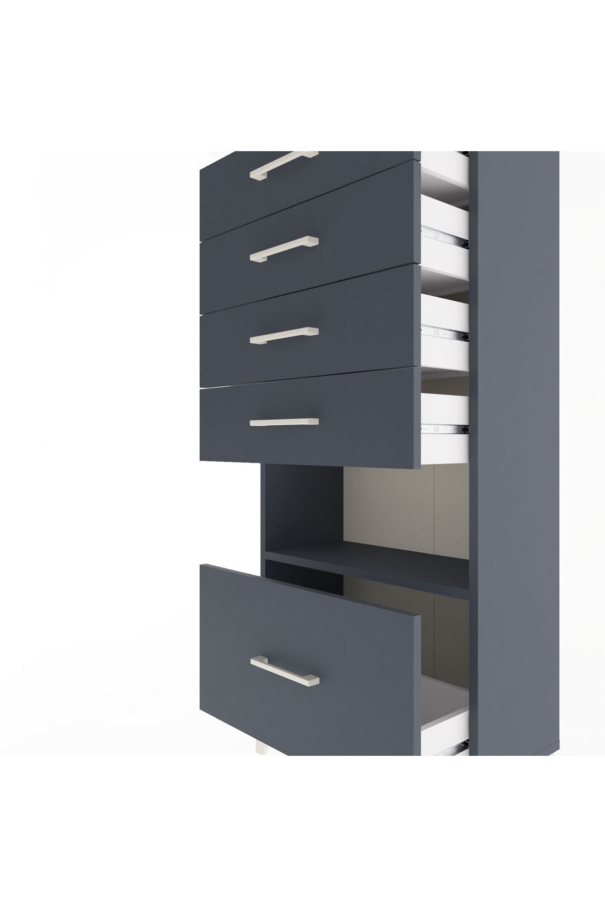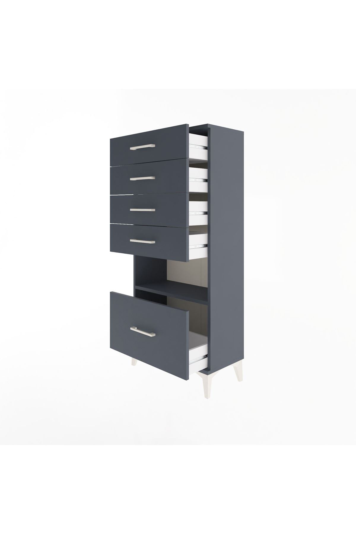 Arges Dolap Tek Raflı 5 Çekmeceli 60x30x134 Antrasit-Antrasit