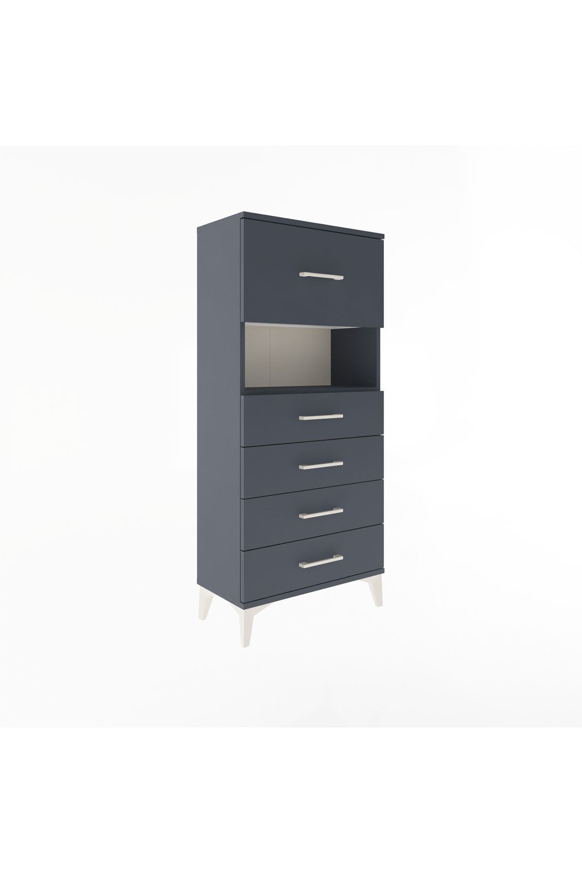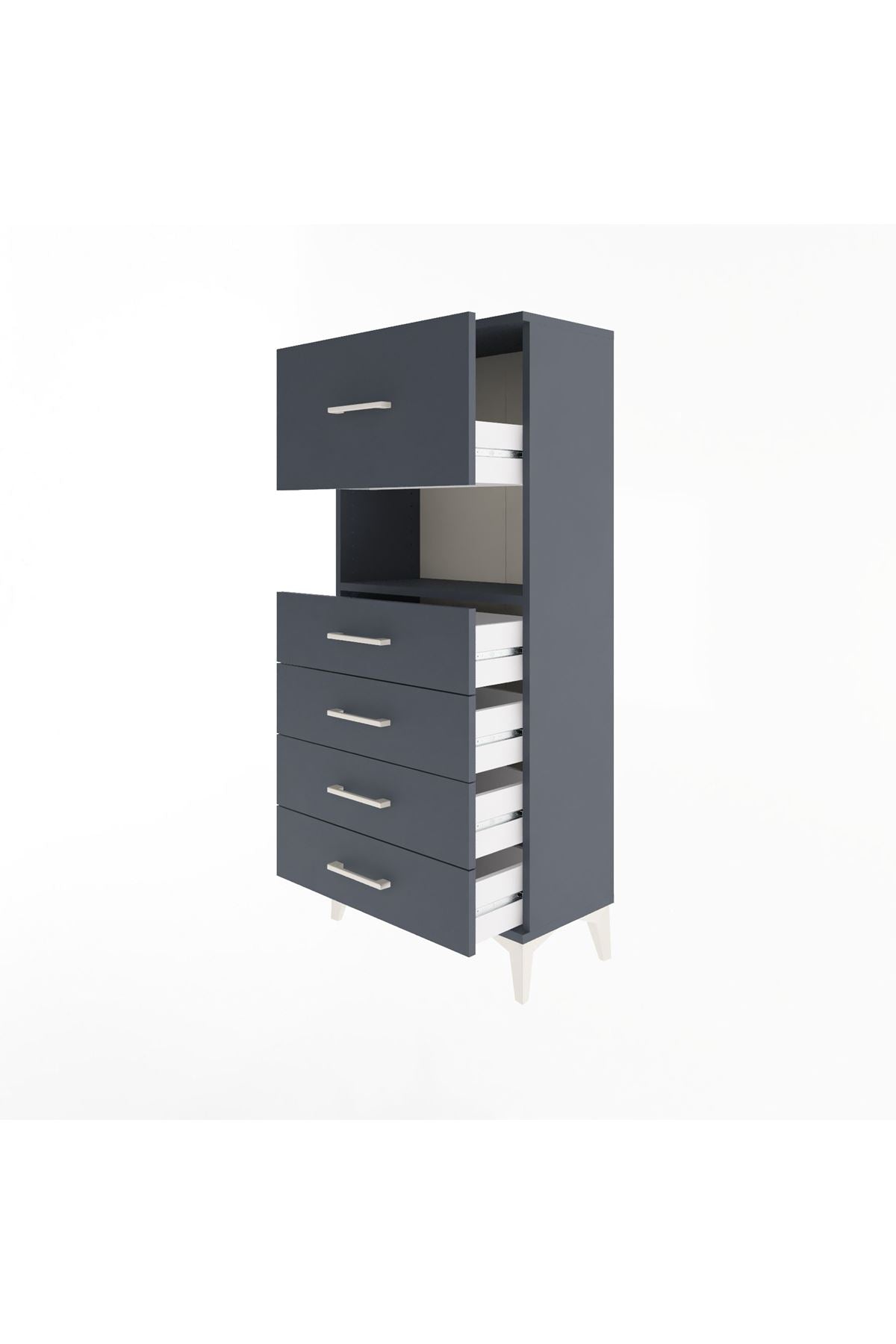 Arges Dolap Tek Raflı 5 Çekmeceli 60x30x134 Antrasit-Antrasit