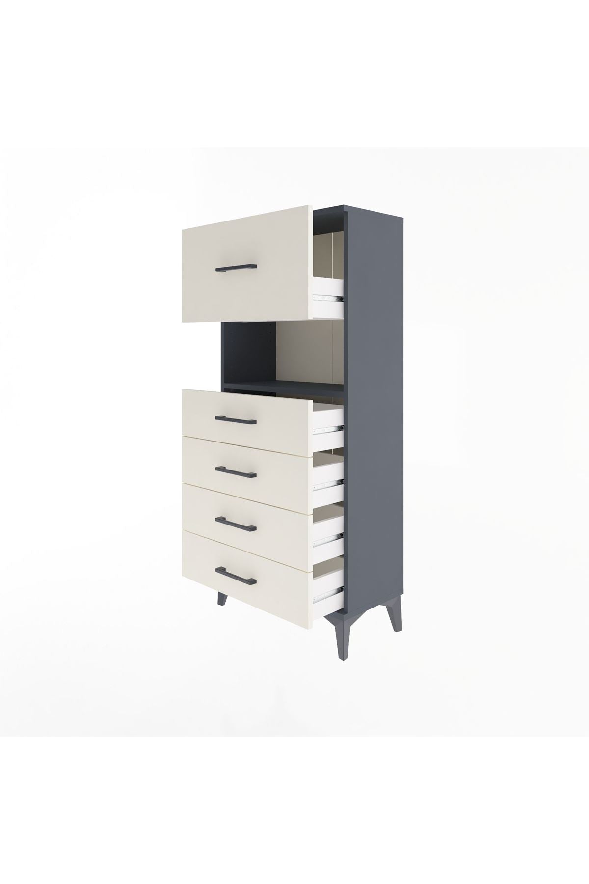 Arges Dolap Tek Raflı 5 Çekmeceli 60x30x134 Antrasit-Aytaşı