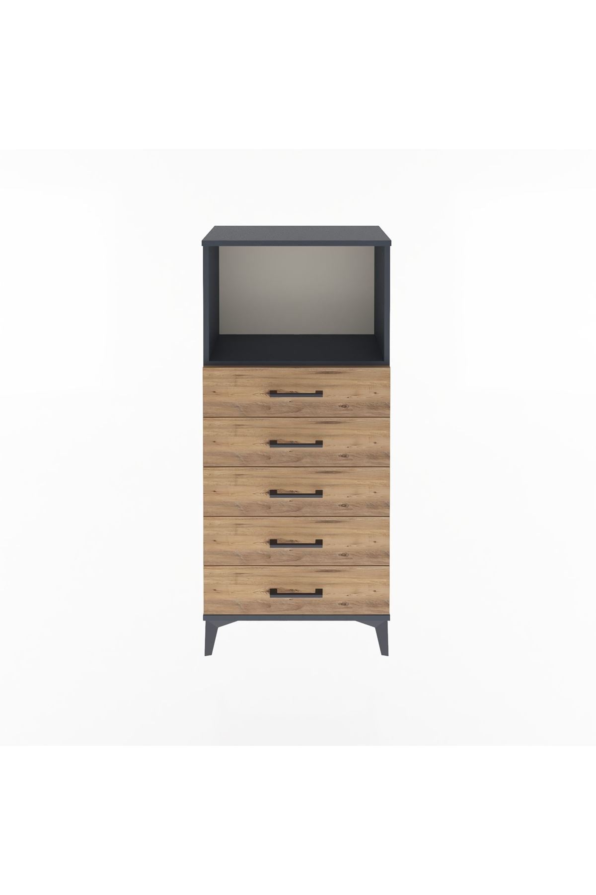 Arges Dolap Tek Raflı 5 Çekmeceli 60x30x134 Antrasit-Çam
