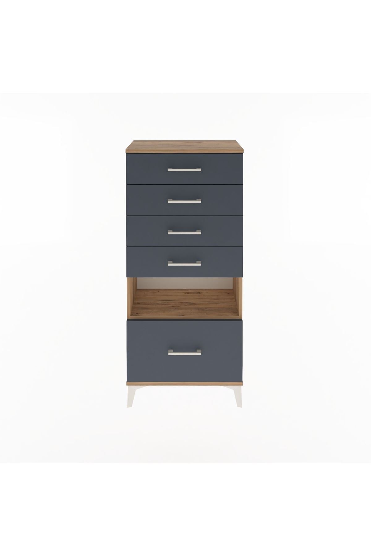 Arges Dolap Tek Raflı 5 Çekmeceli 60x30x134 Çam-Antrasit