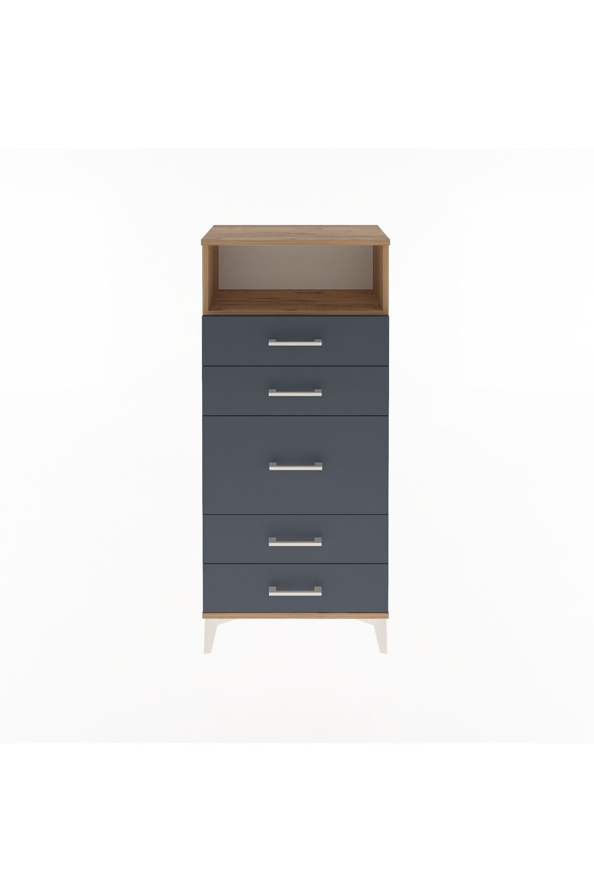 Arges Dolap Tek Raflı 5 Çekmeceli 60x30x134 Çam-Antrasit