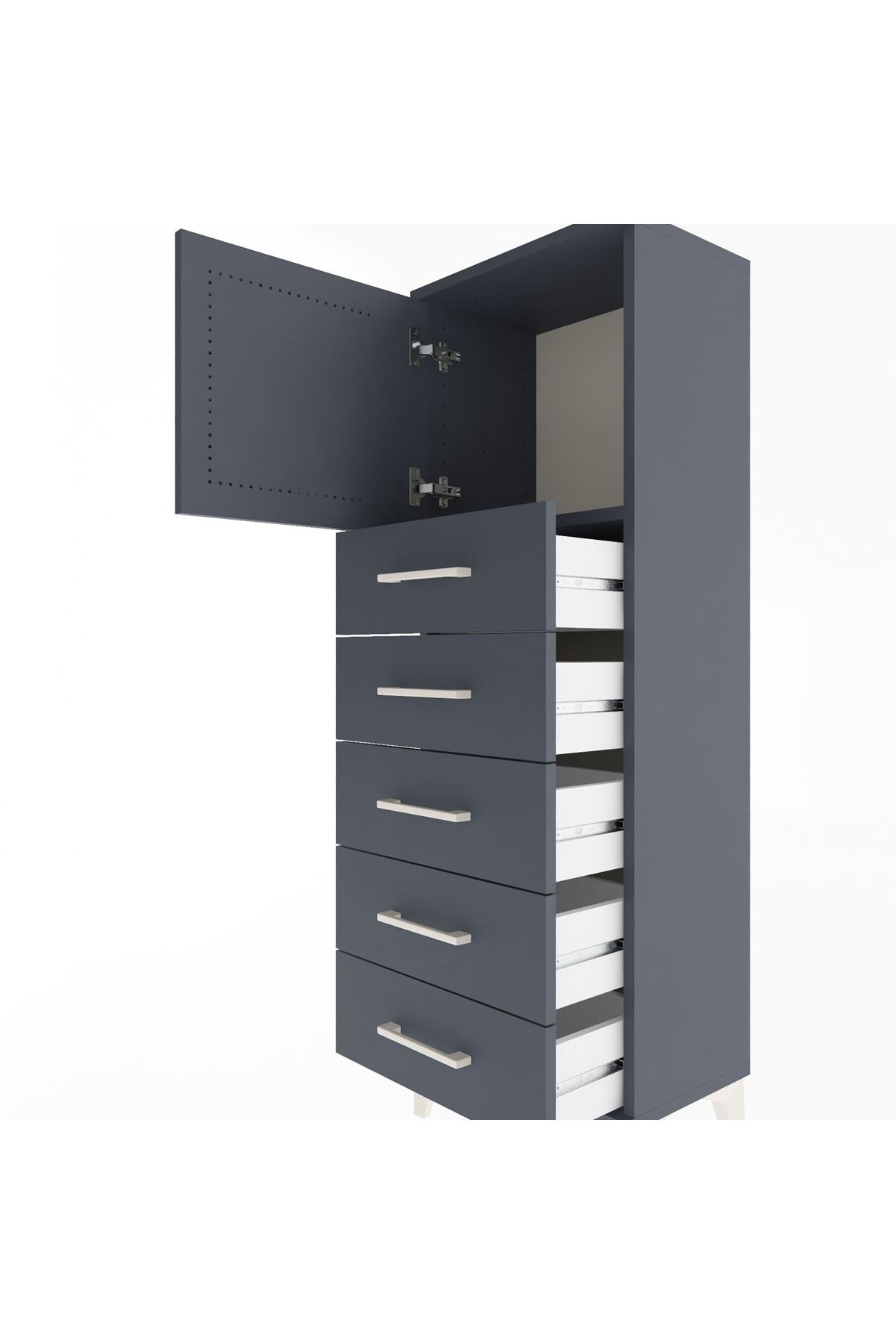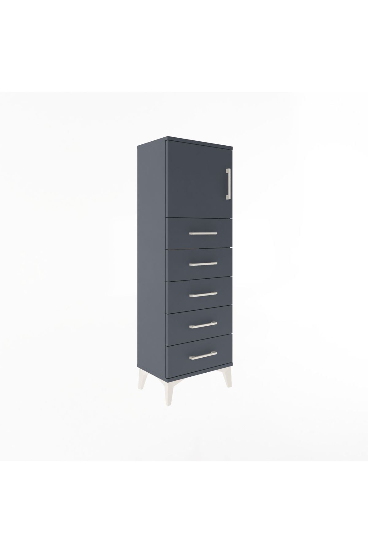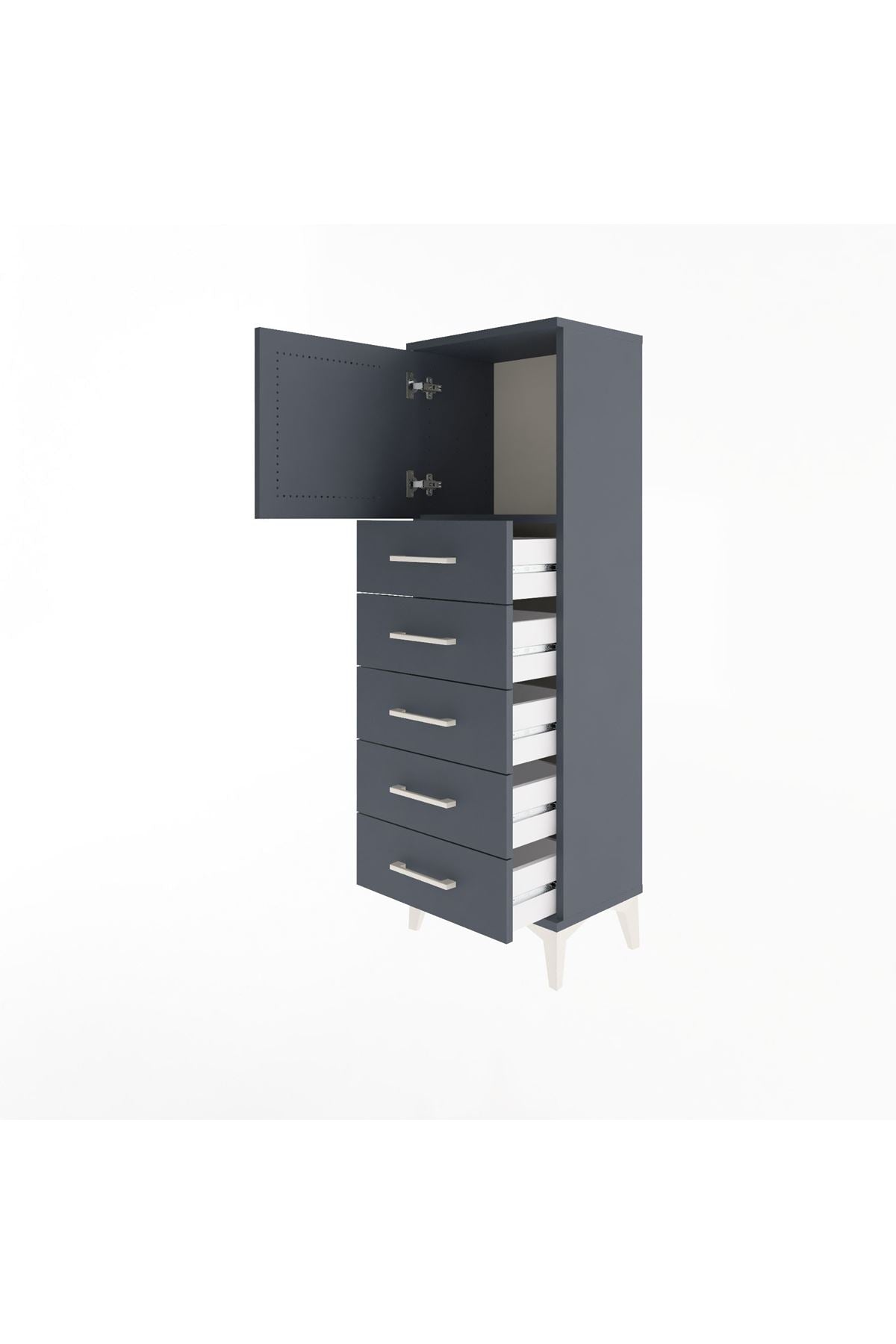 Arges Dolap Tek Raflı 5 Çekmeceli Tek Kapaklı 44x30x134 Antrasit-Antrasit