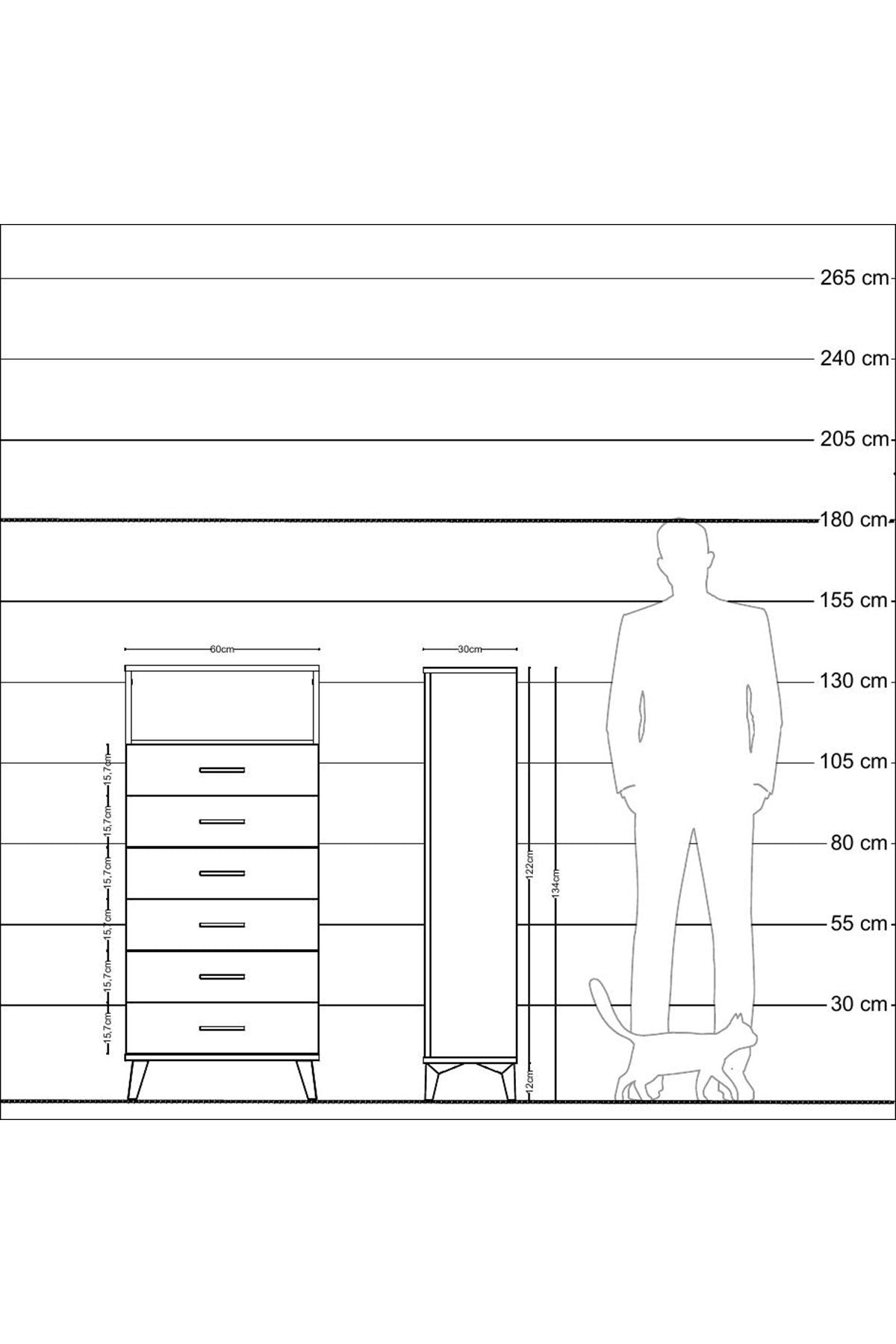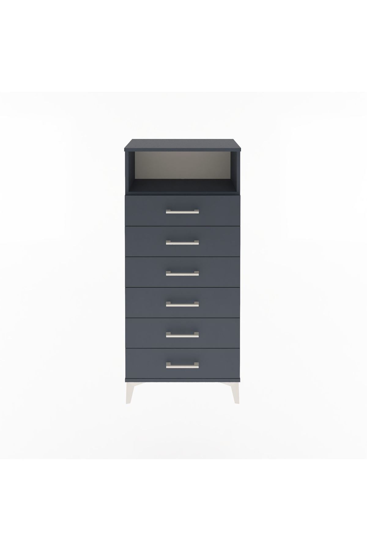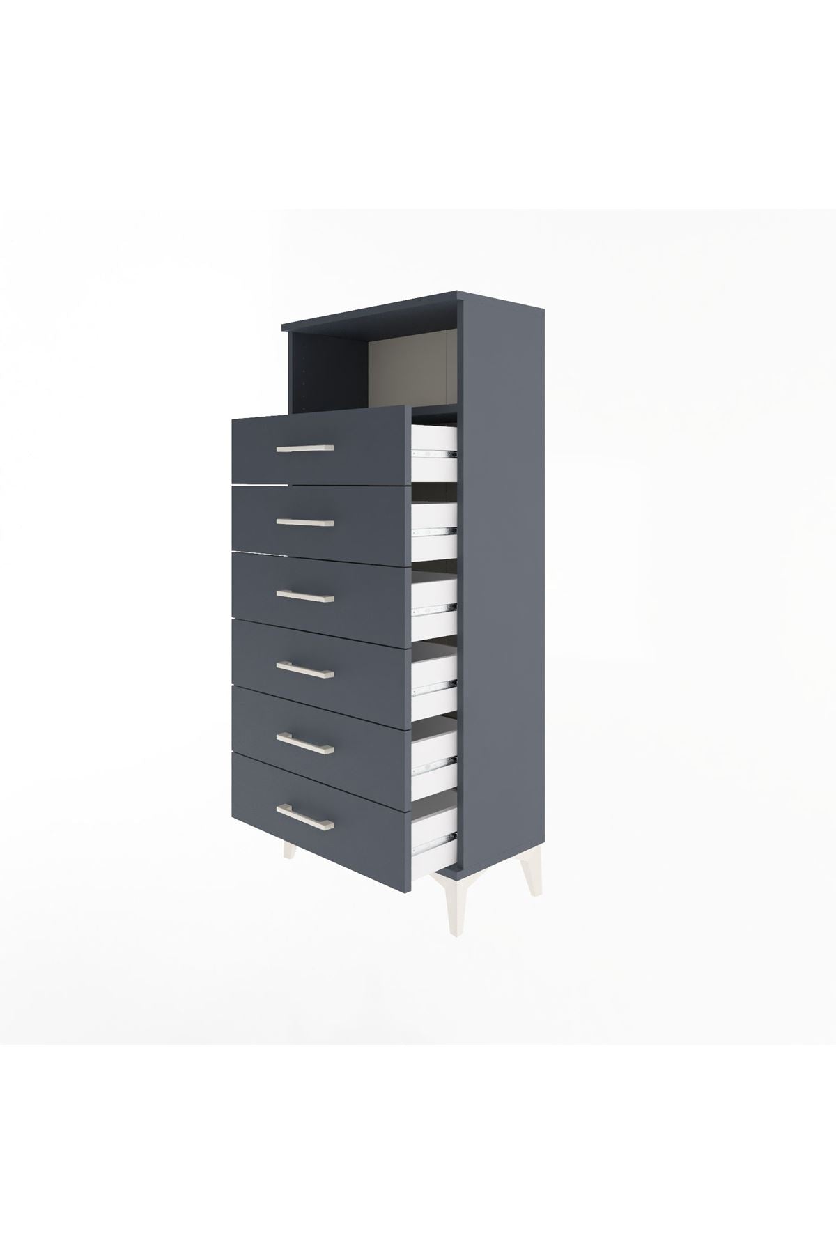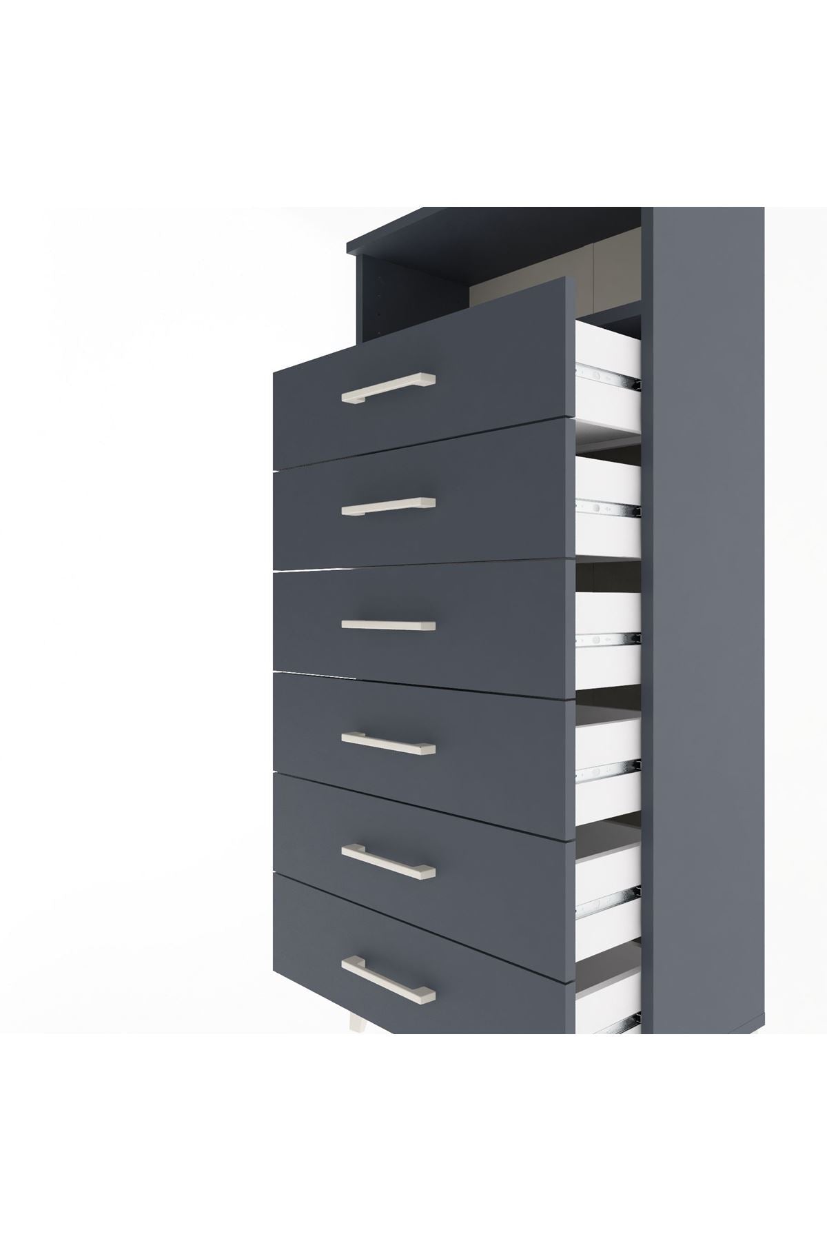 Arges Dolap Tek Raflı 6 Çekmeceli 60x30x134 Antrasit-Antrasit