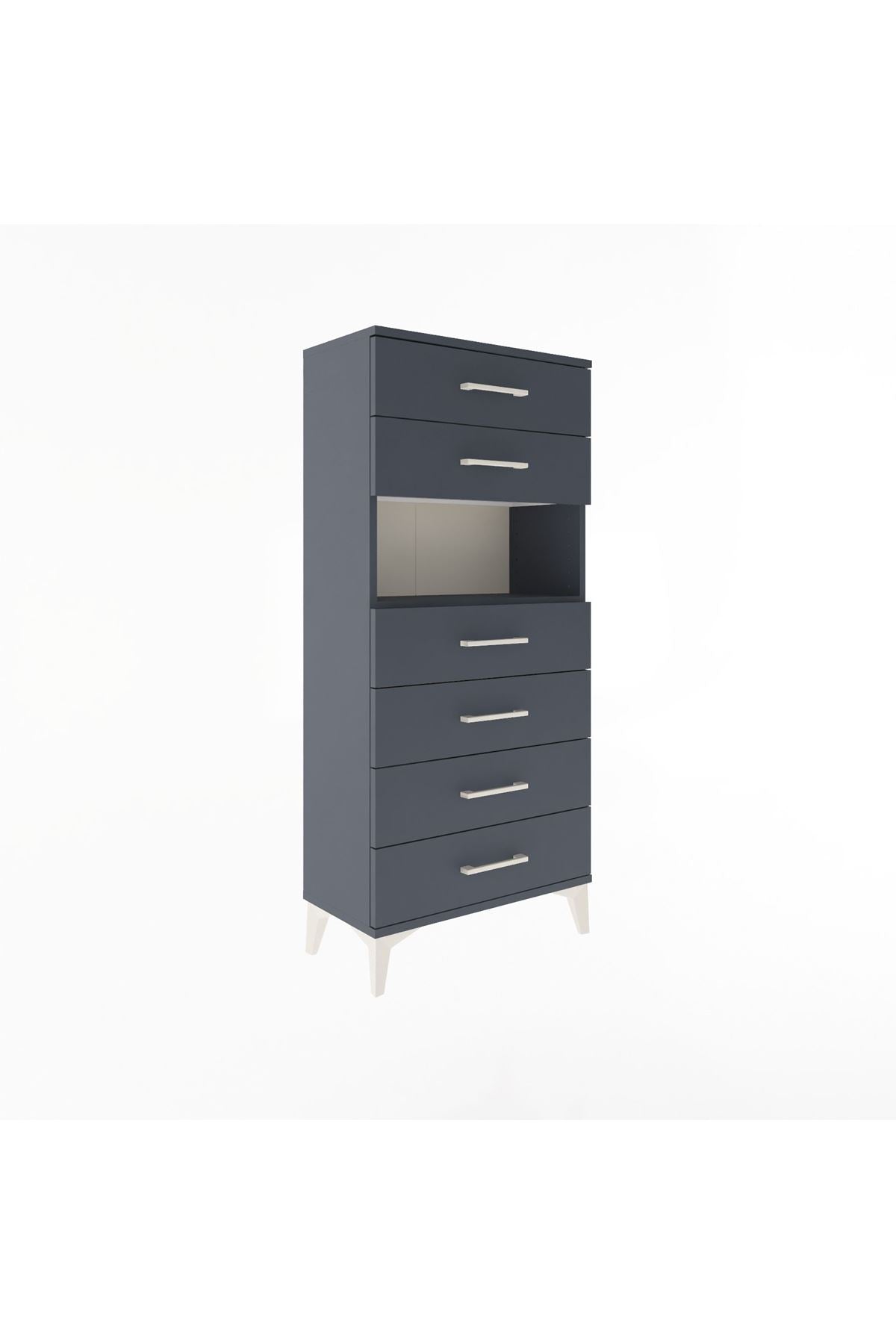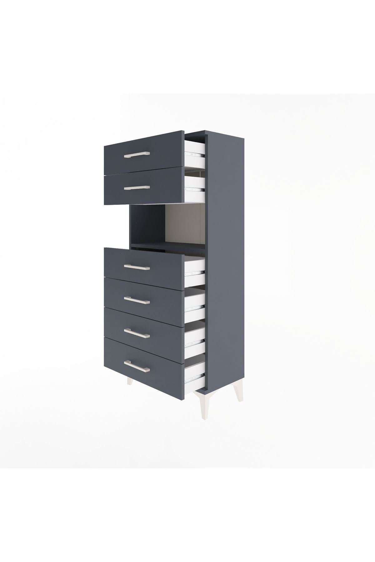 Arges Dolap Tek Raflı 6 Çekmeceli 60x30x134 Antrasit-Antrasit