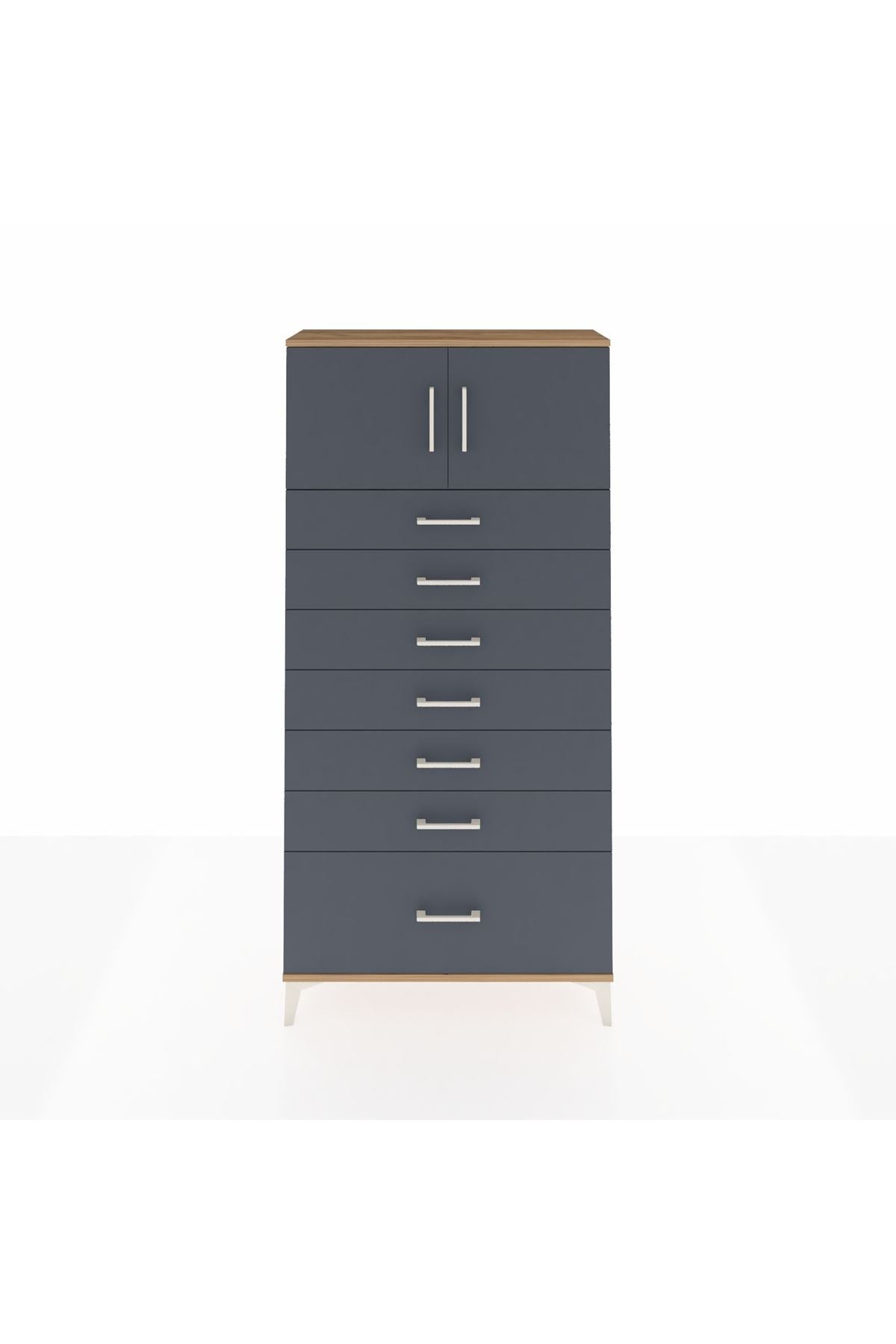 Arges Dolap Tek Raflı 7 Çekmeceli 2 Kapaklı 88x30x182 Çam-Antrasit