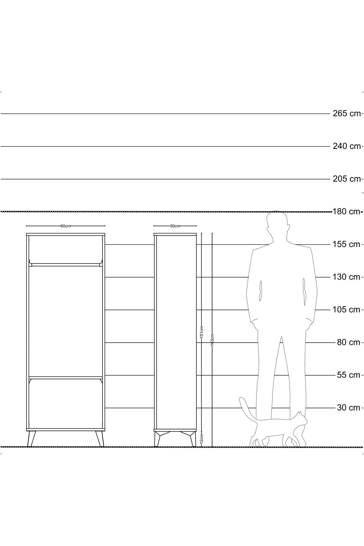 Genişlik: 60 cm – Derinlik: 30 cm – Yükseklik: 163 cm
