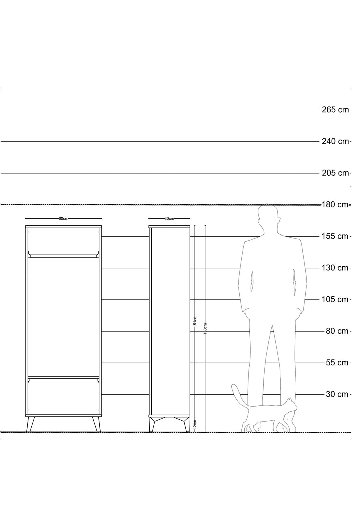 Arges Dolap Tek Raflı Kapaklı Tek Askılı 60x30x163 Çam-Çam