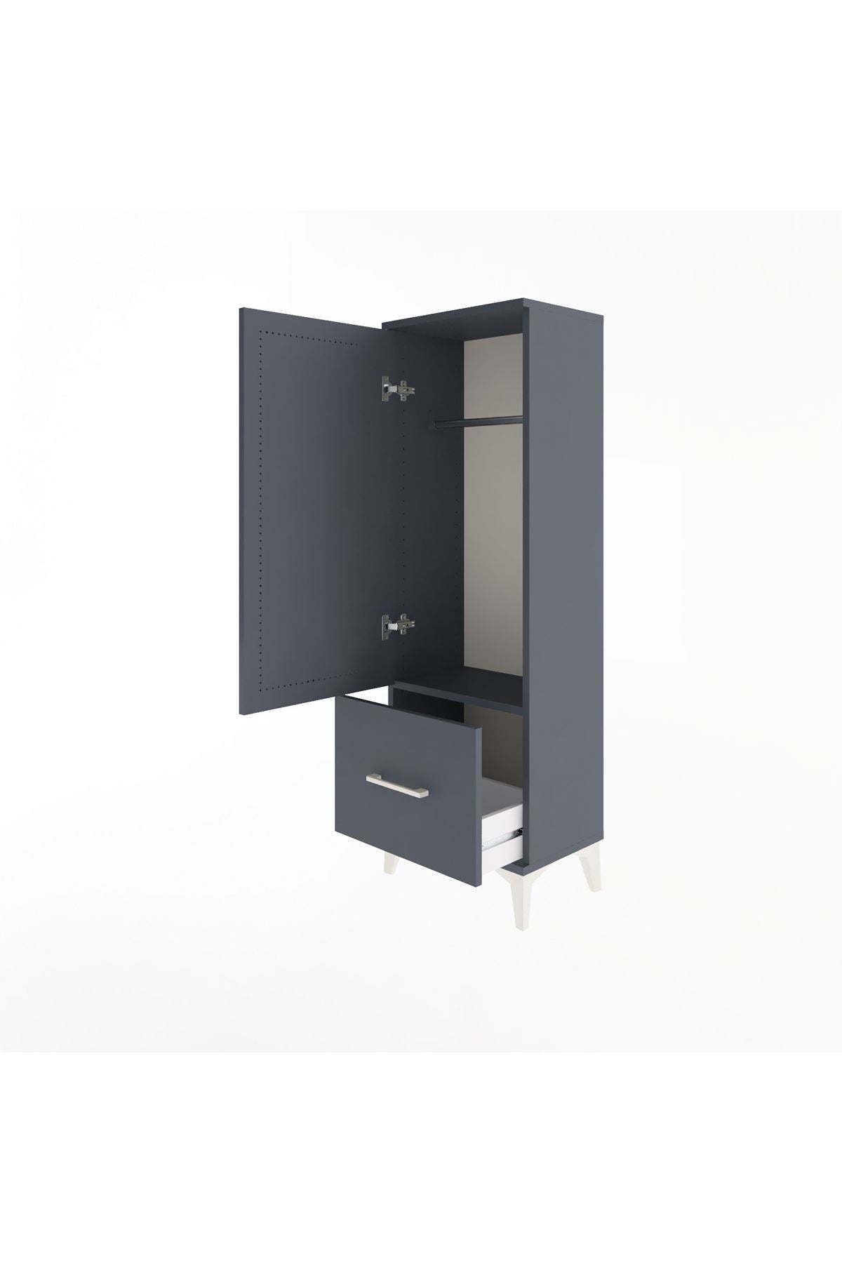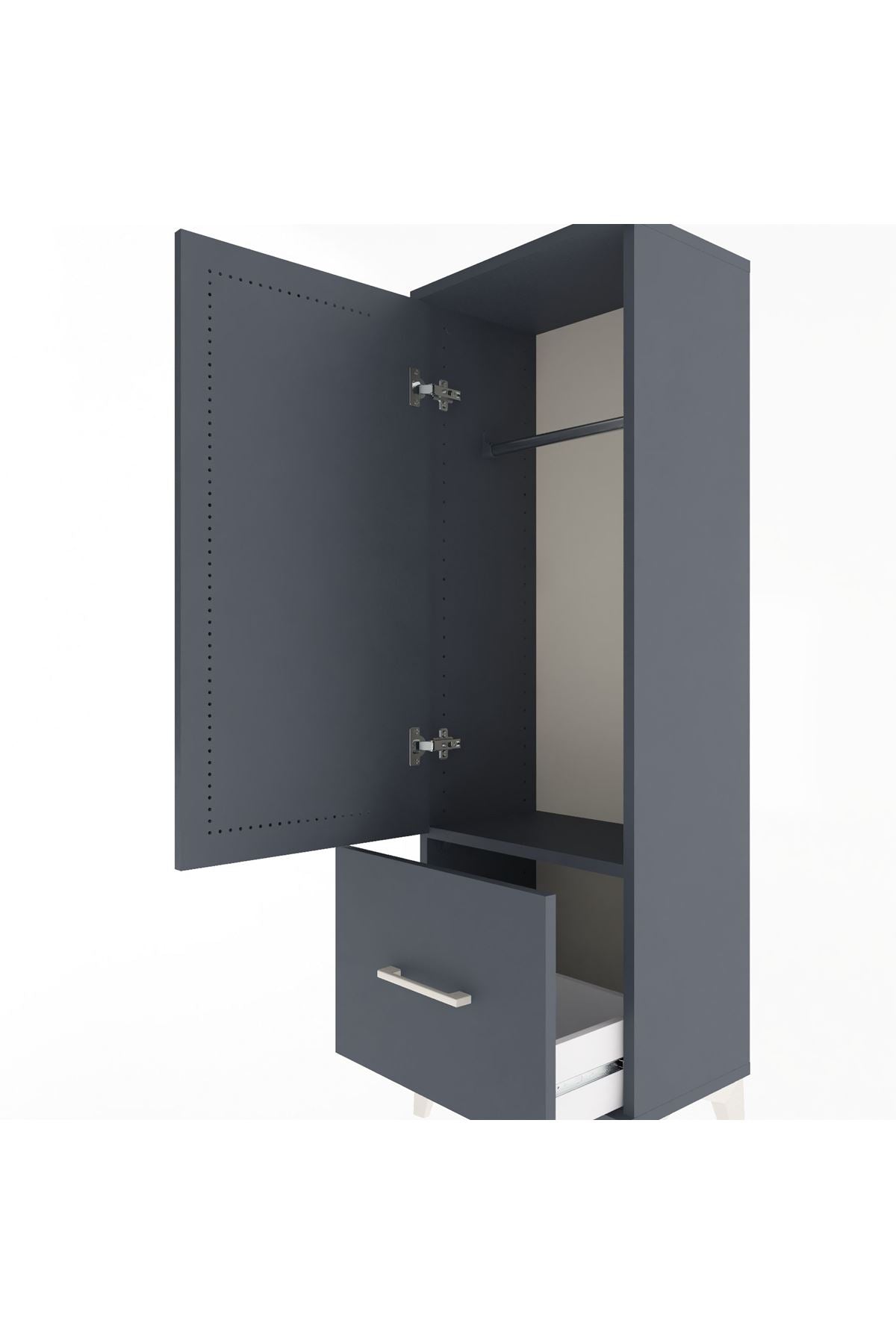 Arges Dolap Tek Raflı Tek Çekmeceli Tek Askılı 44x30x134 Antrasit-Antrasit