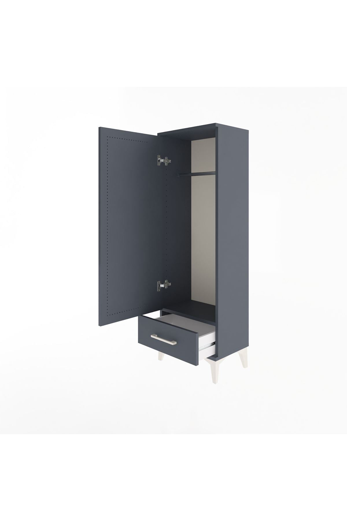 Arges Dolap Tek Raflı Tek Çekmeceli Tek Askılı 44x30x134 Antrasit-Antrasit