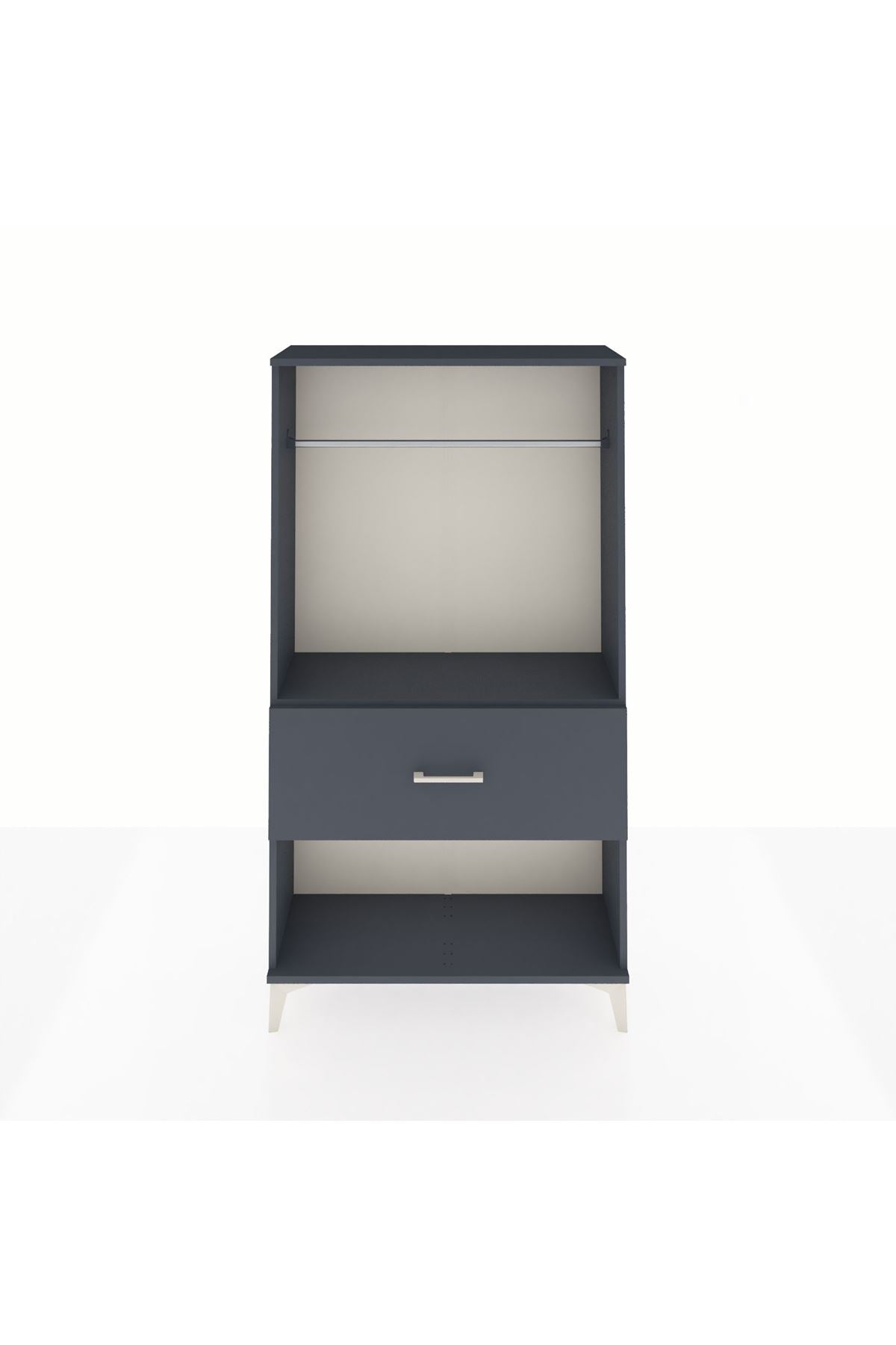 Arges Dolap Tek Raflı Tek Çekmeceli Tek Askılı 88x30x163 Antrasit-Antrasit