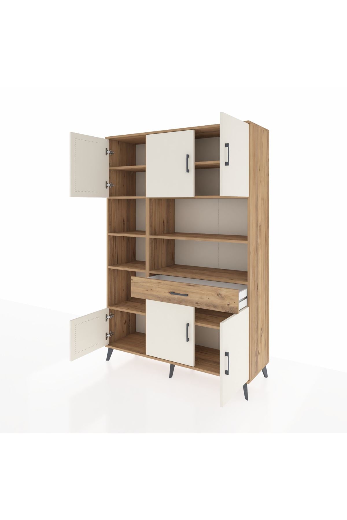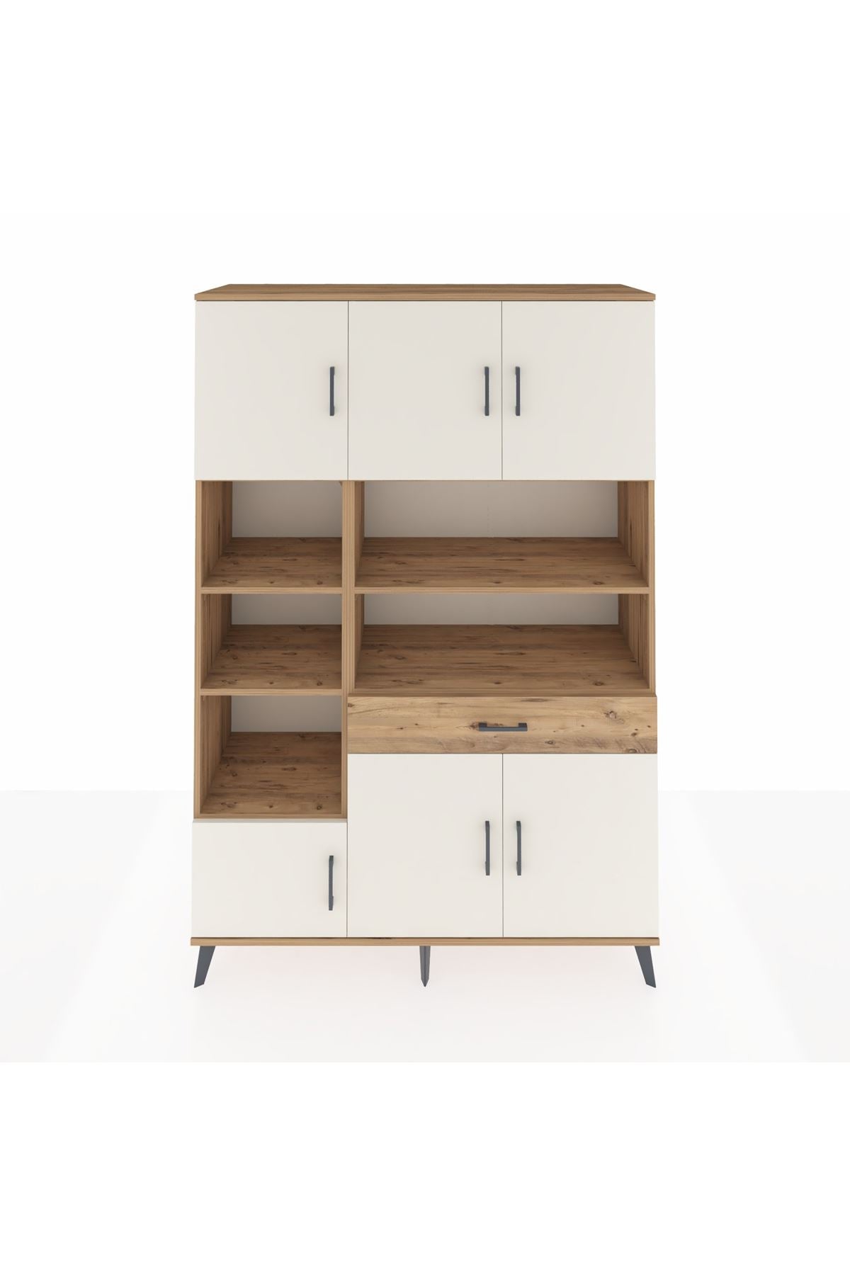 Hyperion Dolap 10 Raflı Tek Çekmeceli 6 Kapaklı 132x44x195 Çam-Aytaşı/Çam