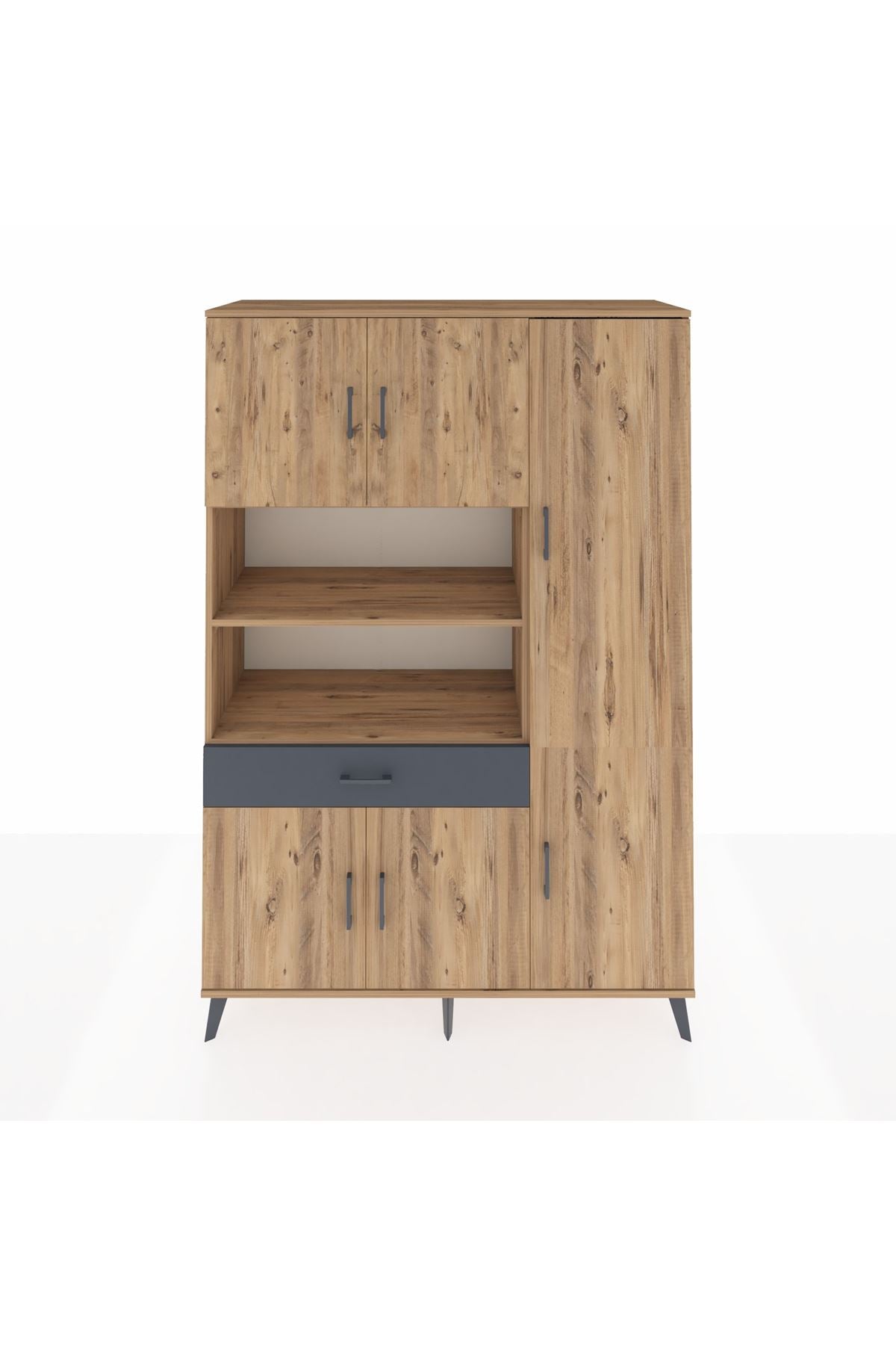 Hyperion Dolap 10 Raflı Tek Çekmeceli 6 Kapaklı 132x44x195 Çam-Çam/Antrasit