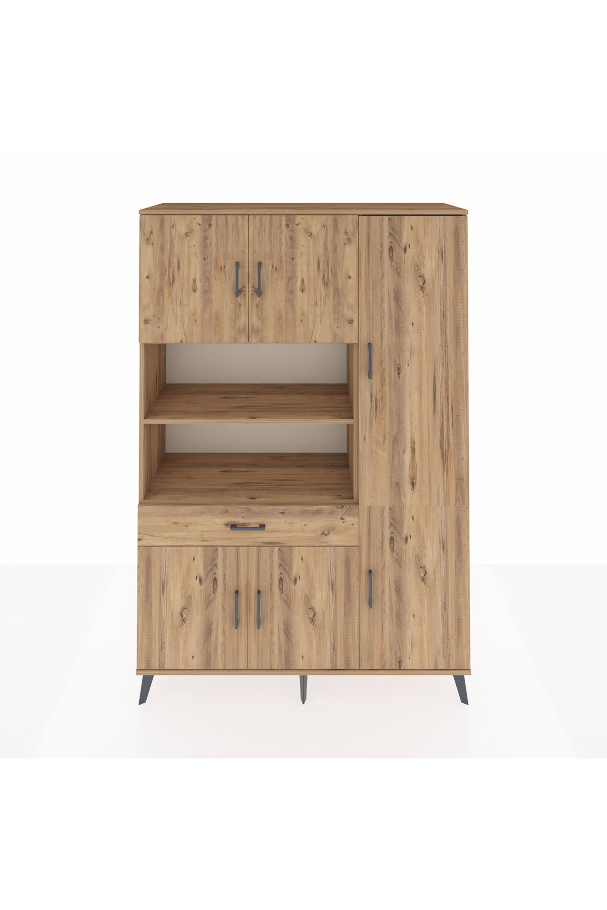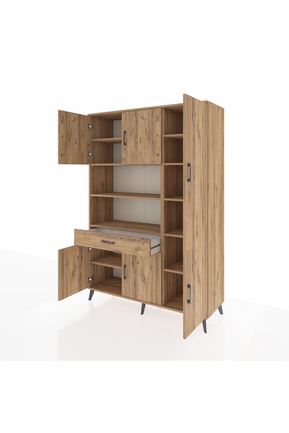 Hyperion Dolap 10 Raflı Tek Çekmeceli 6 Kapaklı 132x44x195 Çam-Çam/Çam
