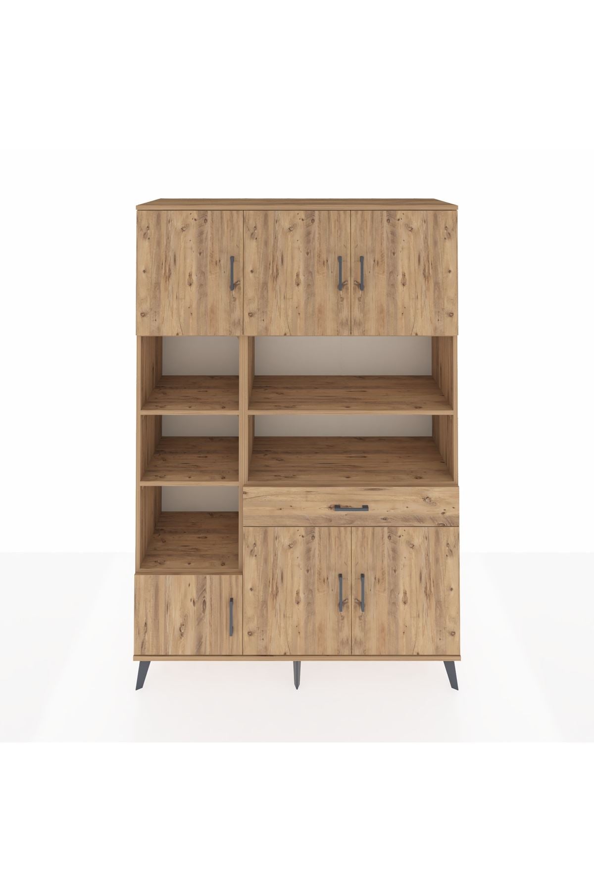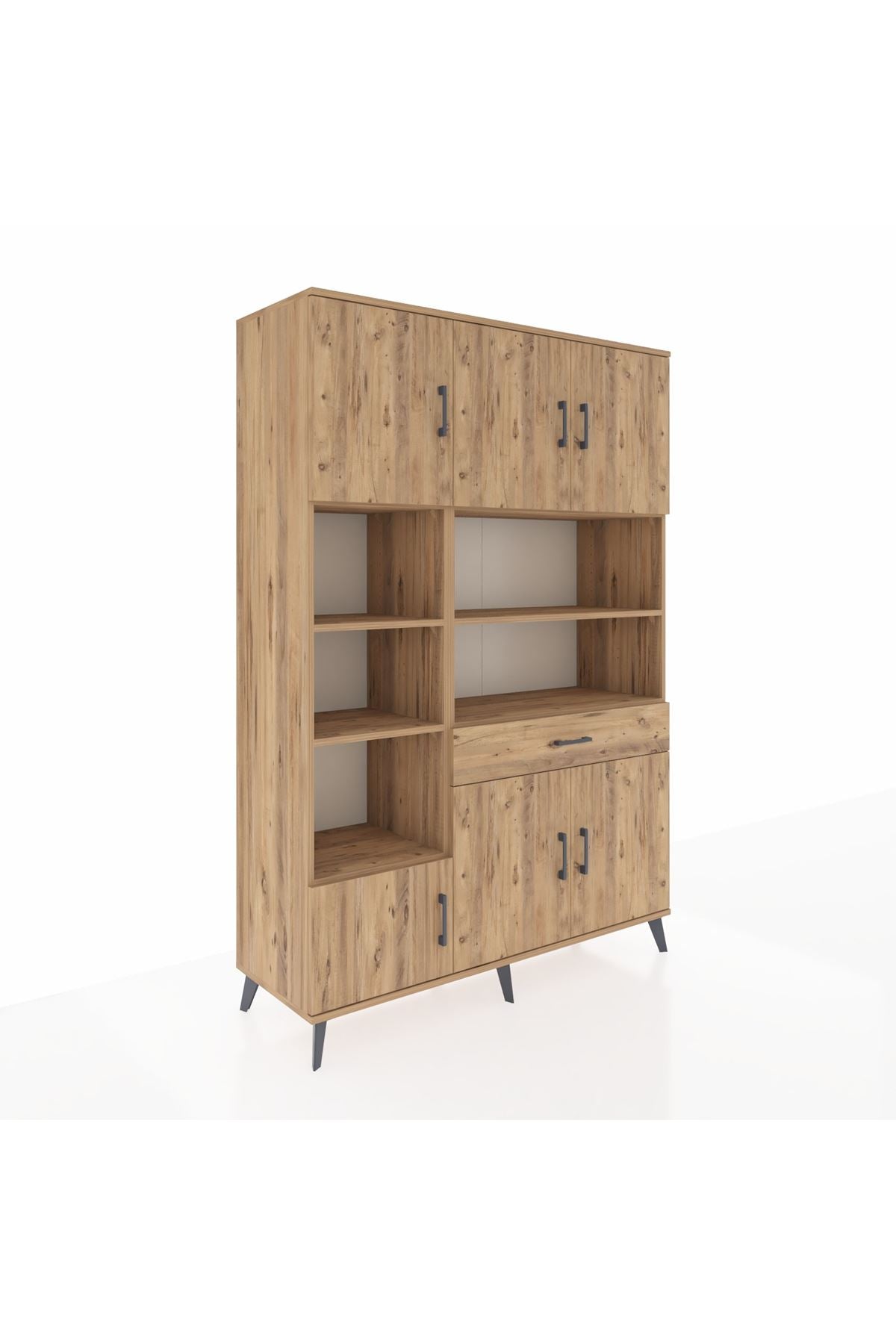 Hyperion Dolap 10 Raflı Tek Çekmeceli 6 Kapaklı 132x44x195 Çam-Çam/Çam