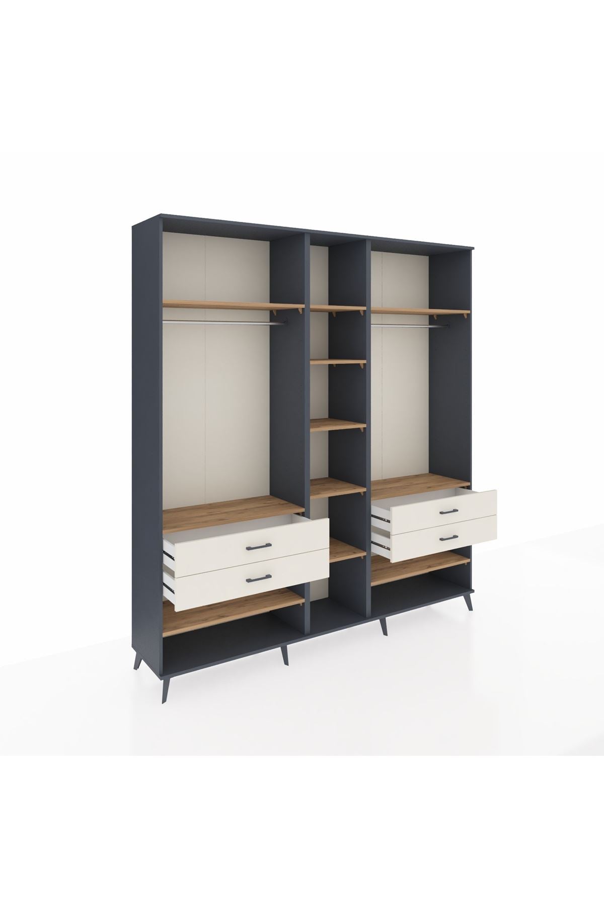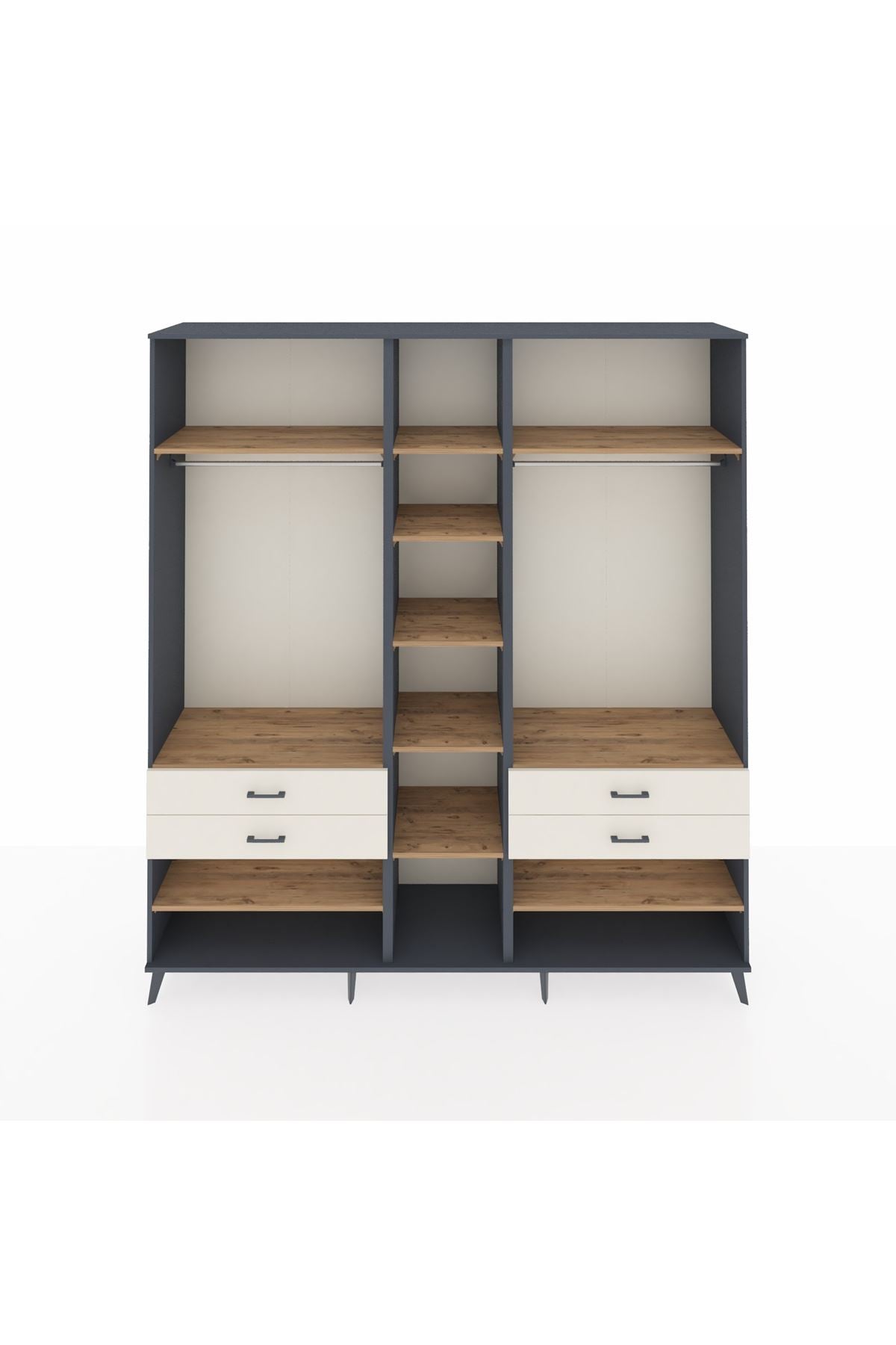 Hyperion Dolap 11 Raflı 4 Çekmeceli 2 Askılı 220x44x243 Antrasit-Çam/Aytaşı