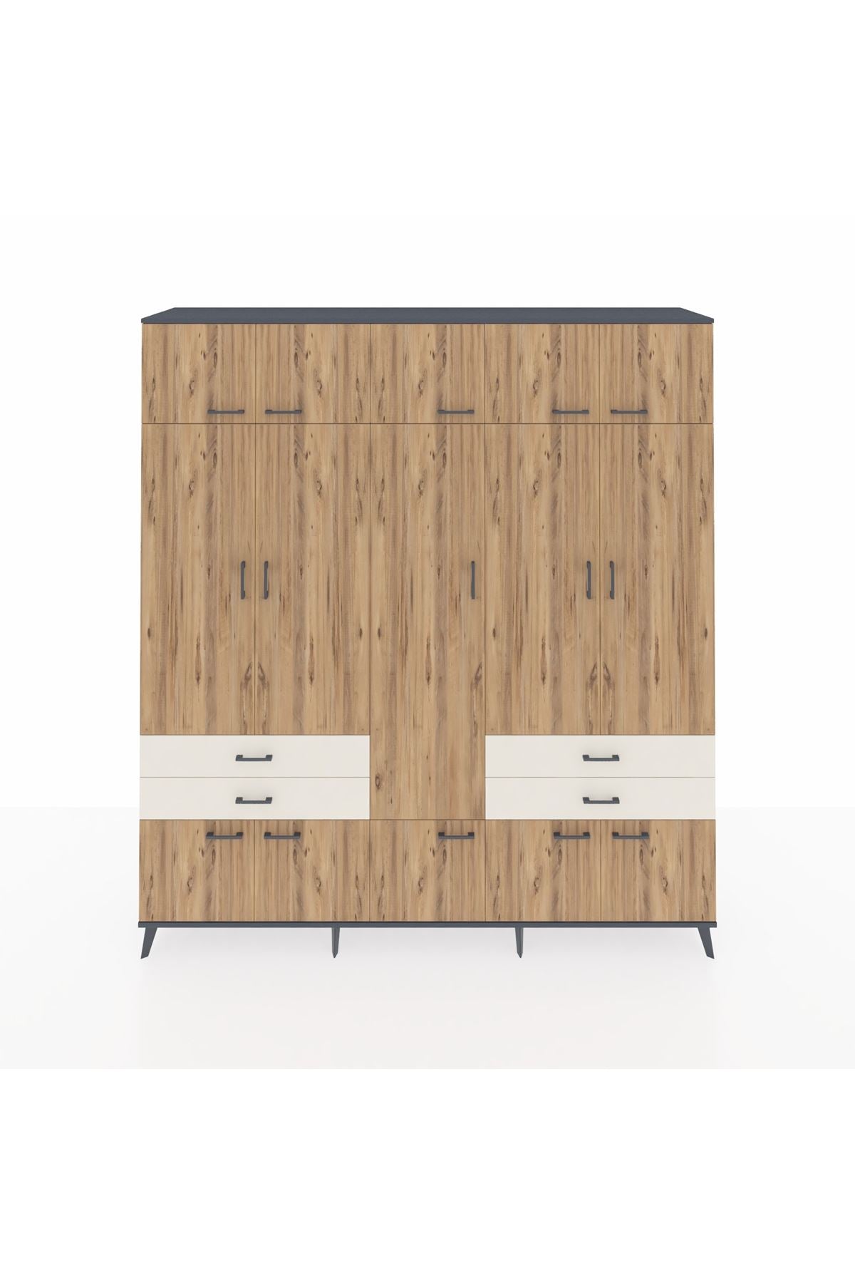 Hyperion Dolap 11 Raflı 4 Çekmeceli 2 Askılı 220x44x243 Antrasit-Çam/Aytaşı