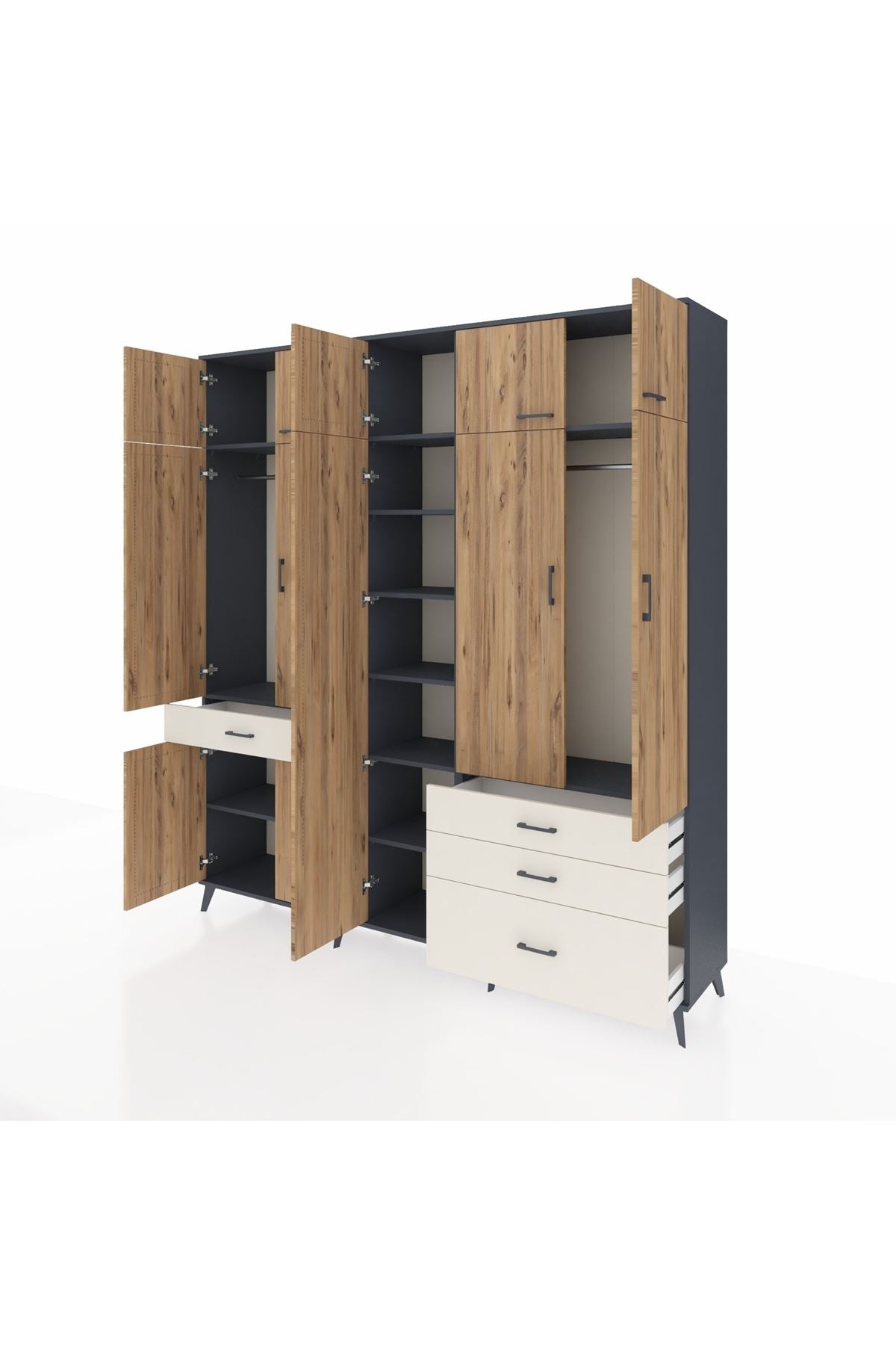 Hyperion Dolap 11 Raflı 4 Çekmeceli 2 Askılı 220x44x243 Antrasit-Çam/Aytaşı