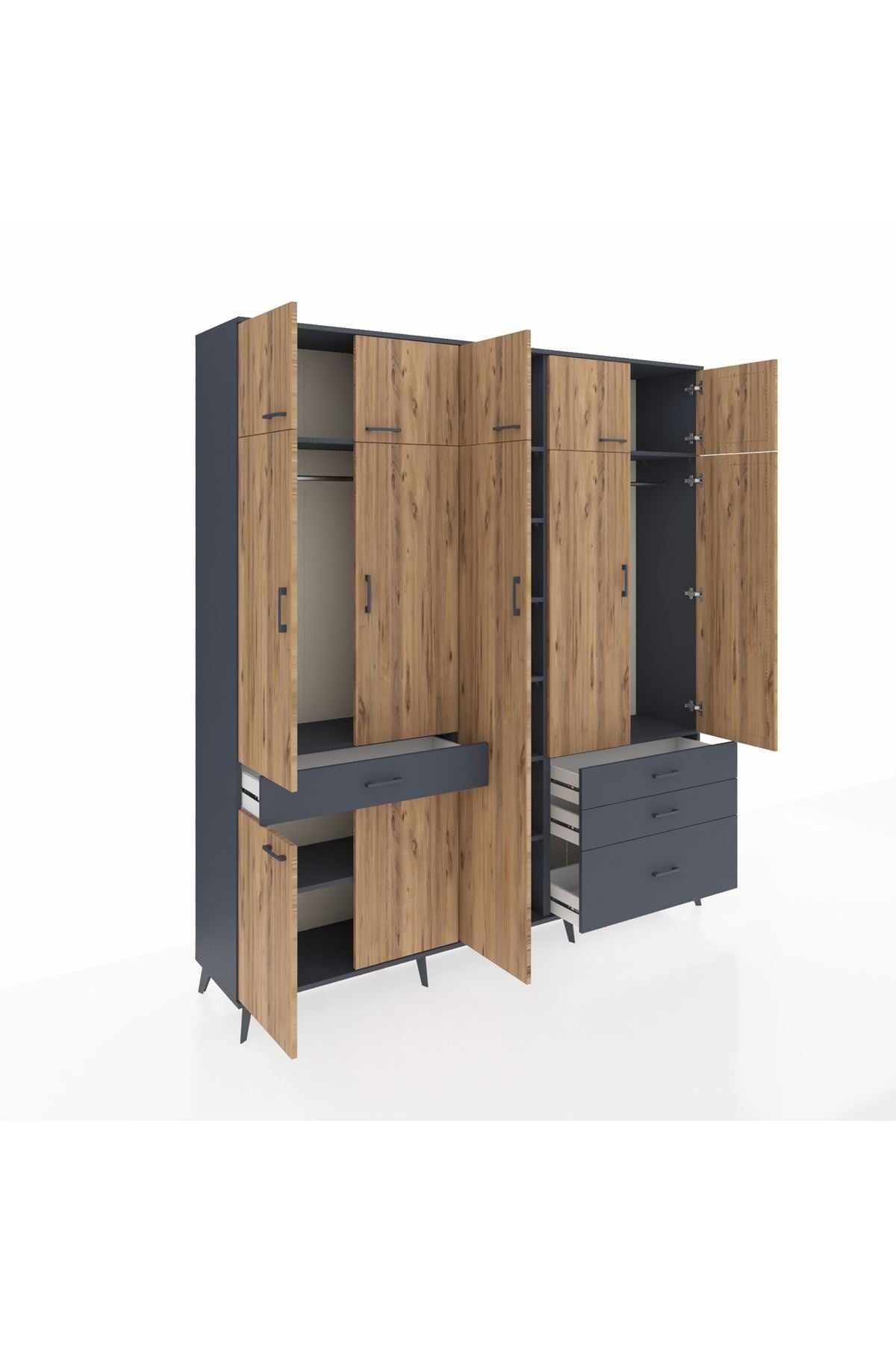 Hyperion Dolap 11 Raflı 4 Çekmeceli 2 Askılı 220x44x243 Antrasit-Çam/Antrasit